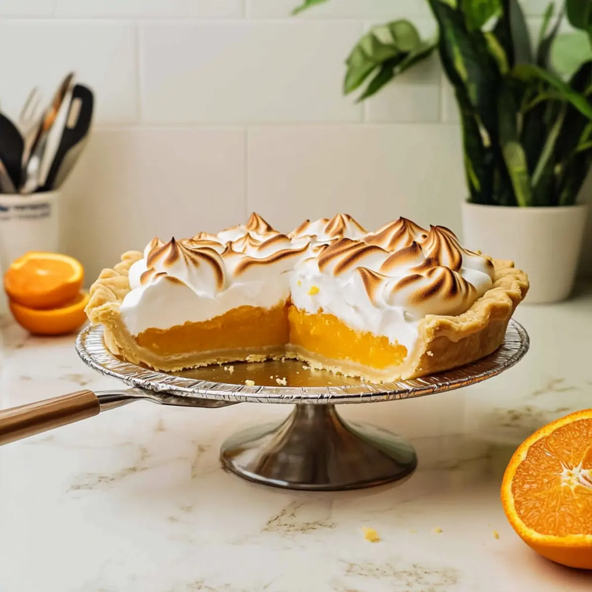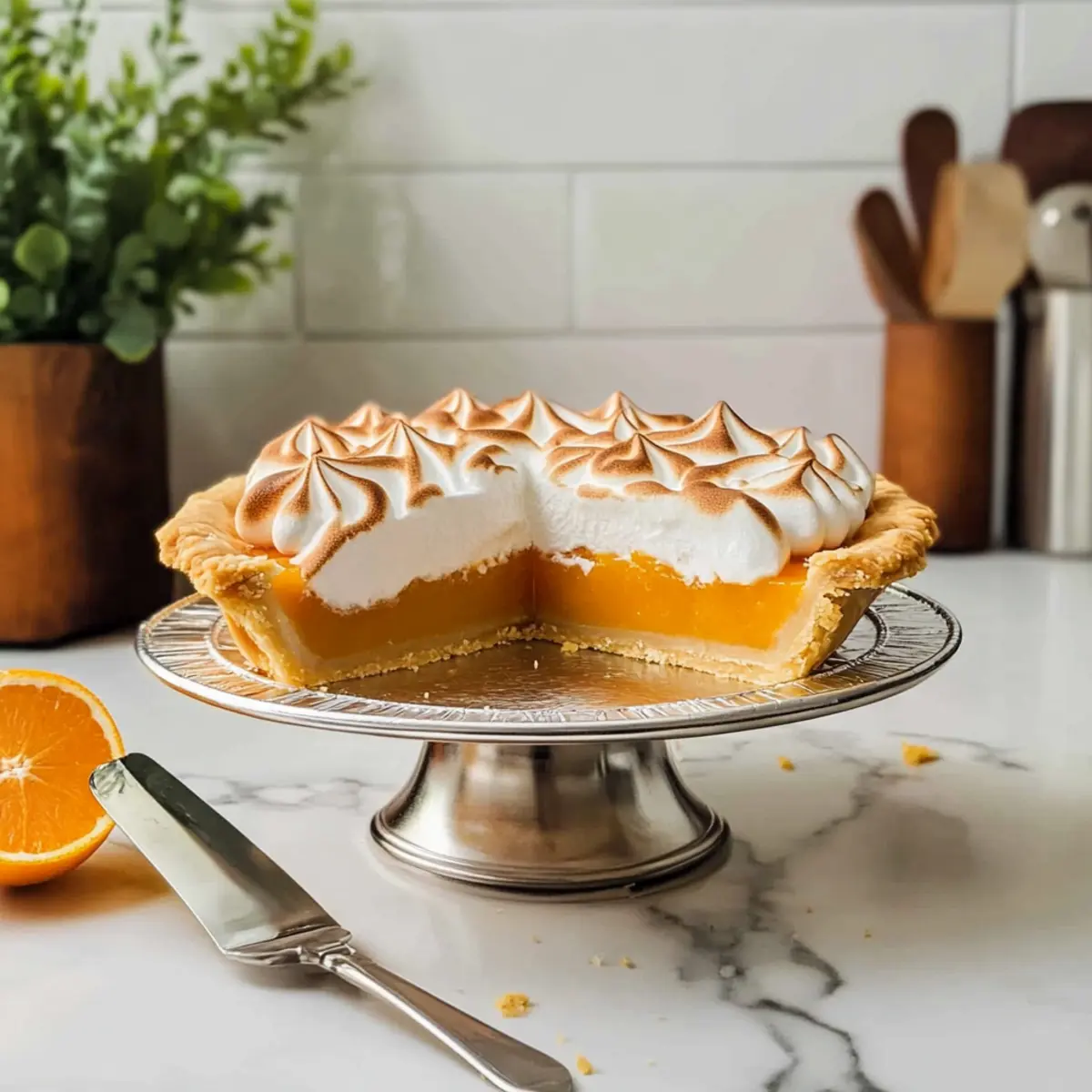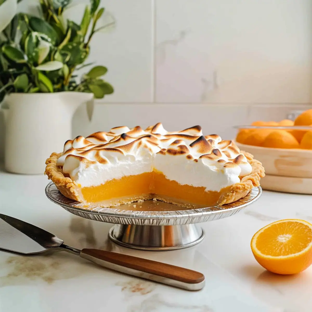 Jump to Recipe Print RecipeAs I pulled the golden-brown crust from the oven, the sweet, citrusy aroma of the Orange Meringue Pie filled my kitchen, instantly lifting my spirits. This classic dessert, with its buttery flaky crust and vibrant orange curd, is the perfect antidote to mundane meals and a delightful way to celebrate any occasion. Imagine a fluffy meringue topping that contrasts beautifully with the tartness of fresh orange juice—it’s not just a treat for the palate, but also a feast for the eyes! Plus, it’s surprisingly quick to whip up, making it an ideal choice for impromptu gatherings or a special family dinner. Who wouldn’t love to wow their guests with such a striking centerpiece? Ready to discover the steps for crafting your own irresistible Orange Meringue Pie? Let’s dive in! Why is this Orange Meringue Pie special? Bursting with Flavor: The combination of fresh orange juice and zest brings a delightful citrus punch to this classic dessert, making every bite a refreshing experience. Visually Stunning: With its fluffy, golden meringue topping and vibrant filling, this pie is sure to impress guests at any gathering, becoming the showstopper of your dessert table. Easy Preparation: This recipe simplifies the traditional process, allowing you to create a stunning dessert without needing advanced baking skills. Perfect for both novice and seasoned bakers alike! Versatile Options: You can easily customize your pie by swapping out the orange juice for lemon or lime, giving you the freedom to play with flavors according to your preference. For more citrus inspiration, try my Orange Glazed Salmon for a savory twist! Make-Ahead Friendly: Prepare the crust and orange curd in advance, so you can just assemble and bake when it’s time for dessert. This makes it an ideal choice for busy weeknights or festive occasions. Get ready to indulge in the delightful world of homemade desserts! Orange Meringue Pie Ingredients For the Pie Crust Pie Crust Dough – Essential for forming the base; can be prepared ahead and stored for convenience. For the Orange Curd Granulated Sugar (¾ cup) – Adds sweetness to both the filling and meringue; feel free to substitute with a sugar alternative if needed. Cornstarch (3 tablespoons) – Thickens the orange filling for the perfect consistency; avoid substitutions unless using another thickening agent like arrowroot. Table Salt (¼ teaspoon) – Enhances the overall flavor of the curd. Orange Juice (1½ cups) – Brings vibrant citrus flavor; freshly squeezed juice is highly recommended for the best taste. Large Egg Yolks (3) – Adds richness to the curd; do not substitute with whole eggs as this will alter the texture. Unsalted Butter (1 tablespoon) – Contributes creaminess and depth to the curd. Orange Zest (1 teaspoon) – Infuses additional orange flavor into the filling, elevating its taste. For the Meringue Large Egg Whites (4) – The foundation of the fluffy meringue; ensure they’re at room temperature for optimal volume. Granulated Sugar (½ cup) – Necessary for sweetening the meringue and providing structure. Get ready to create your delightful Orange Meringue Pie with these fresh and vibrant ingredients! Step‑by‑Step Instructions for Orange Meringue Pie Step 1: Preheat the Oven Begin by preheating your oven to 350°F (175°C). This step is crucial as it ensures that your pie crust bakes evenly to golden perfection. While the oven heats up, gather your pie crust dough and rolling pin, and prepare your pie pan for a seamless transfer later on. Step 2: Prepare the Pie Crust Roll out your pie crust dough into a 10-inch circle, ensuring an even thickness. Transfer it gently to your pie pan, folding the edges for a classic finish, then pierce the bottom with a fork to prevent bubbling. Blind-bake the crust by covering it with foil and adding weights for 15 minutes, then remove the foil and bake for an additional 15-20 minutes until golden brown. Step 3: Make the Orange Curd In a medium saucepan, combine granulated sugar, cornstarch, and salt. Gradually stir in the orange juice, then cook over medium heat, stirring constantly until the mixture thickens and begins to bubble. Remove from heat, temper the egg yolks by whisking them in a separate bowl, and slowly add a bit of the hot mixture. Return this to the saucepan, then stir in butter and orange zest until smooth. Step 4: Prepare the Meringue Create your fluffy meringue by setting up a double boiler. Combine egg whites and ½ cup of granulated sugar in the top bowl, and whisk continuously until the sugar dissolves and the mixture reaches 160°F (70°C). Once heated, transfer to a mixing bowl and beat on high until stiff peaks form, and the mixture is cool to the touch, indicating readiness. Step 5: Assemble the Pie Once the orange curd is hot and bubbling, quickly pour it into the pre-baked crust, ensuring an even layer. Immediately spoon the fluffy meringue over the curd, sealing the edges to prevent shrinking. Use a spatula to create peaks and swirls, giving the Orange Meringue Pie a delightful texture that’s ready for toasting. Step 6: Toast the Meringue Using a kitchen torch, gently toast the meringue until it’s a lovely golden-brown color, taking care to move the flame evenly across the surface. If you don’t have a torch, you can also place the pie in the oven under the broiler for a few minutes, watching closely to avoid burning the meringue. Step 7: Cool and Serve the Pie Allow your Orange Meringue Pie to cool on a wire rack for at least 1-2 hours before slicing. This cooling period helps the filling set and the meringue stabilize. Once cooled, it’s ready to be served, showcasing its stunning appearance and refreshing flavor that everyone will love! What to Serve with Irresistible Orange Meringue Pie Indulging in a slice of this zesty pie calls for delightful pairings that enhance its bright flavors and delightful textures. Fresh Berries: A mix of strawberries