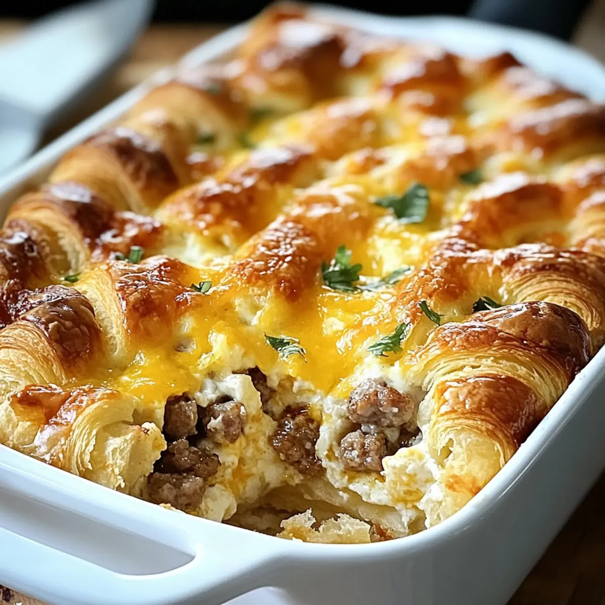 Flavorful, Rich Layers: The combination of buttery croissants and savory sausage creates a flavor explosion that delights every bite.