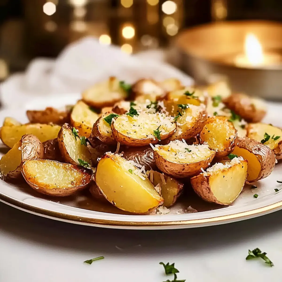 Jump to Recipe Print RecipeWhat’s better than a golden-brown side dish that practically begs to be devoured? If you’re looking for that perfect balance of crispy, savory, and downright comforting, let me introduce you to my go-to recipe for Parmesan Garlic Roasted Potatoes. The best part? This easy-to-make recipe transforms humble potatoes into a heavenly treat that pairs beautifully with everything from holiday feasts to weeknight dinners. With just a handful of ingredients, you’ll whip up a dish that’s not only vegetarian and gluten-free but also a crowd-pleaser guaranteed to steal the show. Ready to elevate your home cooking? Let’s dive into the deliciousness ahead! Why Are These Potatoes So Irresistible? Golden-Brown Perfection: Each potato is perfectly roasted to a stunning golden hue, delivering crispy satisfaction in every bite. Savory Depth: The rich combination of garlic and parmesan infuses each potato with irresistible flavor, making it a standout dish. Easy-to-Make: This recipe comes together quickly, ideal for busy weeknights or festive gatherings without compromising taste. Versatile Pairing: These roasted potatoes work magic alongside everything from Garlic Butter Chicken to holiday favorites, ensuring they complement any meal beautifully. Gluten-Free Comfort: Perfect for everyone, these potatoes satisfy cravings without the guilt, making them a go-to for all diets! Parmesan Garlic Roasted Potatoes Ingredients For the Potatoes • Red Potatoes – The base of the dish, providing a creamy interior when roasted; you can substitute with Yukon Gold for a buttery flavor. • Olive Oil – Adds moisture and aids in achieving a crispy exterior; swap it with vegetable oil or melted butter if needed. For the Flavor • Grated Parmesan Cheese – Infuses the potatoes with savory flavor and helps create a crispy crust; avoid substitutes but nutritional yeast works for a non-dairy option. • Garlic (minced) – Contributes aromatic flavor; fresh garlic is best for intensity, but garlic powder can be a last-minute alternative. • Oregano – Adds depth to the flavor profile; substitute with Italian seasoning if you’re short on herbs. • Salt & Pepper – Essential for seasoning the dish; adjust to taste based on your personal preference. For Garnishing • Chopped Parsley – Adds fresh color and a flavor contrast, brightening up your finished dish beautifully. Now that you have everything you need, get ready to indulge in the ultimate comfort food with these Parmesan Garlic Roasted Potatoes! Step‑by‑Step Instructions for Parmesan Garlic Roasted Potatoes Step 1: Preheat the Oven Begin by preheating your oven to 400°F (200°C). For extra crispiness, place your baking sheet inside the oven while it heats up. This ensures an immediate sizzle when the potatoes hit the hot surface, setting the stage for those deliciously crispy Parmesan Garlic Roasted Potatoes. Step 2: Prepare the Potato Mixture In a large mixing bowl, combine diced red potatoes with a generous amount of olive oil, grated Parmesan cheese, minced garlic, oregano, salt, and freshly ground pepper. Make sure each piece is well-coated, ensuring maximum flavor infusion. This mixture should look glistening and evenly covered, ready to roast beautifully. Step 3: Arrange on Baking Sheet Once your potatoes are well-coated, carefully spread the mixture out in a single layer on the hot baking sheet. This helps them achieve that delicious golden-brown color and crisp texture. Avoid overcrowding the sheet to ensure even roasting and allow for maximum airflow around each potato piece. Step 4: Roast the Potatoes Place the baking sheet in the preheated oven and roast for 25-30 minutes. You’ll know they’re ready when they’re golden and crispy, giving off an irresistible aroma that fills your kitchen. Halfway through roasting, shake the sheet gently to encourage even cooking. Step 5: Flip for Even Crisping At the 15-minute mark, carefully flip the potatoes using a spatula to promote uniform browning and crisping. This simple step guarantees that all sides of your Parmesan Garlic Roasted Potatoes develop that irresistible crunch, making them even more delightful to devour. Step 6: Optional Broil for Extra Crunch If you crave an extra crispy texture, switch your oven to broil for the last 2-3 minutes of cooking. Keep a close watch as they can quickly go from perfectly golden to burnt in a flash, achieving the ultimate crunch that will take your roasted potatoes over the top. Step 7: Garnish and Serve Once out of the oven, let the potatoes cool for a moment before garnishing them with a sprinkle of freshly chopped parsley. This adds a pop of color and freshness. Serve your Parmesan Garlic Roasted Potatoes hot, delighting in the perfect side dish that complements any meal! Make Ahead Options These Parmesan Garlic Roasted Potatoes are perfect for meal prep enthusiasts! You can prep the potato mixture up to 24 hours in advance by cutting the red potatoes and mixing them with olive oil, grated Parmesan cheese, minced garlic, oregano, salt, and pepper. Store this mixture in an airtight container in the refrigerator to keep everything fresh and flavorful. To maintain quality, toss the mixture again before roasting to ensure even coating. When you’re ready to serve, simply spread the potatoes on a hot baking sheet and roast them at 400°F (200°C) for about 25-30 minutes, flipping them halfway. This way, you’ll enjoy deliciously crispy Parmesan Garlic Roasted Potatoes with minimal effort during your busy weeknights! How to Store and Freeze Parmesan Garlic Roasted Potatoes Fridge: Store leftover Parmesan Garlic Roasted Potatoes in an airtight container for up to 3 days. For best results, reheat them in the oven to restore their crispiness. Freezer: If you want to keep them longer, you can freeze the roasted potatoes for up to 2 months. Allow them to cool completely before transferring to a freezer-safe container. Reheating: