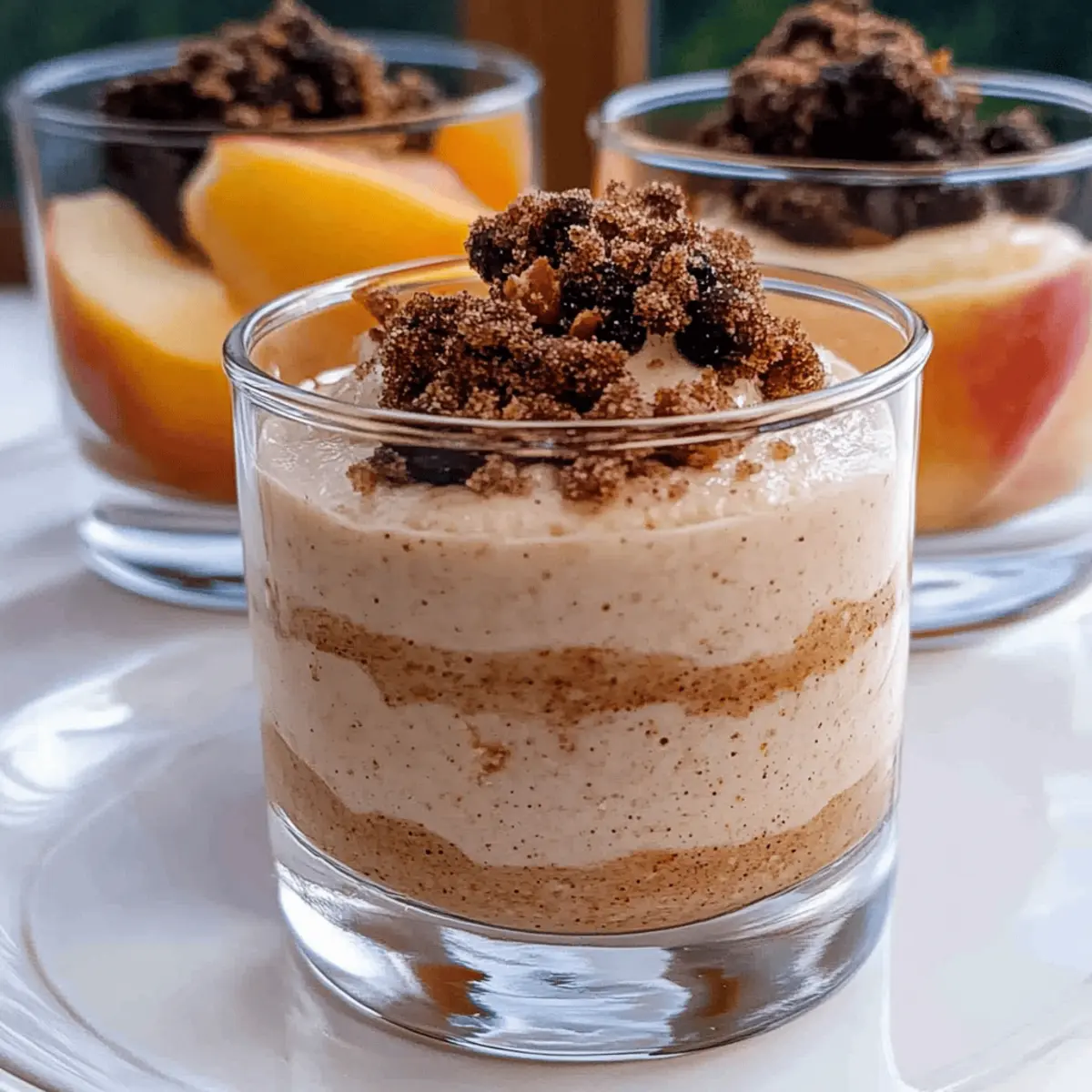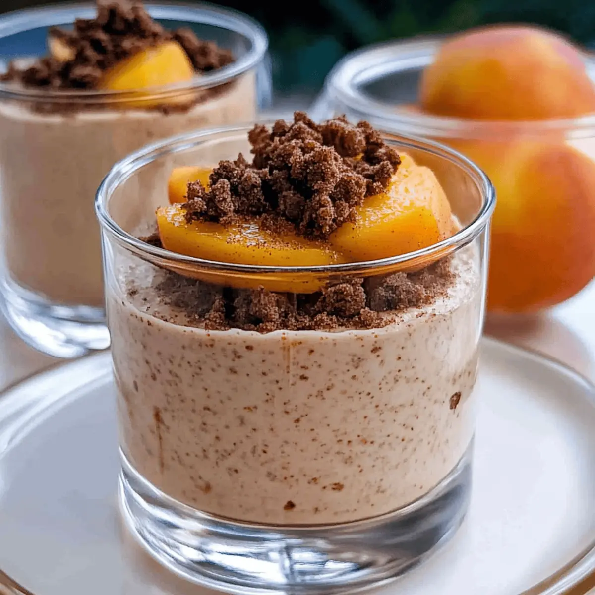 Jump to Recipe Print RecipeThe moment summer hits, I find myself daydreaming about the sun-soaked days filled with juicy peaches, and my absolute favorite way to capture that bliss is through a Creamy Peach Mousse with Cinnamon Crunch. This easy dessert combines the fresh taste of ripe peaches with the delightfully rich hint of Amaretto, while the crunchy cinnamon topping adds a playful contrast to its creamy texture. Perfect for any gathering, whether it’s a casual barbecue or a sophisticated dinner party, this treat is bound to dazzle your guests. Plus, it can be prepped ahead of time, freeing you up to enjoy those precious moments with family and friends. Could there be a better way to celebrate the sweetness of summer? Let’s dive into making this luscious mousse together! Why is this Peach Mousse a summer must? Irresistible Creaminess: The combination of ripe peaches and heavy cream creates a smooth, decadent mousse that melts in your mouth. Easy to Make: With simple steps and minimal ingredients, this dessert is accessible for both seasoned chefs and kitchen novices alike. Crowd-Pleaser: Serve it at any gathering, and watch as your friends and family rave about this delightful treat—they’ll be asking for the recipe! Versatile Flavor: Add your twist by experimenting with other fruits, like strawberries, or using different liqueurs like Frangelico for a unique spin. Perfectly Textured: The crunchy cinnamon topping adds a satisfying contrast to the mousse, making each bite a delightful experience. Make-Ahead Delight: Prepare it a day in advance, just like with my Cookie Butter Cinnamon or Blueberry Cinnamon Rolls, allowing you to savor every moment with your guests instead of being stuck in the kitchen. Peach Mousse with Cinnamon Crunch Ingredients • Get ready to savor a delightful summer dessert! For the Cinnamon Crunch Dark Brown Sugar – Provides rich sweetness and depth; can use all granulated sugar if preferred. Granulated Sugar – A standard sweetening agent to enhance flavors; no substitutions needed. Cinnamon – Adds warmth and spiciness to the crunch; try pumpkin pie spice for a seasonal twist. Unsalted Butter – Binds the crunch together with fat and flavor; coconut oil or margarine works as a substitute. Vanilla Extract – Enhances the flavor of both the mousse and crunch; switch to almond extract for a unique touch. For the Peach Mousse Amaretto Liqueur – Flavor enhancer that gives the mousse a unique almond note; use water plus 1 teaspoon of almond extract if avoiding alcohol. Gelatin – Provides structure to the mousse and helps it set; agar-agar is a vegetarian option. Ripe Peaches – The star ingredient, contributing freshness and flavor; ensure they are ripe for the best taste. Heavy Cream – Adds richness and creaminess to the mousse; substitute with coconut cream for a dairy-free option. This Peach Mousse with Cinnamon Crunch is not only a feast for the senses but also a delightful summer treat that’s easy to whip up. Enjoy every rich bite! Step‑by‑Step Instructions for Peach Mousse with Cinnamon Crunch Step 1: Preheat and Prepare Begin by preheating your oven to 350°F (175°C). Line a baking pan with parchment paper to prevent sticking while baking the cinnamon crunch. This step sets the stage for the crunchy delight that will top your luscious Peach Mousse. Step 2: Mix Crunch Ingredients In a medium bowl, combine dark brown sugar, granulated sugar, and cinnamon. Blend these dry ingredients thoroughly to ensure an even distribution of flavors. Once mixed, set this aside while you prepare the wet ingredients for the cinnamon crunch topping. Step 3: Combine Wet Ingredients Melt unsalted butter and stir in vanilla extract until fully combined. Pour this buttery mixture over the sugar and cinnamon blend, mixing until a thick paste forms. This combination will create the delightful crunch that complements your Peach Mousse beautifully. Step 4: Bake the Cinnamon Crunch Spread the mixture evenly in the lined baking pan and bake for 15-20 minutes, until the edges are set but the center is still soft. Keep an eye on it to achieve a golden color that indicates it’s ready. Once done, allow it to cool completely before breaking it into chunks. Step 5: Bloom the Gelatin In a small bowl, bloom the gelatin by sprinkling it over the Amaretto liqueur or water. Let it sit for 5-10 minutes until it swells and absorbs the liquid. This crucial step ensures your Peach Mousse will have a perfect texture once set. Step 6: Prepare the Peach Purée For the mousse, bring a pot of water to a boil. Submerge ripe peaches for about 30 seconds to loosen their skins, then peel. Remove the stones and puree the flesh in a blender until smooth. This fresh peach purée is the star of your decadent mousse. Step 7: Combine Sugar and Gelatin Stir granulated sugar into the peach purée while it’s still warm, ensuring it dissolves completely. Then, mix in the bloomed gelatin until fully incorporated. Refrigerate the peach mixture for up to a few hours until it thickens slightly, creating a rich base for the mousse. Step 8: Whip the Cream In a large mixing bowl, whip heavy cream until medium peaks form. Be cautious not to over-whip, as this could affect the texture. This step creates the airy lightness in your Peach Mousse, making it smooth and creamy. Step 9: Fold in the Cream Gently fold the whipped cream into the chilled peach mixture, ensuring an even and airy consistency. This careful folding is essential to maintain the light texture of the mousse, allowing each spoonful to be as dreamy as possible. Step 10: Chill the Mousse Divide the Peach Mousse evenly into individual serving glasses. Cover and refrigerate for at least 6 hours, or ideally overnight, until set. This chilling time allows flavors to meld and ensures a delightful dessert experience. Step 11: Add the Crunch Before serving, top each glass of Peach Mousse with the cooled cinnamon crunch. This crunchy layer wi