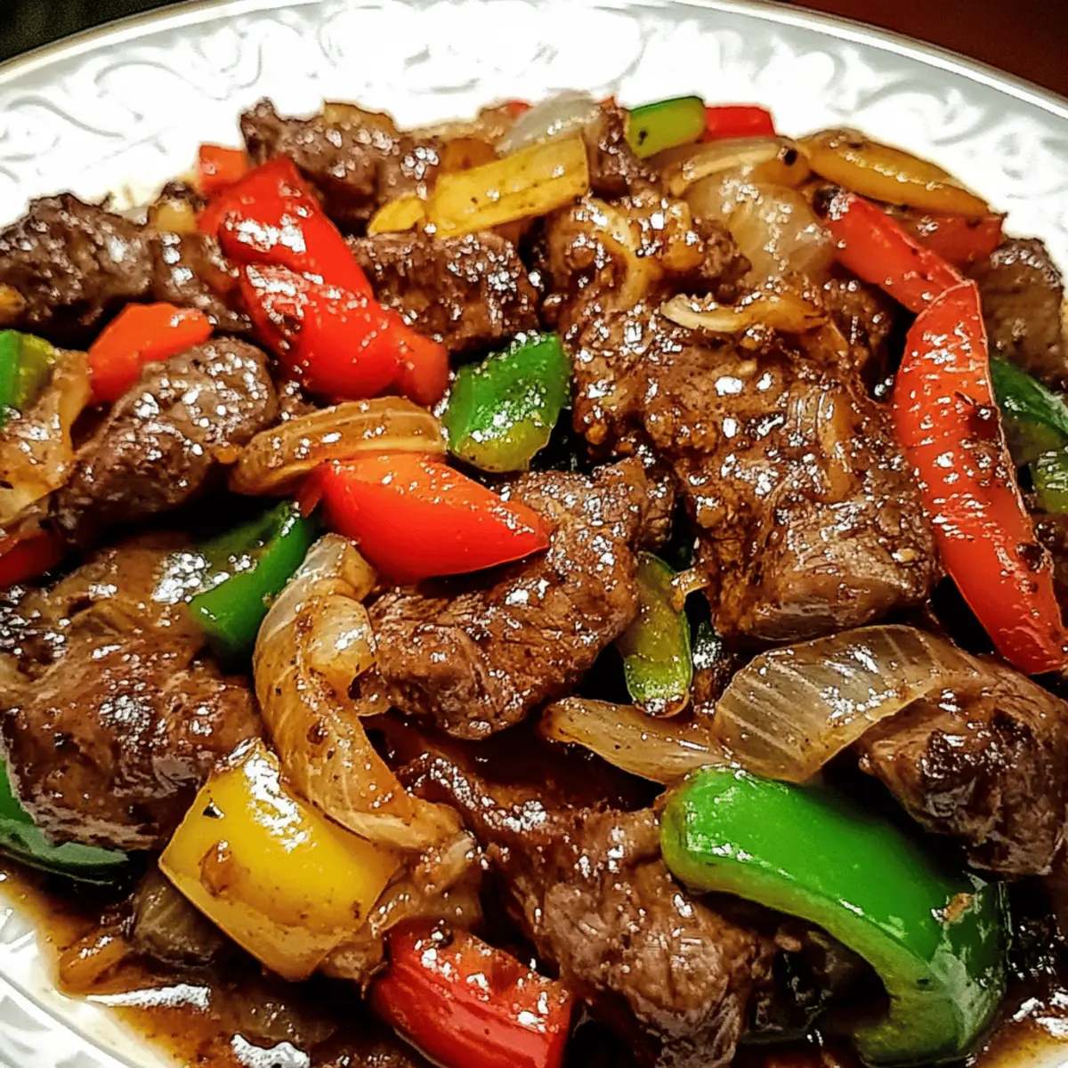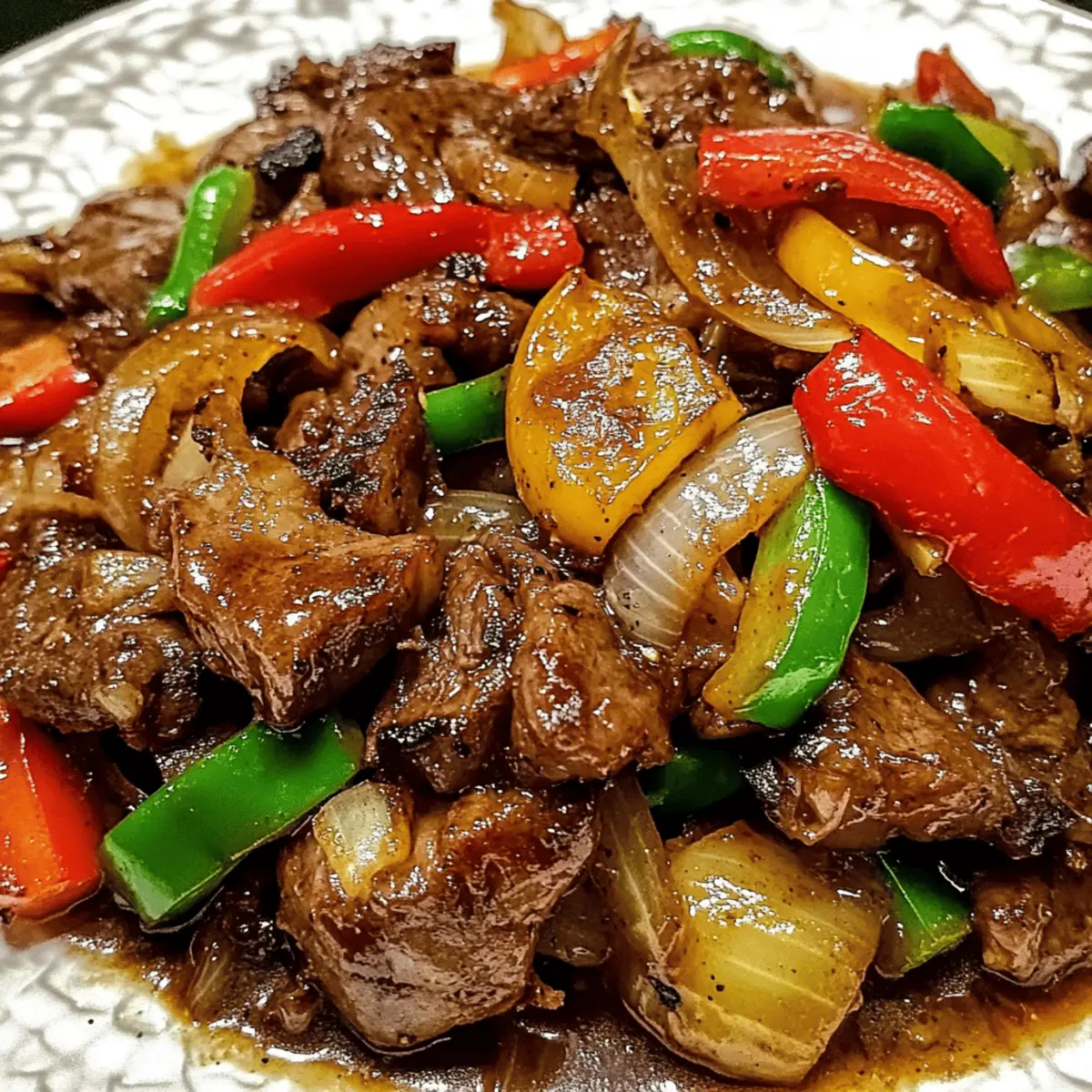 Jump to Recipe Print RecipeAs I sliced through the tender beef, the vivid colors of bell peppers and onions danced before my eyes, showcasing a feast for the senses. This Pepper Steak with Bell Peppers and Onion captures the essence of robust flavors while being a breeze to whip up on hectic weeknights. It’s a protein-packed dish that not only satisfies cravings but also delivers a nutritious punch with its veggie medley. Trust me, this vibrant stir-fry is sure to impress whether you’re hosting a dinner for friends or simply treating yourself to a wholesome homemade meal. Curious about how to master this delightful dish and elevate your culinary repertoire? Let’s dive into the details! Why is Pepper Steak Loved by Many? Flavor-Packed Wonder: This Pepper Steak with Bell Peppers and Onion is bursting with robust flavors that tantalize your taste buds, thanks to the savory marinade and vibrant vegetables. Quick & Easy: Perfect for busy weeknights, this dish can be whipped up in less than 30 minutes, so you can enjoy a homemade meal without wasting precious time. Protein-Powered: The tender beef not only tantalizes your palate but also supplies an impressive protein boost, ideal for refueling after a long day. Versatile & Customizable: With options to substitute chicken or tofu, or add a variety of colorful vegetables like snap peas or broccoli, this recipe caters to diverse dietary needs. Crowd-Pleasing Delight: Whether you’re cooking for family or hosting friends, this dish guarantees to impress, making it a fabulous addition to your culinary repertoire alongside dishes like Korean Bbq Steak or Teriyaki Pineapple Peppers. Embrace this savory delight and elevate your table with a meal that tastes as amazing as it looks! Pepper Steak with Bell Peppers and Onion Ingredients For the Beef Marinade Beef Steak – Tender cuts like sirloin, flank, or ribeye provide rich protein; for a lighter option, try chicken breast or tofu. Soy Sauce – Offers a savory salty base for the marinade; low sodium soy sauce can be used for reduced sodium intake. Oyster Sauce – Adds richness and umami depth; substitute with hoisin sauce for a vegetarian version. Cornstarch – Thickens the sauce and helps coat the beef; arrowroot flour can be used as an alternative thickener. For the Vegetables Bell Peppers – Red, green, and yellow bell peppers add flavor and color; feel free to swap in sweet mini peppers for variety. Onion – Sliced onions contribute sweetness to the dish; red onions can be used for a milder flavor profile. Garlic – Minced garlic provides aromatic depth; garlic powder serves as an excellent alternative if fresh garlic is unavailable. Ginger – Grated ginger enhances flavor complexity; ground ginger can be substituted, but fresh offers the best aroma. For Cooking Vegetable Oil – Used for sautéing and ensuring a golden sear; olive oil is another option, though it has a lower smoke point. Beef Broth or Water – Adds moisture and helps create the sauce; chicken broth can be used for a different flavor twist. Salt and Pepper – Essential for seasoning to elevate the overall taste of your Pepper Steak with Bell Peppers and Onion. Embrace these vibrant ingredients and elevate your cooking experience to create a delightful dish your loved ones will savor! Step‑by‑Step Instructions for Pepper Steak with Bell Peppers and Onion Step 1: Marinate the Beef In a medium bowl, combine soy sauce, oyster sauce, and cornstarch to create a flavorful marinade. Add thinly sliced beef steak, ensuring each piece is well-coated. Allow the beef to marinate for at least 15 minutes at room temperature, which will help enhance the flavor and tenderness of your Pepper Steak with Bell Peppers and Onion. Step 2: Prep the Vegetables While the beef marinades, take the time to prepare your vegetables. Dice a rainbow of bell peppers and slice the onion into thin strips. Mince the garlic and grate the ginger. This prep work is essential for a quick sauté later, ensuring that your dish comes together smoothly without any hiccups. Step 3: Sear the Beef Heat a generous splash of vegetable oil in a large skillet over high heat. Once the oil is shimmering, add the marinated beef to the skillet in a single layer. Sear the beef for 1-2 minutes on each side until browned but not fully cooked, then remove it from the skillet and set it aside. This step is crucial for achieving that delicious browned flavor in your Pepper Steak. Step 4: Sauté Vegetables In the same skillet, add a splash more oil if needed, and toss in the sliced bell peppers and onions. Sauté the vegetables for 3-4 minutes, stirring frequently until they become tender yet still retain a bit of crunch. The vibrant colors and aromas will fill your kitchen, creating an enticing base for the Pepper Steak. Step 5: Combine Ingredients Lower the heat slightly and add the minced garlic and grated ginger to the skillet with the sautéed vegetables. Cook for an additional minute until fragrant, stirring constantly. Next, return the seared beef to the skillet, pouring in the beef broth or water. Cook all the ingredients together for 2-3 minutes to thicken the sauce and allow the flavors to meld beautifully. Step 6: Season and Serve Taste your Pepper Steak with Bell Peppers and Onion and season with salt and pepper to your liking. Once everything is well-combined and heated through, it’s ready to serve. Scoop the savory mixture over a bed of rice or pair it with noodles for a satisfying meal that is wholesome and full of flavor. Make Ahead Options These Pepper Steak with Bell Peppers and Onion are perfect for meal prep enthusiasts! You can marinate the beef up to 24 hours in advance—this not only saves time but allows the flavors to deepen for a more delicious dish. Chop your bell peppers and onions ahead of time, storing them in an airtight container in the fridge for up to 3 days to retain their crispness. When you’re ready to serve, simply sauté the pre