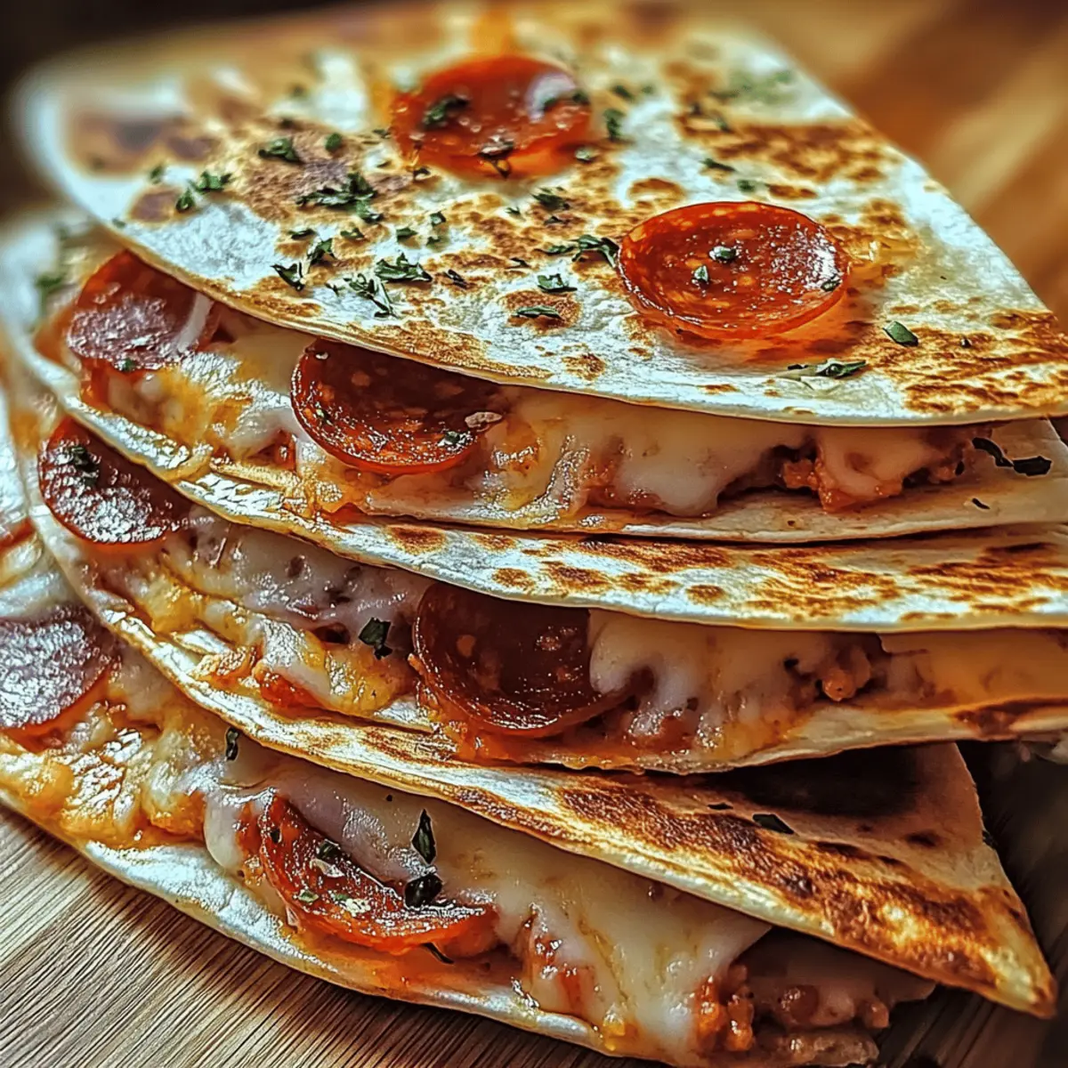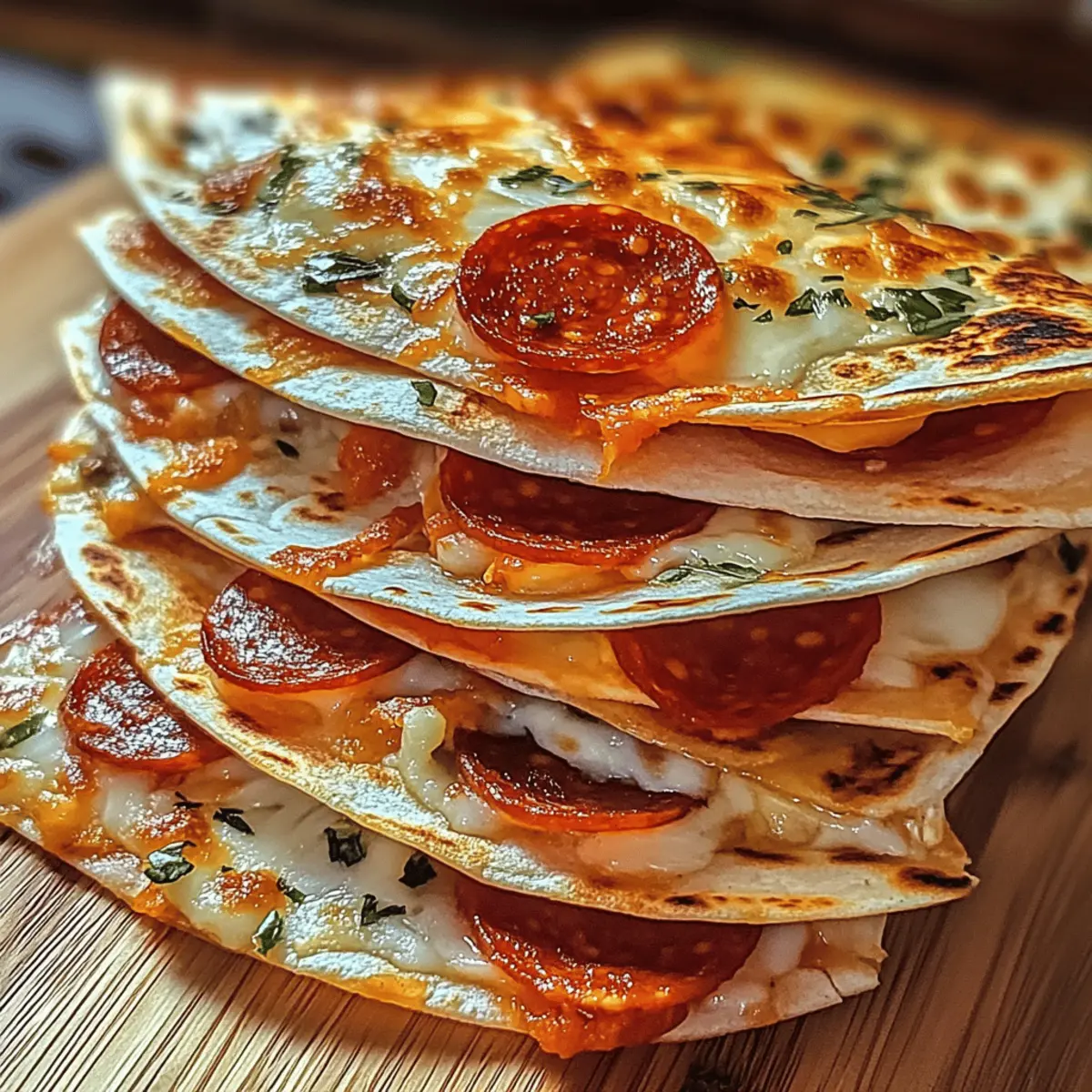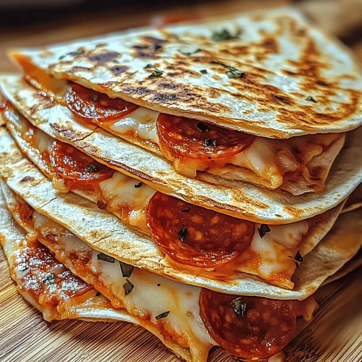 Jump to Recipe Print RecipeAs I stood in the kitchen, the comforting aroma of toasty tortillas began to fill the air, weaving its way into my heart. Often, I crave a quick meal that doesn’t compromise on flavor, and these Pepperoni Quesadillas have become my go-to. In just under 20 minutes, these crispy delights fuse the joy of pizza with the easy charm of a quesadilla. Perfect for busy weeknights or a fun family snack, they invite creativity with every bite. The best part? You can customize each quesadilla to suit your family’s taste by swapping in turkey pepperoni, adding veggies, or even going fully vegetarian. Ready to whip up your own batch of cheesy goodness? Let’s dive into this exhilarating journey of flavor and fun in the kitchen! Why are these Pepperoni Quesadillas irresistible? Perfectly Crisp: Each quesadilla boasts a golden-brown crust that gives way to a meltingly gooey cheese center, making every bite a delightful experience. Quick and Easy: With only a handful of ingredients, you can whip up this dish in under 20 minutes. Ideal for a speedy weeknight dinner or an after-school snack! Customizable: Tailor them to your liking by swapping turkey pepperoni for plant-based options or loading them with your favorite veggies. Kid-Friendly: Kids will adore these cheesy, flavorful bites, making it a perfect dinner choice that appeals to the whole family. Nutritious Twist: Packed with protein and fiber, they can easily be transformed into a healthier meal by adding in fresh vegetables—check out our guide on healthy substitutions for ideas! Crowd-Pleaser: Perfect for family gatherings or casual get-togethers, everyone will be reaching for seconds when these delicious quesadillas hit the table! Pepperoni Quesadillas Ingredients • Get ready to create a deliciously cheesy masterpiece! For the Quesadilla Large Flour Tortillas – These are the crispy canvas for your delicious filling; feel free to swap for whole wheat or gluten-free tortillas if preferred. Turkey Pepperoni Slices – These slices add a savory punch and protein; try regular pepperoni or plant-based options for a different twist. Shredded Mozzarella Cheese – This is the star for that gooey texture; mix in cheddar or Monterey Jack for a flavor festival! Butter or Olive Oil – Used to achieve that perfect crispiness on the outside; cooking spray can also work for a lighter fry. For the Seasoning Italian Seasoning Blend – Enhances the overall flavor wonderfully; replace it with your favorite spice mix for a personal touch. Garlic Powder – Adds depth and aroma; for a fresh kick, opt for minced garlic, adjusting quantity to taste. For Dipping Pizza Sauce – Perfect for dipping and an additional flavorful filling; can be switched for marinara or homemade tomato sauce if you prefer. This blend of ingredients ensures your Pepperoni Quesadillas will be a hit at any meal! Enjoy the journey of crafting these tasty treats! Step‑by‑Step Instructions for Pepperoni Quesadillas Step 1: Prepare the Tortillas Begin by laying out your large flour tortillas on a clean surface. Generously spread pizza sauce over half of each tortilla, leaving the other half free for folding. Ensure even coverage, so each bite of your Pepperoni Quesadillas is bursting with flavor. Step 2: Add the Fillings On top of the pizza sauce, sprinkle a layer of shredded mozzarella cheese and place turkey pepperoni slices evenly across the sauced area. For added flavor, dust garlic powder and Italian seasoning over the fillings. This combination will create a mouthwateringly cheesy and savory delight inside your quesadilla. Step 3: Fold and Secure Carefully fold each tortilla over to form a half-moon shape, pressing down gently to seal the edges. This will help keep all the deliciousness intact as they cook. Make sure the filling is tucked in neatly to avoid any spills during cooking. Step 4: Heat the Skillet In a large skillet, melt a tablespoon of butter or heat olive oil over medium heat until shimmering. The skillet should be hot enough that a drop of water would sizzle upon contact. This ensures that your quesadillas will get that beautiful golden crust. Step 5: Cook the Quesadillas Place the folded quesadillas in the skillet, cooking for about 2-3 minutes on one side until they turn golden brown and the cheese has begun to melt. Carefully flip them over and cook for an additional 2-3 minutes on the other side. Visual cues include a crispy exterior and visibly gooey cheese. Step 6: Slice and Serve Once both sides are perfectly crisp and the cheese is ooey-gooey, remove the quesadillas from the skillet and let them cool slightly. Cut them into wedges using a sharp knife or pizza cutter for easy serving. Serve warm alongside extra pizza sauce for dipping, and enjoy your homemade Pepperoni Quesadillas! Pepperoni Quesadillas Variations & Substitutions Let your creativity shine as you mix and match ingredients for your perfect quesadilla experience! Vegetarian Delight: Replace turkey pepperoni with sautéed mushrooms or zucchini for a hearty veggie option. This addition not only provides a savory flavor but also delicious moisture. Cheese Extravaganza: Blend mozzarella with pepper jack for a spicy kick, or use a mix of sharp cheddar and cream cheese for creaminess. This twist will amp up the cheesy goodness! Gluten-Free: Swap out regular tortillas for gluten-free options like rice tortillas or corn tortillas to accommodate dietary needs. They’ll still deliver on the crunch and flavor! Spicy Kick: Add sliced jalapeños or a sprinkle of crushed red pepper flakes to elevate the heat level. Combine them with sour cream for a cooling contrast. Dairy-Free: Use plant-based mozzarella and a vegan pepperoni alternative to craft a dairy-free masterpiece without sacrificing flavor. Your guests won’t even notice the difference. Herbaceous Flavor: Incorporate fresh herbs like basil or cilantro into the mixture for a burst of freshness. This fragrant touch wil