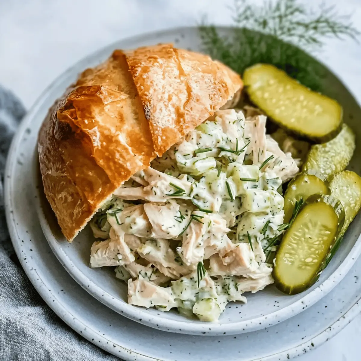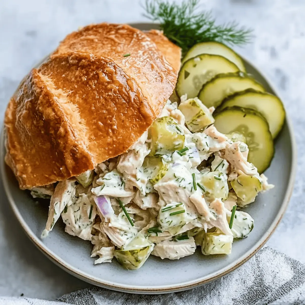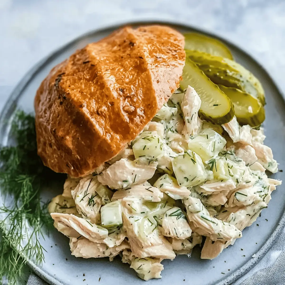Jump to Recipe Print RecipeAs I rummaged through my fridge looking for lunch, a jar of dill pickles caught my eye, and an idea sparked! That’s how this Creamy Dill Pickle Chicken Salad was born—a refreshing twist on a classic dish. With tender shredded chicken playing off the zesty crunch of dill pickles, this salad is your go-to for a quick meal that feels indulgent yet light. Perfect for meal prep, it’s easy to whip up and can be enjoyed in various ways, whether on a sandwich, with crackers, or just by itself. Best of all, it’s a delightful way to ditch fast food for something homemade and satisfying. Curious about how simple and delicious it is? Let’s dive into the recipe! Why Is This Dill Pickle Chicken Salad Amazing? Unique Flavor Combination: The zesty blend of dill pickles and creamy chicken delivers a punchy taste that tantalizes your taste buds. Quick and Easy: Whip up this salad in just 20 minutes, making it a perfect choice for a busy lunch or dinner. Meal Prep Friendly: This dish keeps well in the fridge for up to 4 days, so it’s excellent for planning your weekly meals ahead of time! Versatile Serving Options: Whether you enjoy it on toasted bread, as a dip with crackers, or in fresh lettuce wraps, this salad adapts to your cravings. Crowd-Pleasing Delight: Serve it at gatherings, and watch it disappear—everyone will love the creamy, tangy goodness! For another delightful meal prep option, check out my Cheesy Garlic Chicken! Pickle Chicken Salad Ingredients • Get ready to create a taste sensation! For the Chicken Salad Cooked Chicken – Shredded rotisserie chicken makes for a speedy meal prep option. Dill Pickles – Adds that crunchy, tangy punch; be sure to drain and pat them dry to keep the salad from getting watery. Mayonnaise – Provides a creamy base; swap with Greek yogurt for a lighter twist! Greek Yogurt – This tangy addition enhances creaminess; opt for more mayo if you prefer a richer flavor. Relish – A hint of sweetness; pick between dill or sweet relish based on your taste preference. Mustard – Adds a zesty flair; yellow, Dijon, or even spicy mustard can elevate the taste. Chives – Their mild onion flavor balances the dish; feel free to use green onions if chives aren’t available. Fresh Dill – Brightens up the salad with aromatic freshness; dried dill is a great substitute (but use less). Salt and Pepper – Essential for enhancing the flavors; adjust to your liking. For Serving Bread or Crackers – Perfect for making delicious sandwiches or crunchy bites. Lettuce Leaves – Use leafy greens for a low-carb, refreshing wrap option! This pickle chicken salad will easily become a lunch favorite! Enjoy the wonderful blend of flavors and textures. Step‑by‑Step Instructions for Creamy Dill Pickle Chicken Salad Step 1: Prepare the Chicken and Pickles Start by shredding your cooked chicken into bite-sized pieces, aiming for roughly three cups. In a large mixing bowl, combine the shredded chicken with diced dill pickles, ensuring they are drained and patted dry to prevent excess moisture. The chicken should look fluffy, and the pickles should add bright green specks throughout the mixture, enhancing both texture and flavor. Step 2: Make the Dressing In a separate medium bowl, whisk together ½ cup of mayonnaise, ½ cup of Greek yogurt, ¼ cup of relish, and 2 tablespoons of mustard. Add in chopped chives, fresh dill, and season with salt and pepper to taste. Aim for a creamy, smooth consistency with a lovely mix of aromatic herbs. The dressing should be well combined and have a tangy aroma that complements the hearty chicken. Step 3: Combine Ingredients Pour the prepared dressing over the chicken and pickle mixture, and fold gently with a spatula until every morsel is well coated. You want the creamy dressing to envelop the chicken and pickles thoroughly, giving it a luscious, appetizing appearance. Take a moment to admire the creamy dill pickle chicken salad, which should shimmer with rich flavors. Step 4: Adjust Seasoning After mixing, taste the chicken salad for seasoning and make any necessary adjustments. If you prefer more zing, add a pinch of salt, a dash of pepper, or even an extra spoonful of mustard for that zesty kick. This step ensures your pickle chicken salad is perfectly balanced to delight your taste buds. Step 5: Chill for Optimal Flavor Transfer the salad into an airtight container and refrigerate for at least 2 hours. This crucial step allows the flavors to meld beautifully, resulting in a more delicious and cohesive dish. When ready to serve, you’ll find the salad chilled and bursting with delightful flavor, perfect for a refreshing meal. Step 6: Serve and Enjoy When it’s time to enjoy your creamy dill pickle chicken salad, serve it in a way that excites! Use freshly baked bread, crispy crackers, or crisp lettuce leaves for a refreshing wrap. Assemble your plates with the appealing chicken salad, letting your guests marvel at the vibrant colors and enticing aroma of this delicious pickle chicken salad! Make Ahead Options These Creamy Dill Pickle Chicken Salad preparations are perfect for busy home cooks looking to save time! You can shred the cooked chicken and chop the pickles up to 24 hours in advance; just store them in an airtight container in the refrigerator to maintain their freshness. Additionally, mix the dressing (mayonnaise, Greek yogurt, relish, mustard, and herbs) ahead of time and refrigerate for up to 3 days. When you’re ready to serve, simply combine the chicken, pickles, and dressing. For optimal flavor, let the salad chill for at least 2 hours before serving, allowing the ingredients to meld beautifully and ensuring a deliciously creamy dill pickle chicken salad awaits you! Expert Tips for Pickle Chicken Salad Cool Chicken First: Always ensure your shredded chicken is completely cool before mixing. This maintains the dressing’s texture and prevents it from becoming too runny. Drain Pickles W
