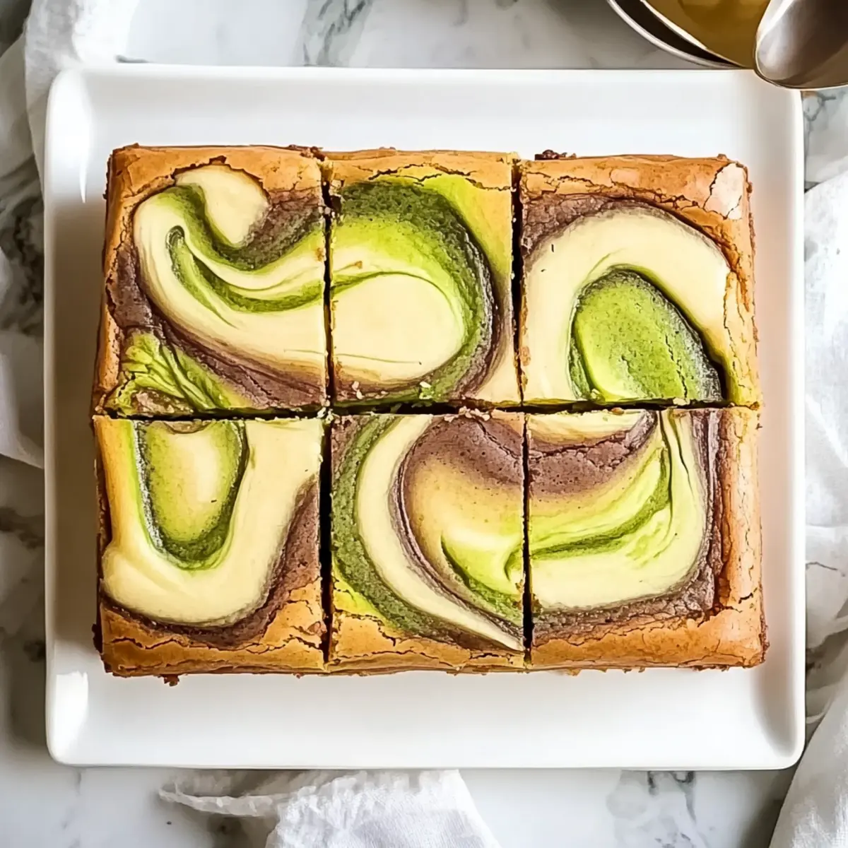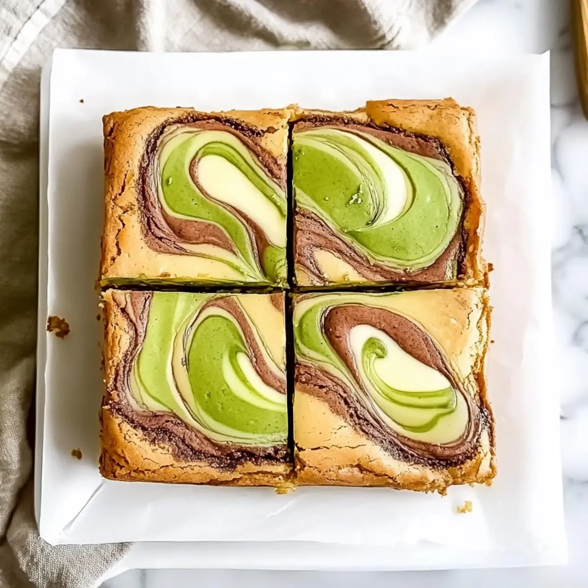 Jump to Recipe Print RecipeAs I pulled these vibrant pistachio swirl cheesecake blondies from the oven, the warm, inviting aroma filled my kitchen, evoking a cozy sense of nostalgia. The blend of a chewy blondie base and a luscious cheesecake layer creates a dessert that’s not only visually stunning but also delightfully easy to bake. With the irresistible crunch of pistachios weaving through the creamy layers, these blondies are sure to dazzle anyone who takes a bite, making them the perfect treat for gatherings or a well-deserved indulgence. Plus, they keep beautifully in the fridge, allowing you to savor every last piece throughout the week. Ready to create a dessert that’s as delicious as it is impressive? Let’s dive into this delightful recipe! Why Are These Pistachio Blondies Special? Irresistible, nutty flavor: The rich pistachio paste adds a delightful taste that sets these blondies apart from typical desserts. Stunning presentation: With their beautiful marbling and vibrant color, they’re a feast for the eyes as much as the palate. Easy baking process: You’ll be amazed by how simple it is to whip these up, making them perfect for both novice bakers and seasoned chefs alike. Perfect crowd-pleaser: Whether for a cozy family gathering or a lively party, these blondies will impress your guests and have everyone asking for the recipe. Versatile base: Feel free to experiment! Swap pistachios for other nuts like walnuts or almonds for an exciting twist. With just a few ingredients and minimal fuss, you can enjoy a delightful dessert that rivals any bakery creation. Pistachio Blondies Ingredients • Let’s gather everything you need for these delightful blondies! For the Blondie Base Unsalted Butter – Sets the foundation for the blondie base without adding excess salt. Light Brown Sugar – Provides chewiness and a caramel-like depth. Eggs – Add structure and richness to the blondies. Vanilla Extract – Adds sweetness and depth to the flavor profile. All-Purpose Flour – Holds ingredients together, ensuring a tender yet firm base. For the Cheesecake Swirl Cream Cheese – Creates a smooth, slightly tangy cheesecake layer. Granulated Sugar – Sweetens the cheesecake layer for balanced flavor. Egg Yolk – Adds silkiness to the cheesecake layer, enriching the texture. For the Pistachio Swirl Pistachio Paste – Brings a nutty flavor and beautiful color to the swirl. Green Gel Food Coloring – Enhances the visual appeal of the pistachio swirl (optional). Now that you have all your ingredients ready, let’s create some magic in the kitchen with these pistachio blondies! Step‑by‑Step Instructions for Pistachio Swirl Cheesecake Blondies Step 1: Preheat and Prepare the Pan Begin by preheating your oven to 350°F (175°C). While it heats, line an 8×8-inch baking pan with parchment paper, creating overhang on the sides. This will ensure easy removal later. Grease the parchment lightly for an even easier release and set the pan aside as you move on to the blondie base. Step 2: Melt Butter and Combine Sugars In a medium saucepan over low heat, melt the unsalted butter until just melted, then let it cool slightly. Once cooled, transfer the butter to a bowl and mix in the light brown sugar until the mixture is smooth and glossy. This buttery mixture will form the foundation of your pistachio swirl cheesecake blondies. Step 3: Add Eggs and Vanilla Crack in the eggs and add the vanilla extract to the buttery sugar mixture. Whisk everything together until completely combined and glossy. This step is crucial for achieving that rich, moist texture you want in your blondies. Don’t rush; let those flavors meld beautifully! Step 4: Incorporate Dry Ingredients Gently fold in the all-purpose flour and a pinch of salt to the mixture using a spatula. Mix until just absorbed; it’s important not to overmix here to maintain a light texture. Once combined, you’ll have a thick, luscious blondie batter, perfect for layering with the cheesecake. Step 5: Spread the Blondie Batter Pour the blondie batter into the prepared pan and use a spatula to spread it evenly across the bottom, smoothing out the surface for an even bake. Take a moment to appreciate the consistency—it should be creamy and slightly sticky, ready to cradle your cheesecake swirl. Step 6: Prepare the Cheesecake Layer In a separate bowl, beat the cream cheese with granulated sugar until creamy and smooth. Add the egg yolk and continue mixing until fully incorporated. This cheesecake layer will be luxuriously smooth, creating a perfect complement to the chewy blondie base of your pistachio swirl cheesecake blondies. Step 7: Dollop the Cheesecake Mixture Using a spoon, drop dollops of the cheesecake mixture over the blondie batter without pressing it in. Be generous but leave some blondie batter exposed for the prettiest swirls. This marked contrast will ensure each bite has both the cheesecake and blondie goodness when you slice into your finished dessert. Step 8: Add the Pistachio Swirl Next, dollop the pistachio paste between the cheesecake dollops, creating little pools of nutty flavor. This will add delightful bursts of pistachio in each bite. The vibrant color from the paste should contrast beautifully with the pale cheesecake and blondie layers as you prepare to swirl. Step 9: Create the Swirl Effect Using a thin knife or skewer, gently swirl through the layers to create a marbled effect. Be light with your motions, as heavy blending can mix the layers too much. Aim for beautiful ribbons of blondie, cheesecake, and pistachio to ensure that each piece displays the stunning visual appeal of these cheesecakes blondies. Step 10: Bake to Perfection Place the pan in your preheated oven and bake for 30-35 minutes. Keep an eye on it; the edges should turn golden brown while the center may jiggle slightly when done. A perfect blend of textures is key—soft yet set middle contrasted with lightly crispy edges. Step 11: Cool in