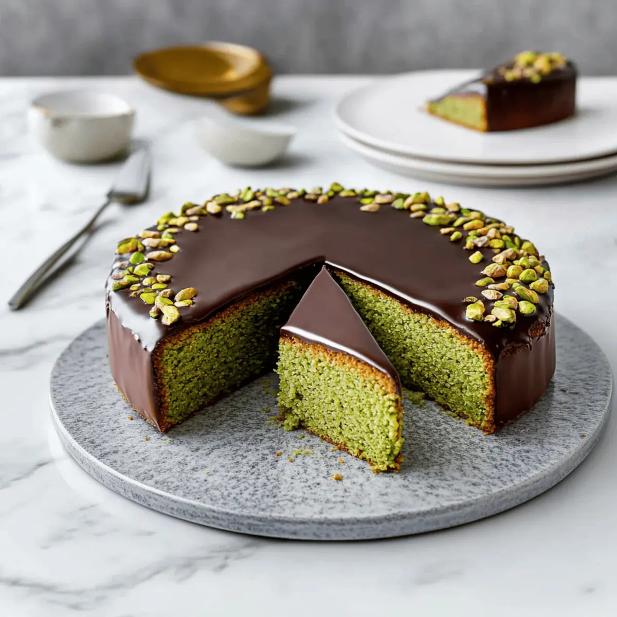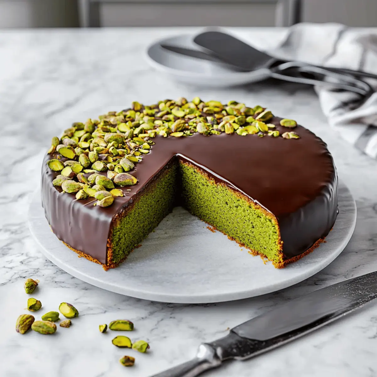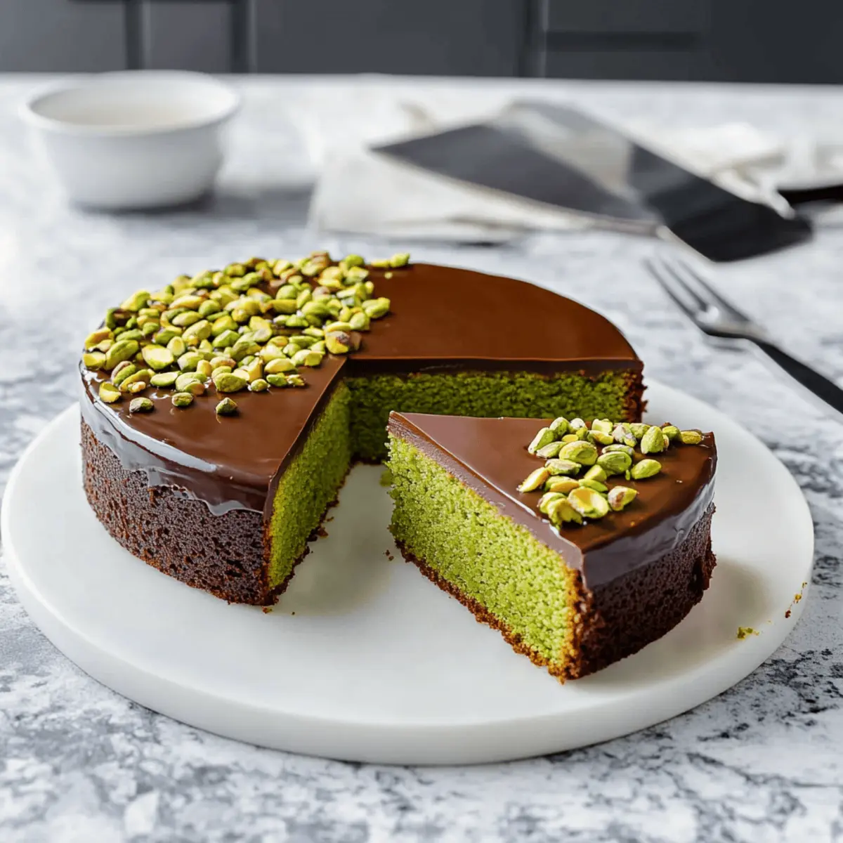 Jump to Recipe Print RecipeAs I lifted the lid off the cake carrier, a rich, nutty aroma wafted through the kitchen, drawing everyone closer. This Flourless Pistachio Cake with Chocolate Ganache is more than just a dessert—it’s a celebration in every slice! Gluten-free and naturally vibrant, it boasts a velvety texture that melts in your mouth, making it an indulgent treat for special occasions like Passover or even a cozy gathering at home. One of my favorite perks is how quick and easy it is to whip up, allowing you to impress guests without needing too much prep time. Plus, this cake lends itself beautifully to customizations—think substituting with almond flour or skipping the ganache for a lighter treat. Ready to dive into this colorful creation and wow your loved ones? Let’s get baking! Why Choose Pistachio Cake? Irresistible flavor: The combination of pistachios and dark chocolate ganache delivers a rich, nutty sweetness that’s hard to resist. Quick and easy: This cake comes together in no time, making it perfect for both beginners and seasoned bakers. You can whip it up with minimal fuss, allowing you to enjoy precious time with family and friends. Versatile for occasions: Ideal for celebrations like Passover or Valentine’s Day, this cake fits seamlessly into any special event. It’s sure to be a crowd-pleaser! Gluten-free option: With its flourless nature, this cake is a fantastic choice for gluten-intolerant guests and those seeking healthier dessert alternatives. Customizable goodness: You can easily adapt the recipe—try swapping in almond flour or omitting the ganache for a lighter treat. Your creativity shines through with every bite! Feeling adventurous? Pair this delightful cake with some fresh fruit or a light whipped cream—just like with my Strawberry Swirl Cheesecake for a refreshing contrast! Pistachio Cake with Chocolate Ganache Ingredients For the Cake • Pistachio Flour – This provides the cake’s main structure and nutty flavor; finely ground is best. • Almond Flour – Adds lightness and depth; can be substituted fully with more pistachio flour if desired. • Cornstarch – Helps maintain the cake’s structure for a beautiful rise. • Fine Sea Salt – Enhances the overall flavor profile of the cake. • Granulated Sugar – Ensures the cake is sweet and helps achieve the ideal moist texture; don’t reduce this amount. • Orange Zest – Adds a delightful citrus aroma; optional but highly recommended! • Eggs – Central for structure and moisture; make sure they’re at room temperature for optimal whipping. • Unsalted Butter – Contributes to the cake’s richness and moisture; use softened, not fully melted. • Extra Virgin Olive Oil – Adds depth and moisture; swap out for neutral oil if preferred. • Pistachio Extract – Optional but intensifies the delicate pistachio flavor. For the Ganache • Dark Chocolate (60-70%) – The star of the ganache, providing a rich chocolate flavor. • Milk Chocolate (30-35%) – Balances the bitterness of dark chocolate, creating a smooth ganache. • Heavy Cream – Provides creaminess and smoothness to the ganache; essential for that silky finish. With this array of ingredients, you’re all set to create a stunning Pistachio Cake with Chocolate Ganache that will leave your loved ones in awe! Step‑by‑Step Instructions for Flourless Pistachio Cake with Chocolate Ganache Step 1: Preheat and Prepare the Pan Begin by preheating your oven to 350°F (175°C) and preparing a 9-inch round cake pan. Generously butter the pan and line the bottom with parchment paper to ensure easy removal of the Flourless Pistachio Cake later. This preparation sets the stage for a perfect bake. Step 2: Sift the Dry Ingredients In a mixing bowl, sift together the pistachio flour, almond flour, cornstarch, and fine sea salt. This step is crucial as it aerates the flours, ensuring a light texture. Once sifted, set the bowl aside, allowing these dry ingredients to intermingle and enhance the flavors of your cake. Step 3: Infuse the Sugar Take a separate bowl and combine the granulated sugar with the orange zest, gently rubbing them together using your fingers. This method releases the fragrant oils from the zest, creating a beautifully aromatic sugar mixture. Set this infused sugar aside, ready to elevate your batter. Step 4: Whip the Eggs Using a stand mixer fitted with a whisk attachment, whip the eggs on medium-high speed until they become frothy, about 2 minutes. Gradually add the infused sugar mixture while continuing to whip until the mixture becomes pale and thick, which may take about 7-10 minutes. This aeration provides the cake with a delightful fluffiness. Step 5: Incorporate the Butter Mixture In a small saucepan, softly melt the unsalted butter until it’s just liquid but not bubbling—aim for a ranch dressing consistency. Once melted, mix in the extra virgin olive oil. Slowly drizzle this butter mixture into the egg mixture, gently folding to combine, preserving the airy texture achieved in the previous step. Step 6: Combine Wet and Dry Ingredients Now, gently fold the sifted dry ingredients into the wet mixture using a spatula. Be careful not to overmix; fold until everything is just combined. The batter for your Flourless Pistachio Cake is now ready, showcasing a beautiful green hue from the pistachio flour. Step 7: Bake the Cake Pour the prepared batter into your previously greased and lined pan. Place it in the preheated oven and bake for 40-45 minutes, or until a toothpick inserted in the center comes out clean. The cake should rise beautifully and have a slightly domed top. Step 8: Cool and Level the Cake Once baked, remove the cake from the oven and allow it to cool in the pan for about 10 minutes. Carefully run a knife around the edges, then invert onto a wire rack to cool completely. If the top has domed, trim it gently to level before preparing for ganache. Step 9: Make the Chocolate Gana