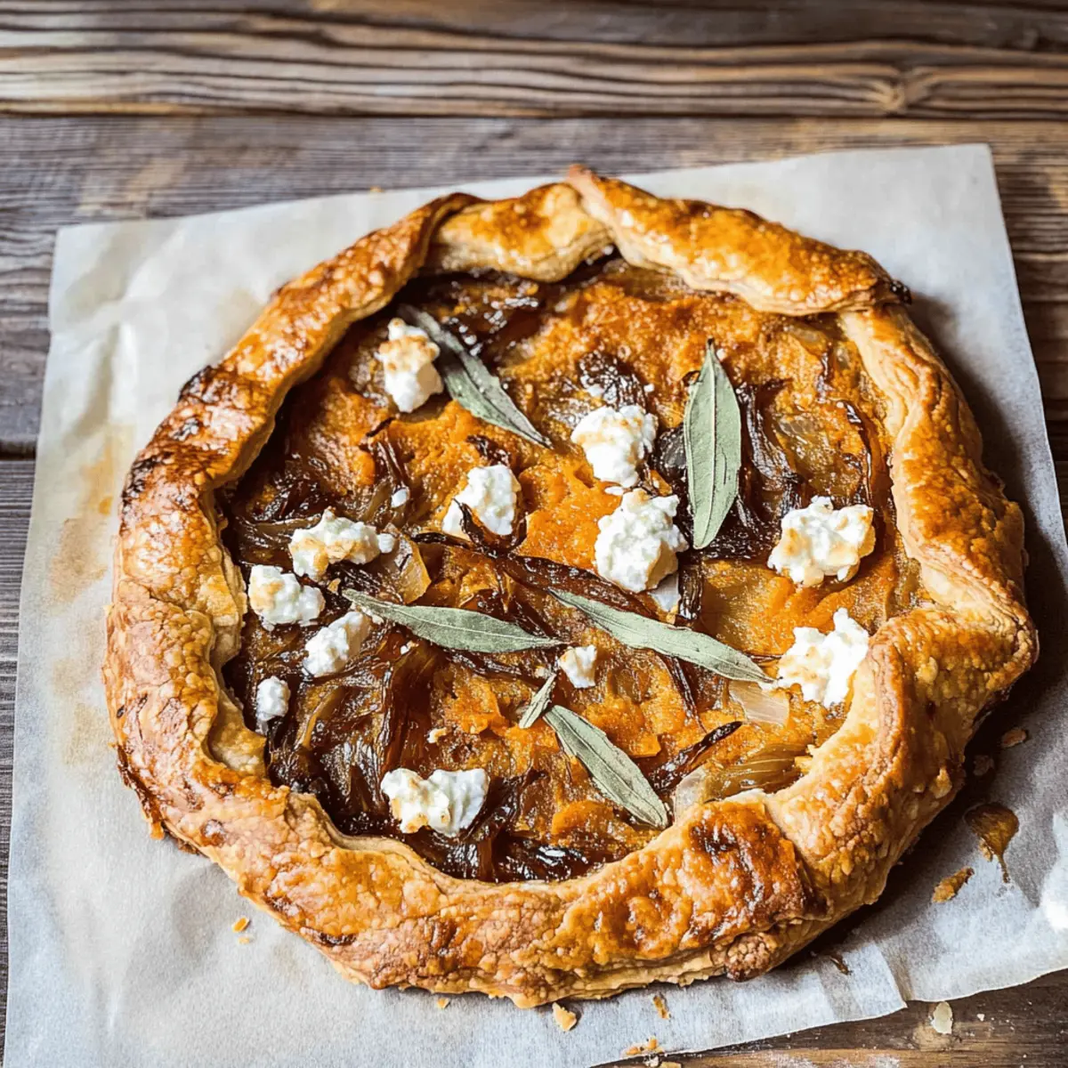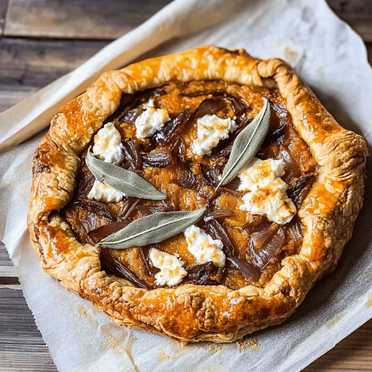 Jump to Recipe Print RecipeAs I strolled through a local farmers’ market, the vibrant colors of autumn produce inspired me. Among the seasonal treasures, pumpkins caught my eye—a perfect ingredient for creating a cozy dish at home. Enter my Savory Pumpkin and Goat Cheese Galette, a delightful twist on traditional comfort food that combines the richness of pumpkin puree, tangy goat cheese, and the sweet depth of caramelized onions. In just under an hour, you’ll have a warm, flaky galette that not only impresses at Thanksgiving gatherings but also makes for a comforting weeknight treat. Plus, this recipe is vegetarian and freezer-friendly, so you can indulge without worry! Are you ready to savor your new favorite fall dish? Let’s dive in! Why is this galette a must-try? Warmth and Comfort: The combination of sweet pumpkin and caramelized onions wrapped in a flaky crust creates a dish that feels like a hug on a plate. Easy to Make: With just a few steps, you’ll find this recipe is approachable for home cooks of all skill levels, perfect for weeknight dinners or festive gatherings. Flavor Explosion: Tangy goat cheese adds a delicious contrast, elevating the wholesome flavors—it’s savory comfort food at its finest! Endless Versatility: Feel free to experiment with different cheeses or herbs to customize each galette, making it adaptable for any meal. For other comforting ideas, check out my Baked Mac Cheese or Chili Cheese Dog recipes, too! Perfect for Entertaining: Impress your guests with this elegant yet rustic dish; it’s a standout appetizer that will surely spark conversation. Make Ahead Goodness: Prepare the filling in advance and assemble just before baking—great for busy holiday hosts! Pumpkin and Goat Cheese Galette Ingredients For the Crust All-Purpose Flour – Provides structure for a tender crust; could swap for white whole wheat for added nuttiness. White Whole Wheat Flour – Enhances flavor and adds a subtle nuttiness; regular whole wheat flour works too. Unsalted Butter (Cold, Cubed) – Essential for a flaky texture; keep it cold for best results. Salt – Enhances flavor in the dough; consider using Diamond Crystal Kosher salt for balanced seasoning. Large Egg – Binds the crust ingredients together and contributes to structure. Cold Water – Aids in adjusting the dough texture; add in small increments for best results. For the Filling Unsalted Butter (for Filling) – Contributes richness and flavor; browning it elevates the taste. Fresh Sage (Finely Chopped, Plus Whole Leaves) – Adds aromatic flavor to the savory filling; whole leaves are great for garnish. Pumpkin Puree (Canned or Fresh) – The key ingredient providing sweetness and moisture; fresh puree packs a better flavor punch. Large Egg (for Filling) – Helps set the filling while baking, ensuring a cohesive texture. Kosher Salt – Season to taste for optimal flavor—don’t forget to adjust based on your preference! Caramelized Onions (from 2-3 Onions) – Brings sweetness and depth to the filling; best made ahead of time. Goat Cheese (Crumble) – Offers a tangy contrast to the sweetness of pumpkin and onions; substitute with feta or ricotta for variety. Honey – Adds a touch of sweetness, which can be adjusted or omitted as desired. Flaky Sea Salt (Optional) – For garnish; elevates flavor as a finishing touch. With its comforting and savory notes, the Pumpkin and Goat Cheese Galette is ready to shine on your table, bringing warmth to your autumn gatherings! Step‑by‑Step Instructions for Pumpkin and Goat Cheese Galette Step 1: Prepare the Dough In a mixing bowl, combine all-purpose flour, white whole wheat flour, and salt, creating a well-mixed base. Incorporate cold, cubed unsalted butter using a pastry cutter or your fingertips until the mixture resembles coarse crumbs. Add the beaten egg and cold water gradually, mixing until a shaggy dough forms. Shape it into a disk, wrap in plastic, and chill in the refrigerator for at least 30 minutes to ensure flakiness. Step 2: Make the Filling While the dough chills, heat a skillet over medium heat and melt unsalted butter until it’s golden brown with a nutty aroma. Stir in finely chopped fresh sage and cook for another minute, releasing its fragrance. In a bowl, mix the browned butter with pumpkin puree, a large egg, and kosher salt until smooth and well combined. This savory filling will elevate your Pumpkin and Goat Cheese Galette. Step 3: Assemble the Galette Preheat your oven to 425°F (220°C). On a lightly floured surface, roll out the chilled dough into a 12-inch circle, about 1/8-inch thick. Transfer the dough to a parchment-lined baking sheet, leaving plenty of space around the edges. Spread the prepared pumpkin filling in the center, leaving a 2-inch border. Carefully layer the caramelized onions, crumbled goat cheese, and a drizzle of honey atop the filling, ensuring even distribution. Step 4: Fold and Bake Fold the edges of the dough over the filling, creating pleats as you go, and press gently to hold them in place. Brush the exposed dough with an egg wash made from a beaten egg for a golden finish. Sprinkle flaky sea salt over the crust if desired. Bake the assembled Pumpkin and Goat Cheese Galette in the preheated oven for 25-30 minutes until the crust is golden brown and the filling is set, creating a beautiful rustic appearance. Step 5: Serve and Enjoy Once baked, remove the galette from the oven and let it cool for about 10 minutes on the baking sheet. This cooling time helps the filling firm up and makes slicing easier. Cut into wedges and serve warm as an appetizer or side dish, showcasing the delightful combination of flavors and textures that make the Pumpkin and Goat Cheese Galette a perfect centerpiece for your cozy fall gatherings. Expert Tips for the Best Pumpkin and Goat Cheese Galette Chill the Ingredients: Keep your butter and water cold for the crust. This step is crucial for ensuring a flaky texture in y