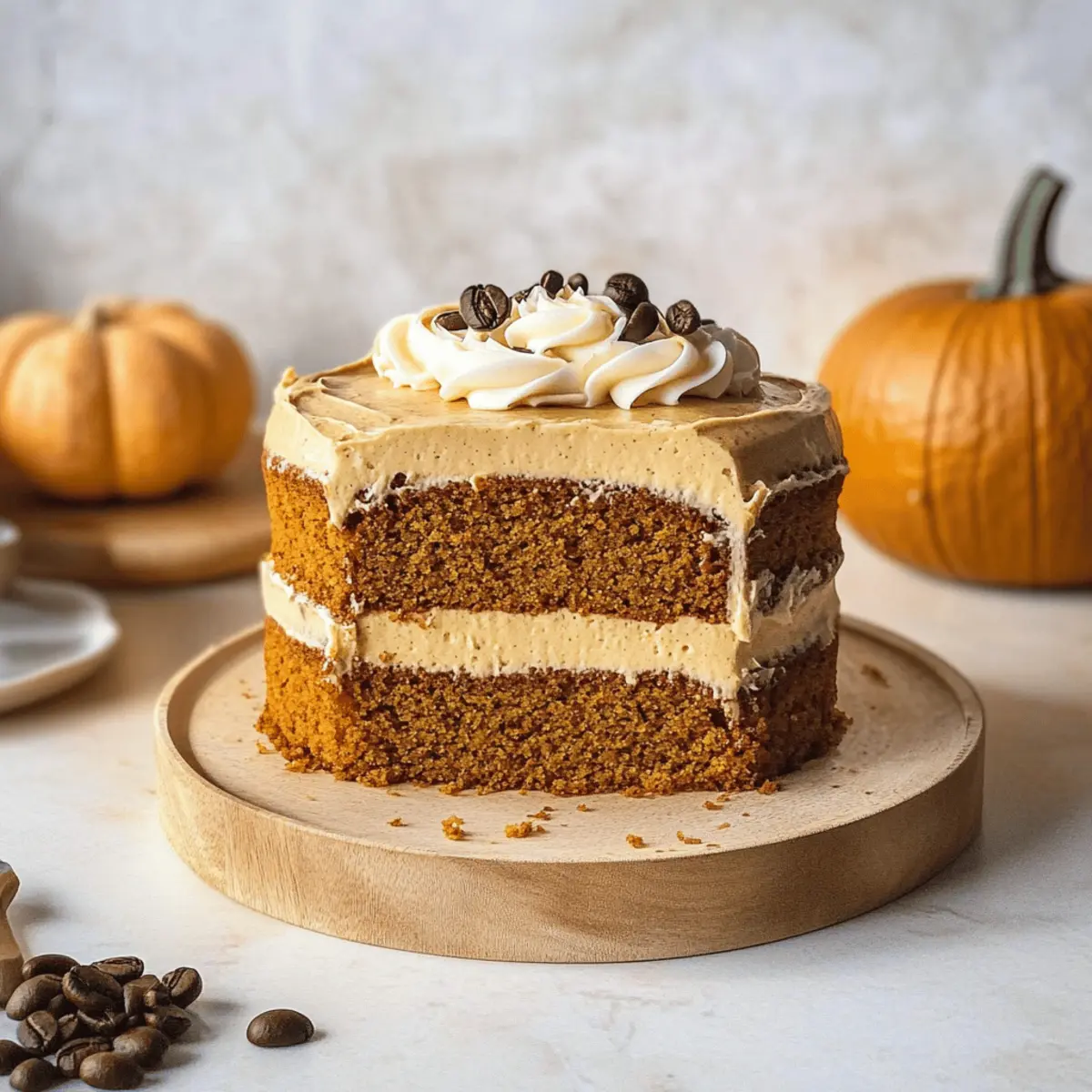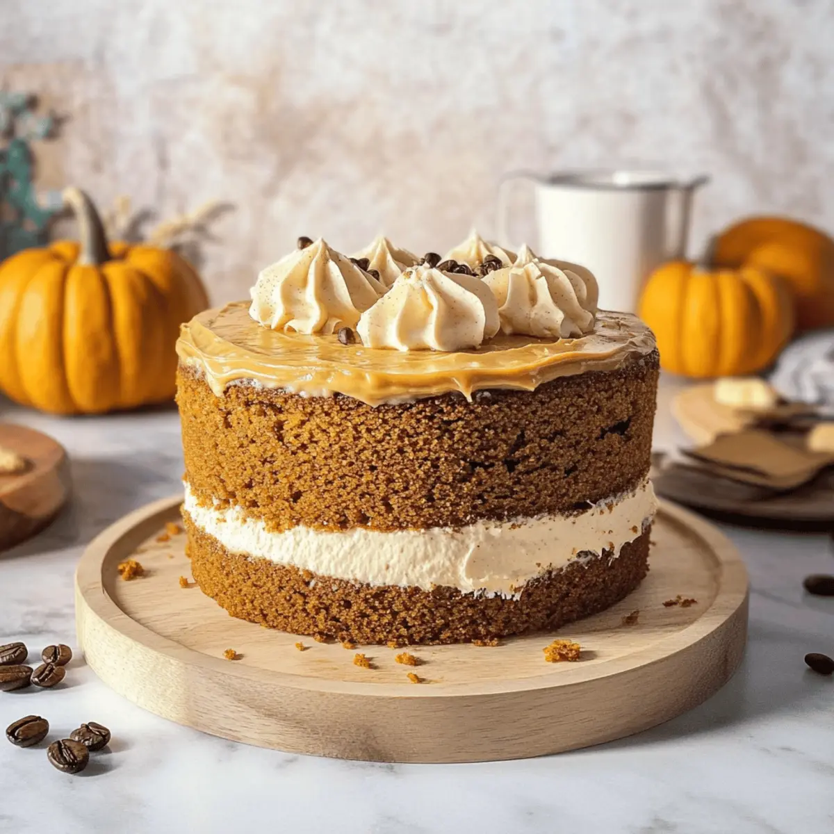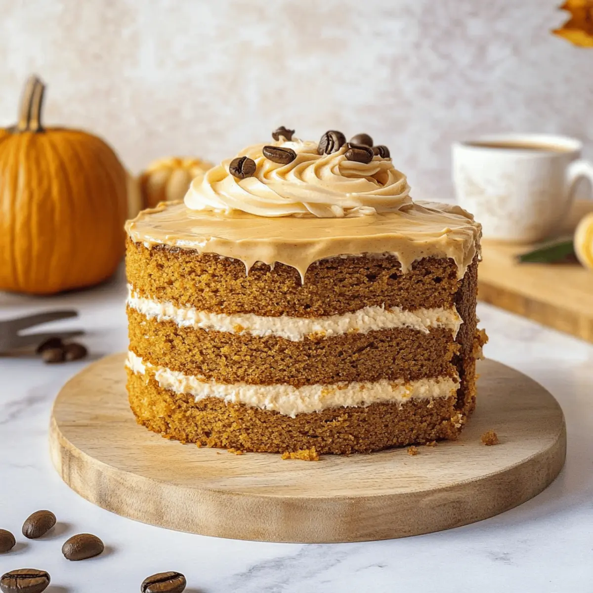Jump to Recipe Print RecipeAs the leaves begin to turn and the air turns crisp, there’s something undeniably comforting about cozying up with a slice of Pumpkin Spice Latte Cake. This cake is no ordinary dessert; it’s a delightful fusion of moist pumpkin-infused sponges, complemented by an irresistibly creamy coffee cream cheese frosting that gives you that much-loved caffeine kick. Not only does it capture the essence of fall flavors, but it also comes together quickly, making it perfect for any gathering or simple afternoon treat. Plus, it’s sure to impress friends and family with its warm aroma and beautiful layers. Are you ready to dive into this seasonal delight? Let’s get baking! Why is Pumpkin Spice Latte Cake a must-try? Comforting Flavor Combination: This cake blends the warmth of pumpkin spice with the rich undertones of coffee — a truly divine treat for fall. Quick & Easy: With straightforward steps, anyone can whip this up in no time, making it the ideal dessert for unexpected guests or cozy nights at home. Showstopper Presentation: The gorgeous layers and fluffy frosting make this cake a visual delight, perfect for impressing friends at your next gathering. Nourishing Twist: Incorporating pumpkin not only boosts moisture but also adds vitamins A and C to your indulgent slice. For more cozy recipes, check out my Fried Strawberry Cheesecake Sandwiches or the rich flavors of Peanut Butter Cheesecake! Pumpkin Spice Latte Cake Ingredients For the Cake • Self-raising Flour – Provides structure and rise to the cake; can substitute with all-purpose flour plus baking powder (2 tsp). • Pumpkin Spice Mix – Adds warm, seasonal flavors; easily made at home with common spices like cinnamon, allspice, and nutmeg. • Vegetable Oil – Keeps the cake moist; can substitute with canola or melted coconut oil. • Eggs (large) – Binds ingredients and adds moisture; ensure they are at room temperature for better mixing. • Vanilla Extract – Enhances the flavor profile of the cake; can substitute with almond extract for a different twist. • Light Brown Sugar – Sweetens and adds a caramel-like flavor; can be replaced with granulated sugar, but texture may differ. • Canned Pumpkin Puree – Provides moisture and rich pumpkin flavor; freshly cooked and pureed pumpkin will work as well. For the Frosting • Instant Coffee Granules – Adds the ‘latte’ flavor to the frosting; brewed coffee can be used, but flavors may vary. • Boiling Water – Used to dissolve coffee granules for the frosting. • Unsalted Butter – Creates a creamy frosting; must be at room temperature for proper mixing. • Icing Sugar – Sweetens and thickens the frosting; ensure it’s sifted to avoid lumps. • Full-fat Cream Cheese – Forms the base of the frosting; must be cold to achieve the right consistency. Discover how delectable this Pumpkin Spice Latte Cake can be for your autumn gatherings! Step‑by‑Step Instructions for Pumpkin Spice Latte Cake Step 1: Preheat the Oven Preheat your oven to 160° fan / 180° conventional. While it heats, prepare two 7-inch round cake tins by greasing them with butter and lining them with baking paper. This will ensure your Pumpkin Spice Latte Cake releases easily after baking, giving you beautifully intact layers ready for frosting. Step 2: Combine Dry Ingredients In a large mixing bowl, whisk together the self-raising flour and pumpkin spice mix until evenly blended. The warm aroma of the spices will fill the air, hinting at the cozy flavors to come. Make sure there are no lumps, and set the bowl aside as you move on to the wet ingredients. Step 3: Mix Wet Ingredients In another mixing bowl, combine the vegetable oil, eggs, vanilla extract, light brown sugar, and canned pumpkin. Using a whisk, blend the ingredients until smooth and well incorporated, which should take about 2-3 minutes. This mixture will add moisture and flavor, forming the base of your Pumpkin Spice Latte Cake. Step 4: Combine Wet and Dry Mixtures Gently pour the wet mixture into the bowl with the dry ingredients. Use a spatula to fold the mixtures together until just combined. Be careful not to over-mix; the batter should be slightly lumpy but cohesive. This will keep your cake light and fluffy, ensuring a delightful texture throughout. Step 5: Bake the Cake Divide the batter evenly between the prepared cake tins and smooth the tops with a spatula. Place the tins in the preheated oven and bake for 45-50 minutes. The cakes are done when they spring back lightly when touched and a skewer inserted into the center comes out clean. Step 6: Cool the Cakes After baking, let the cakes cool in the tins for about 15 minutes. Then, carefully transfer them to a wire rack to cool completely. This step is crucial to avoid melting the frosting later; you want your Pumpkin Spice Latte Cake layers to be perfectly cooled for assembling. Step 7: Prepare the Frosting To make the frosting, first dissolve the instant coffee granules in a small bowl of boiling water and allow it to cool slightly. In a large bowl, beat the room-temperature unsalted butter for about 2 minutes until it’s pale and creamy. This creates a light and fluffy base for your frosting. Step 8: Mix in Sugar and Coffee Gradually add sifted icing sugar to the creamed butter, mixing until smooth and fully combined. Once the mixture is thick and fluffy, fold in the cooled coffee mixture and the cold cream cheese. Blend gently until just combined, ensuring not to over-mix, which could make the frosting runny. Step 9: Assemble the Cake To assemble your Pumpkin Spice Latte Cake, place one cooled cake layer on a serving plate. Spread half of the frosting evenly on top, creating a smooth, luscious layer. Carefully place the second layer on top and finish with the remaining frosting, spreading it with a spatula for an attractive finish. Step 10: Decorate and Serve Feel free to decorate your cake as you prefer! Crushed cookies or a sprink