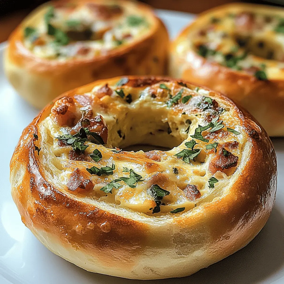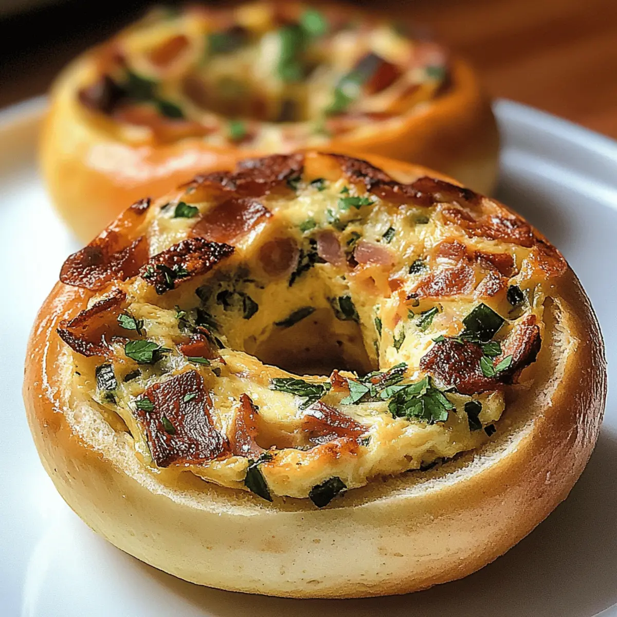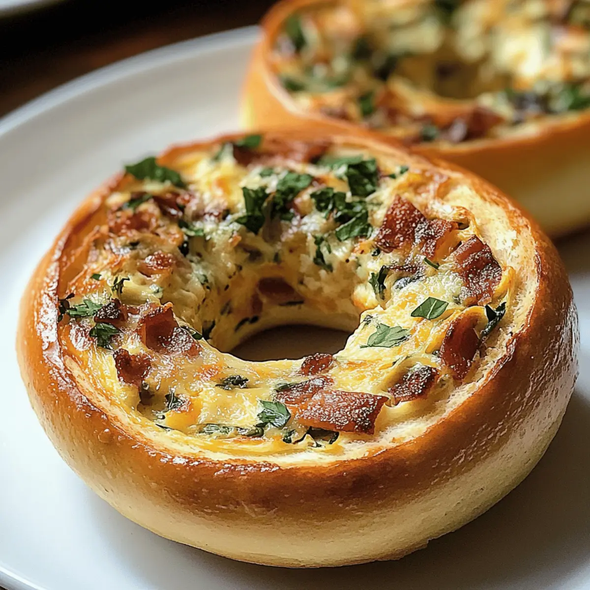 Jump to Recipe Print RecipeThe delightful aroma of freshly baked bagels spilling into the kitchen is a memory I cherish, and these Quiche Stuffed Bagels take that experience to a whole new level. Combining a chewy bagel with a creamy, flavorful quiche filling, this recipe is not just delicious but incredibly versatile too. You can personalize these portable brunch bites to be as hearty or light as you desire, from savory bacon and cheddar to garden-fresh veggie combinations. They’re perfect for busy weekdays or those leisurely weekends when you want something special without a lot of fuss. As a bonus, these bagels freeze beautifully, making them a lifesaver for quick breakfasts or brunch gatherings. Curious to find out just how easy it is to whip up your own batch? Let’s dive in! Why are Quiche Stuffed Bagels a must-try? Unique blend of flavors: The combination of chewy bagels and creamy quiche filling creates a delightful contrast, making every bite unforgettable. Customizable to your taste: Whether you prefer bacon and cheddar or a fresh veggie mix, you can adapt the recipe to fit your flavor profile. Perfectly portable: These stuffed wonders are great for brunch on-the-go, so you can enjoy delicious homemade food without the fuss. Easy to prepare: With simple steps and common ingredients, you’ll have these tasty treats ready in no time, allowing you to focus on what really matters—sharing with friends and family. Freezer-friendly: Make a batch in advance and keep them handy for quick breakfasts throughout the week, similar to our Pineapple Chicken Rice stuffed peppers. Quiche Stuffed Bagels Ingredients For the Bagels • Bagels – Fresh or slightly stale bagels are best for easy handling and a sturdy base. For the Quiche Filling • Eggs – Essential for richness and structure, ensuring your filling is creamy and delicious. • Cream – Adds a velvety texture and enhances the richness of the quiche portion of your Quiche Stuffed Bagels. • Cheese – Choose your favorite like cheddar, mozzarella, or feta for extra flavor and creamy texture. For the Fillings • Pre-cooked Vegetables – Incorporate fillings like spinach or mushrooms; just be sure they’re cooked first to avoid excess moisture. • Pre-cooked Meats – Options like ham or bacon can add a savory kick to your stuffed bagels; make sure they’re ready to go! • Fresh Herbs – Enhance flavor with herbs like chives or parsley; they make a lovely garnish and add freshness. Step‑by‑Step Instructions for Quiche Stuffed Bagels Step 1: Preheat Your Oven Begin by preheating your oven to 375°F (190°C). This temperature ensures the perfect balance of heat for baking the bagels while allowing the creamy filling to set beautifully. While the oven warms up, gather your ingredients and tools, ensuring you have a lined baking sheet ready to go for the Quiche Stuffed Bagels. Step 2: Prepare the Bagels Take each bagel and gently hollow out the center, using your fingers or a small knife to create a cavity for the filling. Aim to remove enough of the bread without compromising the overall structure—leaving a sturdy outer edge is key. You can also press down the middle slightly for more space, making it easy to fill them later. Step 3: Mix the Egg Mixture In a large mixing bowl, whisk together the eggs, cream, and your choice of cheese until your mixture is creamy and well-combined. Use a fork or a whisk to ensure no egg white clumps remain—this will guarantee an evenly textured filling for your Quiche Stuffed Bagels. Set aside once blended, allowing the flavors to meld. Step 4: Add Fillings Now it’s time to enhance your egg mixture! Gently stir in your pre-cooked fillings, such as vegetables or meats, while seasoning with salt and pepper to taste. This step is crucial for adding flavor and ensuring a satisfying bite. The combination of ingredients will make your bagels burst with taste once baked. Step 5: Fill the Bagels Carefully spoon the quiche mixture into each hollowed-out bagel, filling them generously but avoiding overfilling them to prevent spillage during baking. Use a spoon or small measuring cup to make this task easier. As you assemble, you will see the lovely layers of flavors and colors come together in these Quiche Stuffed Bagels. Step 6: Top with Cheese For an extra delicious touch, sprinkle additional cheese on top of each filled bagel. This will create a beautifully golden, crispy finish while adding an extra layer of flavor to your Quiche Stuffed Bagels. Ensure the cheese is evenly distributed to achieve even browning in the oven. Step 7: Bake to Perfection Place the stuffed bagels on your lined baking sheet and bake them in the preheated oven for 15–18 minutes. Keep an eye on them, and look for a nice golden color on top along with set filling—this indicates they are perfectly cooked and ready to be enjoyed. Step 8: Cool and Serve Once baked, remove the Quiche Stuffed Bagels from the oven and let them cool for a few minutes. This waiting period allows the filling to settle and makes them safer to handle. Serve warm and consider garnishing with fresh herbs or a pinch of paprika for extra flair before sharing with family and friends. Expert Tips for Quiche Stuffed Bagels Pre-cook Veggies: Always ensure vegetables are pre-cooked to prevent excess moisture in the filling, keeping your Quiche Stuffed Bagels from becoming soggy. Stale Bagels Work Best: Using slightly stale bagels makes hollowing them out easier and provides better structural integrity during baking. Monitor Baking Time: Keep a close eye on the oven to avoid over-browning. Aim for a golden top while ensuring the filling is fully set for the best texture. Experiment with Fillings: Feel free to mix and match ingredients, but remember to season your egg mixture well for flavor. Don’t skip on fresh herbs! Freeze for Convenience: Prep a batch and freeze them before baking. They’ll be a lifesaver for quick breakfasts or brunch gath