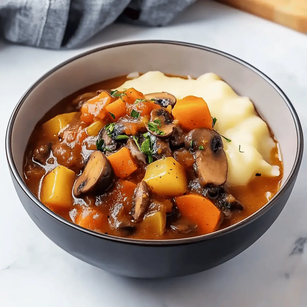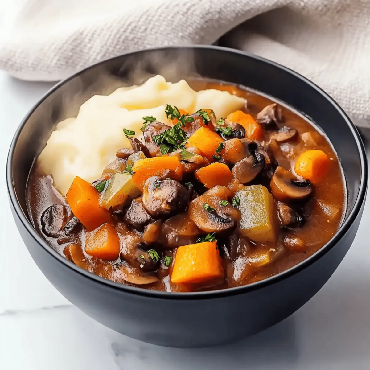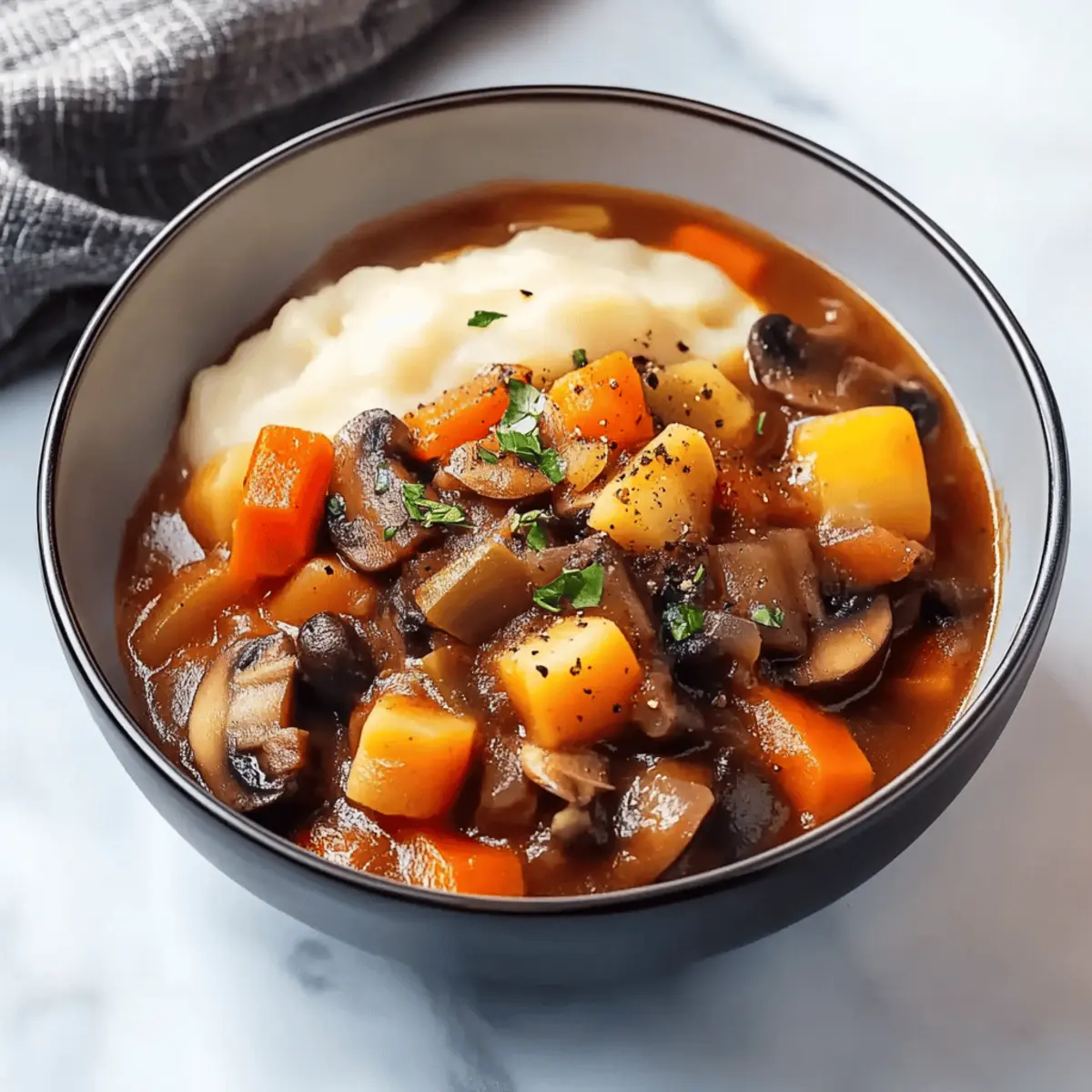 Jump to Recipe Print RecipeJust the other day, I found myself staring at a fridge full of colorful vegetables, pondering what quick meal I could whip up to warm my soul. That’s when the idea of a Hearty Quick Vegetarian Stew came to life—a dish that’s both comforting and flexible enough to accommodate whatever ingredients you have on hand. This recipe is not only a nourishing option packed with fiber and nutrients but also a canvas for creativity, allowing you to mix and match vegetables based on your personal preferences or what’s in season. Perfect for those busy evenings, this stew demands minimal prep time and is sure to please even the pickiest of eaters. Ready to turn your vegetable scraps into a delicious masterpiece? Let’s dive into this heartwarming recipe together! Why is this stew a must-try? Versatile Ingredients: This stew is a fantastic way to utilize any vegetables you have on hand—swap out ingredients based on your pantry or what’s in season. Quick to Prepare: With minimal prep time and cook time, you’ll have a hearty meal ready in under an hour. Rich, Comforting Flavor: Packed with savory notes from mushrooms and herbs, every spoonful is a warm hug. Crowd-Pleasing Option: Suitable for both vegetarians and meat lovers, it’s a delicious choice for family dinners or gatherings. Nutritious and Filling: High in fiber and vitamins, this stew not only satisfies hunger but also nourishes your body. Try it alongside some crusty sourdough, or consider pairing with a healthy side like Miso Soup for a complete meal! Quick Vegetarian Stew Ingredients For the Base • Olive Oil – Essential fat for sautéing; feel free to use canola or avocado oil if preferred. • Onion – Provides a flavorful base; you can substitute shallots for a milder touch. • Celery – Adds a pleasant crunch; bell pepper can be an excellent alternative. • Carrots – Contributes natural sweetness; any root vegetable can seamlessly take their place. • Chestnut Mushrooms – The rich star of the stew; white button or cremini mushrooms work well as substitutes. • Garlic – Infuses aromatic depth; always opt for fresh garlic over powdered for the best flavor. For the Flavors • Rosemary & Thyme – Key herbs that enhance flavor; dried versions are fine, just adjust the amount accordingly. • Tomato Puree – Adds essential richness and umami; crushed tomatoes can also be a suitable substitute. • Soy Sauce – Elevates the stew’s savory profile; opt for tamari if you need a gluten-free version. • Flour – Helps to thicken your stew; cornstarch makes a great gluten-free alternative. • Red Wine – Introduces complexity; you can replace it with extra vegetable stock for a non-alcoholic version. For the Extras • Parsnips & Swede – Offer additional texture and richness; any root vegetable is an excellent substitute option. • Vegetable Stock – The savory base of your stew; homemade stock can elevate flavor, but store-bought is a fine shortcut. • Bay Leaves – Impart aromatic flavor; fresh or dried work beautifully for this recipe. • Salt & Black Pepper – Essential for basic seasoning; adjust according to your taste preferences. With all these ingredients, you’re well on your way to creating a delicious and wholesome Quick Vegetarian Stew that’s both flexible and satisfying. Happy cooking! Step‑by‑Step Instructions for Quick Vegetarian Stew Step 1: Sauté the Base Flavors Heat 2 tablespoons of olive oil in a large Dutch oven over low heat. Once the oil shimmers, add one chopped onion and two chopped celery stalks with a pinch of salt. Sauté for about 10 minutes, stirring occasionally, until the onion becomes translucent and aromatic, laying a flavorful foundation for your hearty Quick Vegetarian Stew. Step 2: Incorporate Sweetness Next, add two chopped carrots to the pot, stirring them in with the onion and celery mixture. Continue cooking for another 10 minutes, allowing the carrots to soften and release their natural sweetness, which will enhance the overall flavor of your stew. The vegetables should start to show a bit of browning, indicating they’re developing a rich profile. Step 3: Add the Mushrooms Increase the heat to medium and introduce 8 ounces of chopped chestnut mushrooms to the pot. Stir them well and cook for about 5 minutes, until they begin to soften and release their juices, enriching the stew with their earthy flavor. The mixture should look vibrant and inviting, signaling that it’s time to move to the next step. Step 4: Aromatics and Herbs Add 3 minced garlic cloves, 1 teaspoon of dried rosemary, and 1 teaspoon of dried thyme to the mix. Stir everything together and let it cook for 1-2 minutes until the garlic is fragrant and lightly golden. This aromatic blend elevates the savory notes of your Quick Vegetarian Stew and fills your kitchen with a delightful aroma. Step 5: Build the Flavor Base Stir in 3 tablespoons of tomato puree and 2 tablespoons of soy sauce, ensuring they evenly coat the vegetables. Then, sprinkle in 2 tablespoons of flour, mixing continuously for about 2-3 minutes. This step allows the flour to absorb the flavors deeply while preventing a pasty taste, creating a rich base for your stew. Step 6: Add Liquid Components Gradually pour in 1 cup of red wine, stirring constantly until the mixture thickens slightly, which should take about 2 minutes. The wine will deepen the flavor of your Quick Vegetarian Stew while adding a touch of acidity. If you prefer a non-alcoholic version, substitute with extra vegetable stock. Step 7: Introduce More Vegetables Now, add 2 chopped parsnips, 2 chopped swedes, and 4 cups of vegetable stock into the pot. Toss in 2 bay leaves along with salt and black pepper to taste. Bring the mixture to a gentle boil, then lower the heat, allowing it to simmer. Let it cook uncovered for 45-50 minutes, stirring occasionally until all the vegetables are tender. Step 8: Final Adjustments Once the stew 