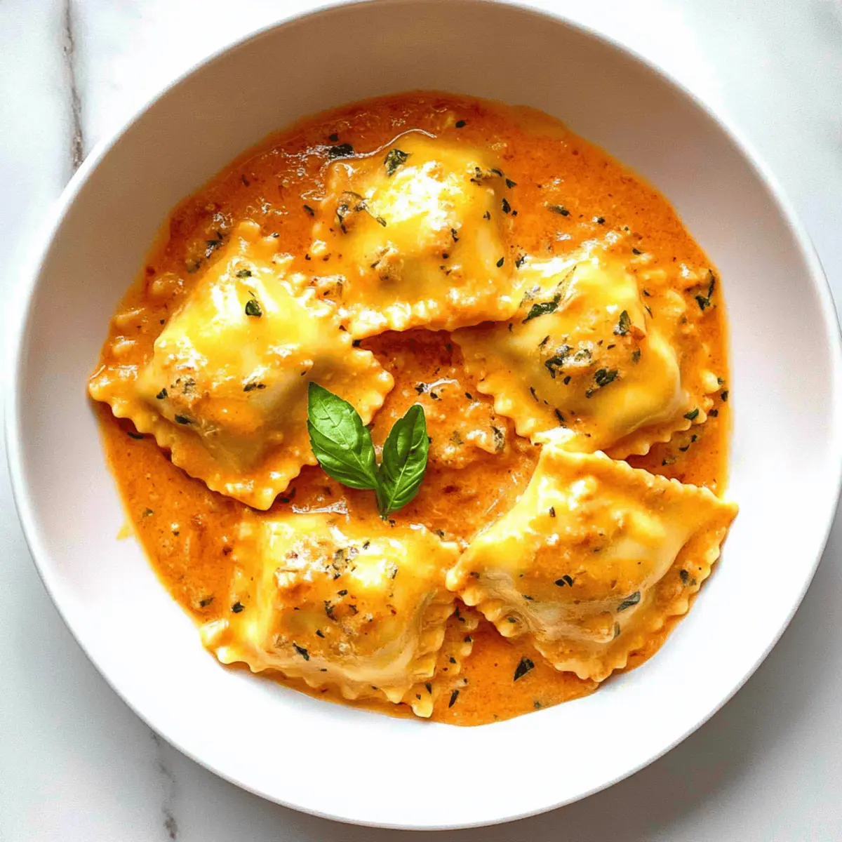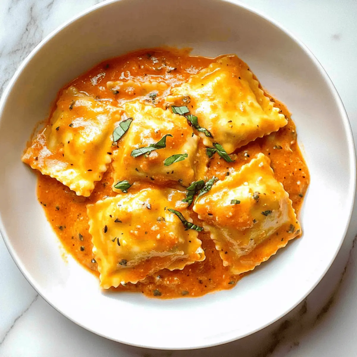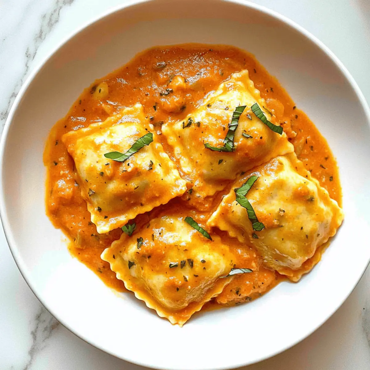 Jump to Recipe Print RecipeAs the aroma of sautéing onions and garlic filled my kitchen, I could feel the weight of a long day beginning to lift. This creamy tomato rosé sauce is the type of dish that turns an ordinary evening into a delightful culinary experience. With an easy prep time of just 30 minutes, it’s a perfect homemade ravioli sauce that celebrates the beautiful harmony of tomatoes and cream, making it an irresistible complement to your favorite pasta. Not only is this sauce quick to whip up, but it also offers a comforting depth of flavor that rivals your favorite Italian restaurant dishes. Ready to elevate your weeknight meals? Let’s dive into this delightful recipe and create a bowl of happiness together! Why Is This Ravioli Sauce a Must-Try? Quick Preparation: With only 30 minutes needed, this sauce transforms your weeknight dinner without compromising on flavor. Rich and Creamy: The combination of heavy cream and tomato paste gives this sauce a dreamy texture, taking your ravioli to new heights. Endless Versatility: Whether you’re serving it over classic ravioli, spaghetti, or even with a touch of Grilled Shrimp Sauce, this sauce adapts to whatever cravings you have! Crowd-Pleasing Flavor: Its perfect balance of sweetness and acidity complements all palates, making it a hit with family and friends. Easily Customizable: Feel free to add spinach or mushrooms for added nutrition, or choose a non-dairy cream for a vegan twist. This sauce is truly a canvas for your culinary creativity! Ravioli Sauce Ingredients Prepare to create something special with these simple ingredients for your creamy ravioli sauce! For the Base Extra Virgin Olive Oil – Perfect for sautéing the aromatics and enhancing flavor. Onion – 1 medium onion, finely diced for sweetness and depth. Yellow or white onions preferred. Garlic – 3 cloves, minced for pungency and aroma. Freshly minced enhances the flavor. Tomato Paste – ⅓ cup, contributes to rich tomato flavor and thickens sauce. Can be replaced with sun-dried tomato paste for a different depth of flavor. Low-Sodium Chicken Stock – 1 cup, adds moisture and flavor. Substitution: Vegetable stock for a vegetarian version. Diced Tomatoes – One 15-ounce can, provides texture and juiciness. Crushed tomatoes can be used instead if desired. For the Seasoning Sugar – 1 tablespoon, balances acidity from tomatoes. Adjust based on personal preference for sweetness. Italian Seasoning – 1 teaspoon, adds herby flavor profile. Use fresh herbs for a more vibrant taste. Salt – ¼ teaspoon, enhances overall flavor. Use based on dietary needs or preferences. Ground Black Pepper – ¼ teaspoon, adds a slight heat. Adjust to taste. For the Creaminess Heavy Cream – ⅓ cup, imparts creaminess and richness to the sauce. Substitution: Half-and-half for a lighter version. Get ready to mix and savor this delightful ravioli sauce that will elevate your pasta night! Step‑by‑Step Instructions for Creamy Ravioli Sauce Step 1: Sauté Aromatics In a medium pot, heat 2 tablespoons of extra virgin olive oil over medium-high heat until it shimmers, about 1-2 minutes. Add 1 finely diced medium onion and 3 minced garlic cloves, stirring frequently. Cook for 4-5 minutes until the onion is softened and translucent, releasing a delightful aroma that fills your kitchen. Step 2: Cook Tomato Paste Next, stir in ⅓ cup of tomato paste, and allow it to caramelize slightly by cooking for an additional minute. Keep stirring gently to ensure it doesn’t burn, as the caramelization will deepen the flavor of your homemade ravioli sauce and bring out the richness of the tomatoes. Step 3: Create Sauce Base Pour in 1 cup of low-sodium chicken stock and one 15-ounce can of diced tomatoes, along with 1 tablespoon of sugar, 1 teaspoon of Italian seasoning, ¼ teaspoon of salt, and ¼ teaspoon of ground black pepper. Bring this mixture to a boil over medium-high heat, then reduce the heat and let it simmer for 15-20 minutes. You’ll notice the sauce thickening and the flavors melding beautifully. Step 4: Incorporate Cream After 20 minutes, carefully stir in ⅓ cup of heavy cream into your sauce. Continue to cook on low heat for an additional 2 minutes, allowing the cream to blend seamlessly with the tomato base, resulting in a silky texture that beautifully enhances the overall sauce. Step 5: Serve Once your creamy ravioli sauce is ready, remove it from the heat. Spoon it generously over your favorite cooked ravioli and watch the sauce cling lovingly to each piece, creating a comforting and sumptuous plate that’s sure to elevate your dinner experience. Make Ahead Options This creamy ravioli sauce is perfect for meal prep, saving you valuable time on busy nights! You can prepare the entire sauce up to 3 days in advance. To do this, simply follow the recipe through step 4 (incorporating the cream), then allow the sauce to cool completely. Store it in an airtight container in the refrigerator. When you’re ready to serve, gently reheat the sauce over low heat, stirring occasionally and adding a splash of water if needed to maintain its creamy consistency. Remember, finishing right before serving ensures it stays just as delicious, with that velvety texture you love! Ravioli Sauce Variations & Substitutions Feel free to get creative with this delicious sauce and make it your own! Dairy-Free: Use a non-dairy cream option like coconut cream or cashew cream for a vegan twist on this rich sauce. Veggie Boost: Add sautéed spinach or kale right before serving to sneak in some greens, providing a pop of color and nutrition. Mushroom Medley: Stir in some finely diced mushrooms while sautéing the onions for an earthy flavor that complements the sauce beautifully. Spicy Kick: Enhance the heat by adding red pepper flakes or diced jalapeños during cooking for a zesty surprise that will tantalize your taste buds. Sun-Dried Tomato Twist: Replace fresh tomatoes with diced sun-dried t