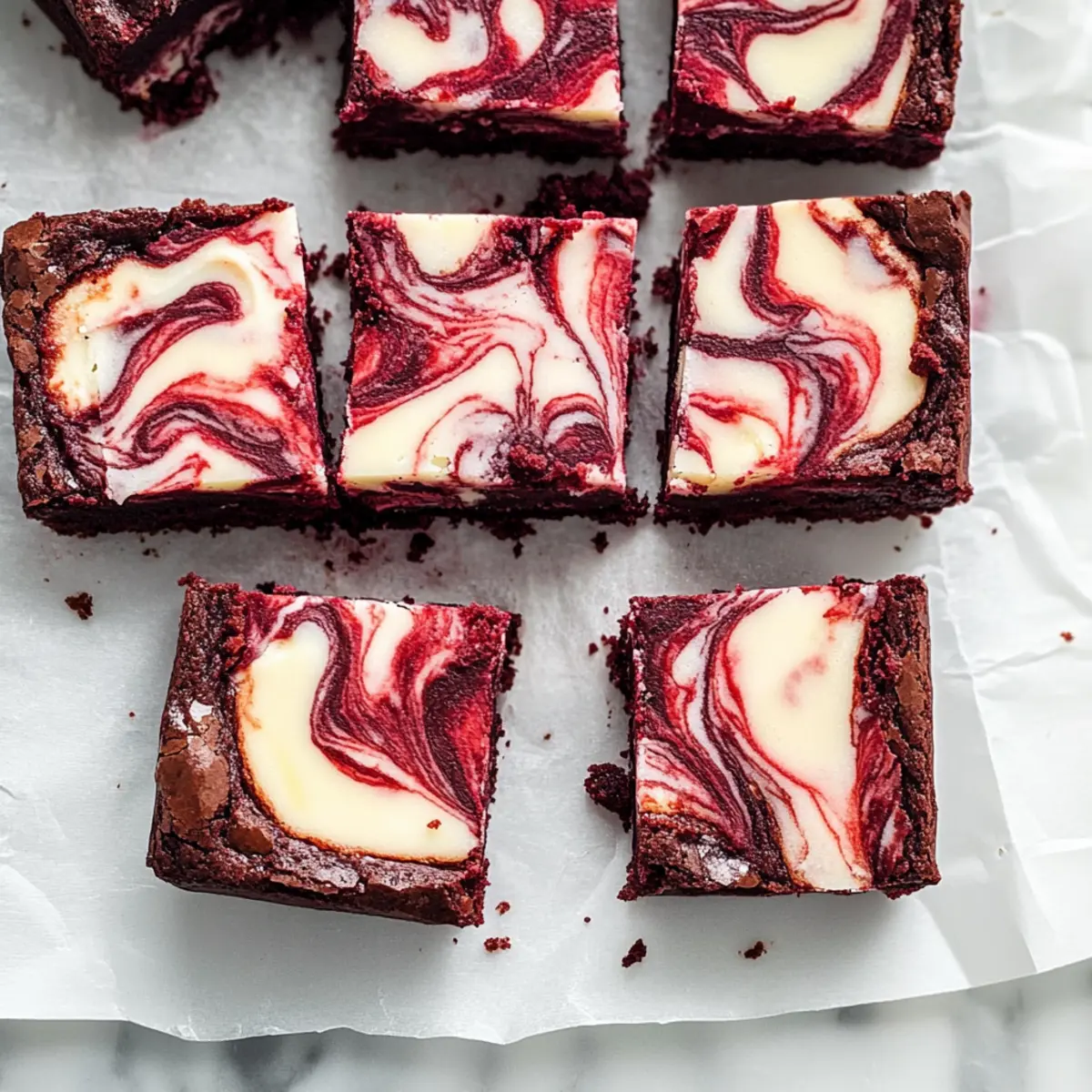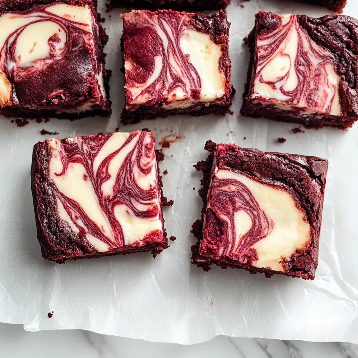 Jump to Recipe Print RecipeAs I rummaged through my pantry, seeking inspiration for a sweet treat, the vibrant red hue of my food coloring caught my eye, igniting a spark of creativity. This led me straight to these Red Velvet Cheesecake Brownies, the perfect blend of fudgy delight and creamy cheesecake swirl. Ideal for special occasions like Valentine’s Day, these enchanting desserts are quick to whip up in just 50 minutes, letting you indulge in homemade goodness without the fuss. Each decadent bite offers a luxurious taste and a texture that melts in your mouth, making them both a crowd-pleaser and a comfort food classic. Ready to impress your loved ones or simply treat yourself? Let’s dive into this irresistible recipe! Why are Red Velvet Cheesecake Brownies special? Irresistible Combination: The blend of fudgy brownies and luscious cheesecake creates a taste sensation that simply can’t be beaten. Quick and Easy: With just 50 minutes from start to finish, you can whip up this delightful dessert without breaking a sweat. Versatile Twists: Explore unique variations, like adding chocolate chips or using beet juice for natural coloring! Perfect for Celebrations: These brownies are a show-stopper for events like Valentine’s Day or any sweet occasion. Delightful Presentation: Their vibrant red hue and creamy swirl make a striking addition to your dessert table, sure to impress friends and family. Red Velvet Cheesecake Brownies Ingredients • To create these delectable treats, gather these essential ingredients for your Red Velvet Cheesecake Brownies! For the Brownie Batter Unsalted Butter (1/2 cup) – Adds richness and moisture; can be substituted with coconut oil for a dairy-free option. Granulated Sugar (1 cup) – Provides sweetness and helps achieve a crackly top; can be replaced with brown sugar for a deeper flavor. Eggs (2 large) – Binds the ingredients and adds structure; always use room temperature eggs for optimal results. Red Food Coloring (1 1/2 teaspoons) – Enhances visual appeal; for a natural alternative, consider using beet juice. Vanilla Extract (2 teaspoons) – Adds depth of flavor; vanilla bean paste or extra cocoa powder can further elevate taste. Salt (1/2 teaspoon) – Balances sweetness and enhances flavors; try using sea salt or kosher salt for a different twist. All-Purpose Flour (3/4 cup) – Provides structure to the brownies; substitute with a gluten-free flour blend for a gluten-free version. Dutch Process Cocoa Powder (3 tablespoons) – Contributes to the rich chocolate flavor; unsweetened cocoa powder can work too. For the Cheesecake Swirl Cream Cheese (8 ounces) – Creates that luscious cheesecake swirl; opt for Neufchâtel cheese for a lighter option. Egg (1 large) – Binds the cheesecake mixture; you can use the same substitution as above. Granulated Sugar (1/3 cup) – Sweetens the cream cheese filling; feel free to use another sweetener based on your preference. Prepare these ingredients, and let’s bake something magical with these Red Velvet Cheesecake Brownies! Step‑by‑Step Instructions for Red Velvet Cheesecake Brownies Step 1: Preheat & Prepare Begin by preheating your oven to 350°F (175°C). Line an 8×8 inch baking pan with parchment paper, ensuring the parchment hangs over the edges for easy removal later. This preparation step is crucial for ensuring your Red Velvet Cheesecake Brownies bake evenly and come out hassle-free. Step 2: Mix Brownie Base In a medium mixing bowl, whisk together 1/2 cup of melted unsalted butter and 1 cup of granulated sugar until the mixture becomes glossy and smooth. Make sure the butter is warm but not hot to avoid cooking the eggs later. This creates a rich foundation for your brownie batter. Step 3: Add Eggs & Color Next, add 2 large room temperature eggs, whisking until foamy and well combined. Stir in 2 teaspoons of vanilla extract and 1 1/2 teaspoons of red food coloring, mixing thoroughly. This not only enhances the flavor but also gives your Red Velvet Cheesecake Brownies that beautiful signature color. Step 4: Combine Dry Ingredients Gently fold in 3/4 cup of all-purpose flour, 3 tablespoons of Dutch process cocoa powder, and 1/2 teaspoon of salt. Mix until no dry streaks remain, ensuring the batter is rich and smooth. This step is important for achieving a fudgy texture in the brownies. Step 5: Pour Into Pan Pour the brownie batter into the prepared pan, smoothing it out evenly with a spatula. Make sure to reach the corners of the pan to create uniform edges. This will be the base layer for your delightful Red Velvet Cheesecake Brownies. Step 6: Prepare Cream Cheese Mixture In another bowl, combine 8 ounces of cream cheese, 1 large egg, and 1/3 cup of sugar. Beat until creamy and smooth, ensuring there are no lumps. This mixture will provide a luscious swirl that complements the brownie base perfectly. Step 7: Swirl the Cheesecake Using a spoon, drop dollops of the cheesecake mixture over the brownie batter, creating a marbled effect. Then, gently swirl the cheesecake into the brownie batter using a knife or toothpick, ensuring some of the brownie layer is still visible. This step adds visual appeal to your Red Velvet Cheesecake Brownies. Step 8: Bake Place the pan in the preheated oven and bake for 30-35 minutes. Check for doneness by inserting a knife into the center; it should come out clean with slight moist crumbs. Avoid overbaking to maintain that fudgy texture characteristic of these decadent brownies. Step 9: Cool & Slice Once baked, remove the pan from the oven and let it cool completely on a wire rack. After cooling, use the parchment overhang to lift the brownies out of the pan before slicing them into squares. This final step results in beautifully presented Red Velvet Cheesecake Brownies, ready to impress your guests or treat yourself! Expert Tips for Red Velvet Cheesecake Brownies Butter Temperature: Ensure the butter is melted but not hot. Hot butter can prematurely cook 