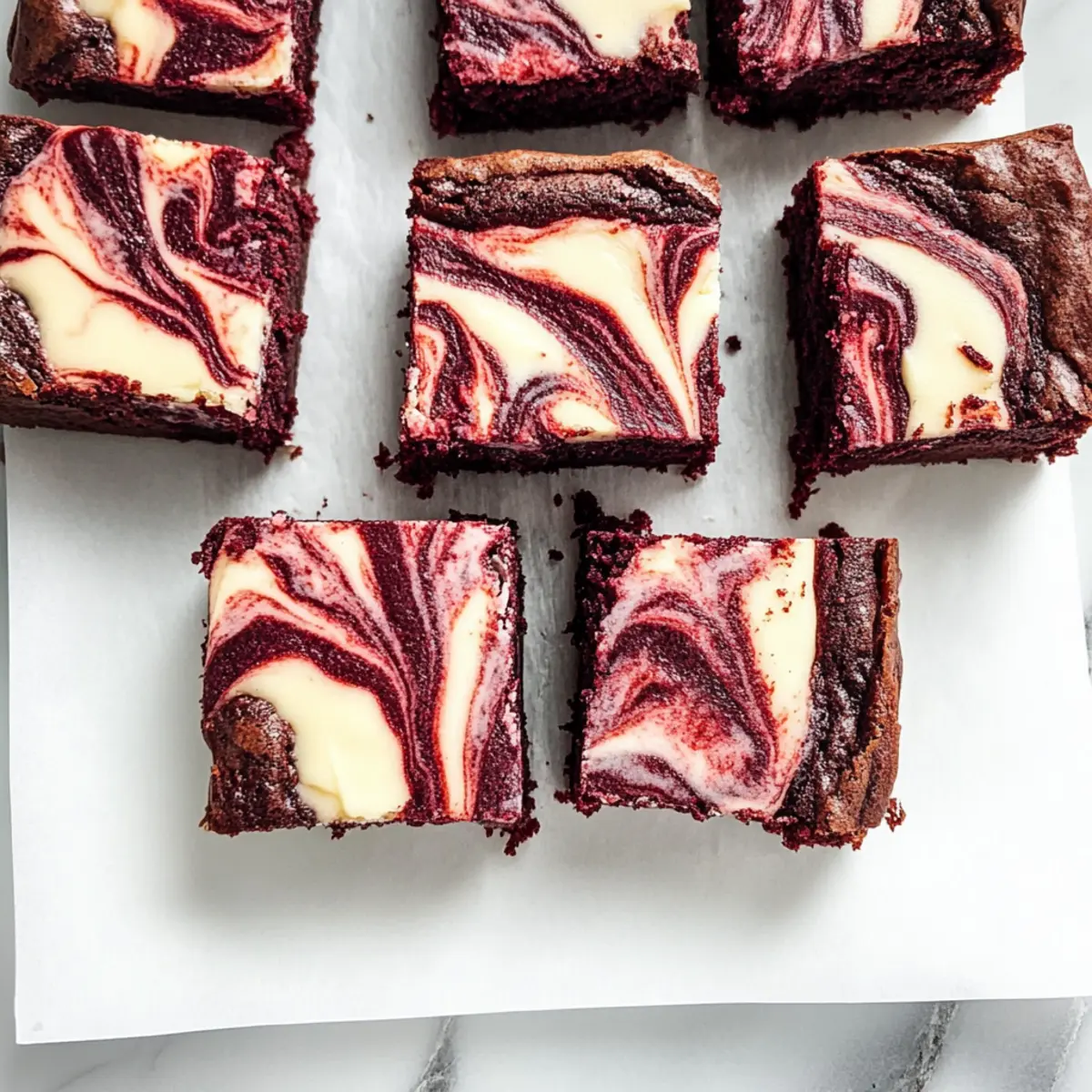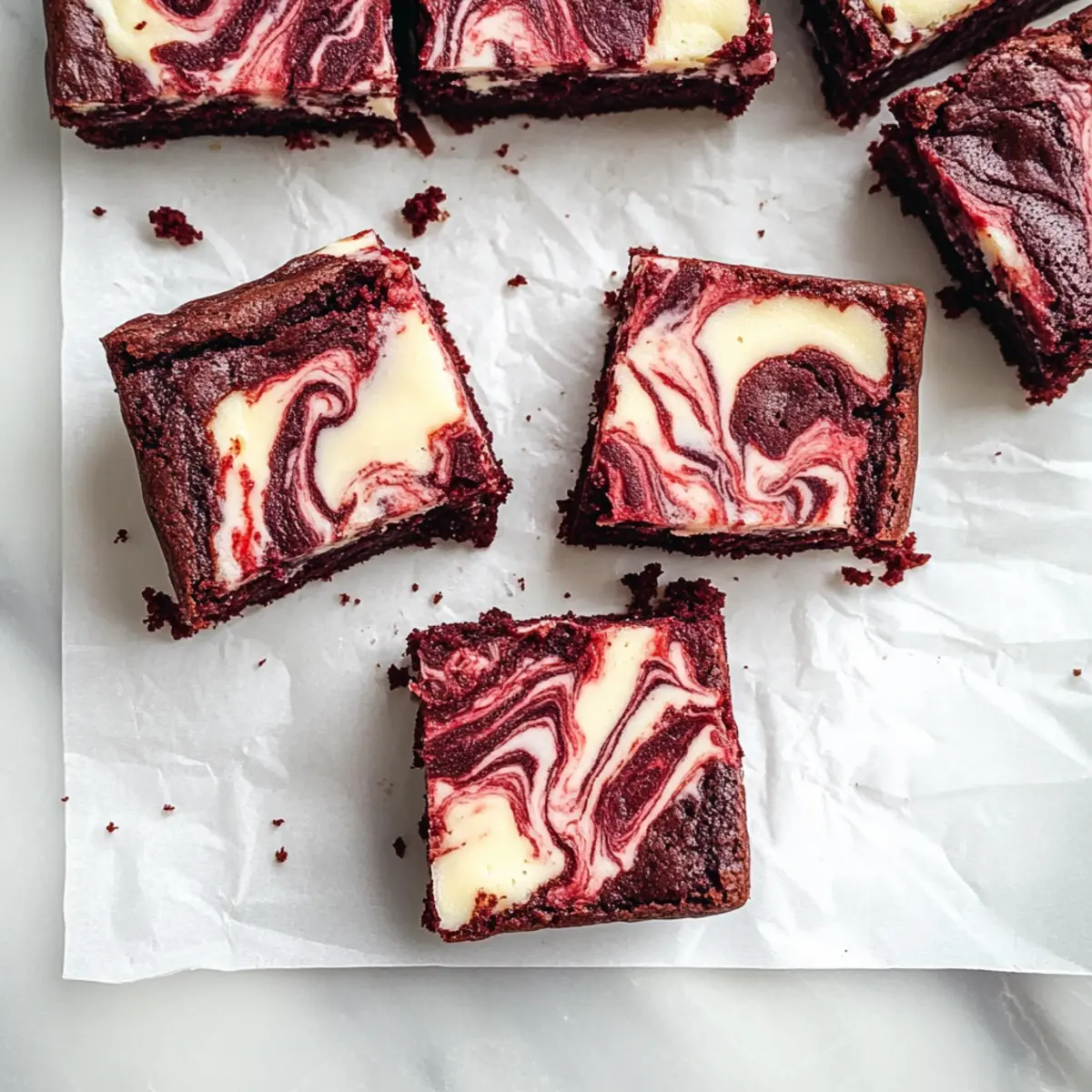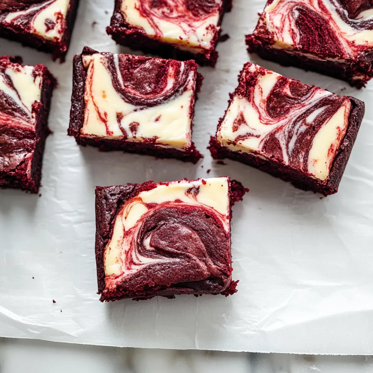 Jump to Recipe Print Recipe“Do you ever find yourself torn between the rich decadence of cheesecake and the comforting indulgence of brownies?” With Valentine’s Day just around the corner, these Fudgy Red Velvet Cheesecake Brownies are here to save the day with their dream-like combination. Imagine a dense, fudgy red velvet base swirled with a creamy cheesecake, creating a sweet haven for your taste buds. Not only are they a stunning centerpiece for any celebration, but their quick prep makes them perfect for busy schedules. Plus, this recipe makes use of simple ingredients, so you can whip up a luxurious treat without breaking a sweat! Who wouldn’t want to impress loved ones with such a delightful dessert? Ready to create a batch of these irresistible brownies and experience joy in every bite? Let’s dive into the recipe! Why Are These Brownies So Irresistible? Decadent, these Red Velvet Cheesecake Brownies combine the best of both worlds: rich red velvet and creamy cheesecake. Easy preparation means you can whip them up in no time, perfect for unexpected guests or special occasions. Visually stunning, their vibrant red color pairs beautifully with the white cheesecake swirl, making them a showstopper on any dessert table. Flavor explosion awaits with every bite, offering a delightful mix of tangy, sweet, and indulgent notes. Plus, they’re versatile enough to customize—try adding chocolate chips for an extra treat, or drizzle with cream cheese icing for a touch of elegance! Red Velvet Cheesecake Brownies Ingredients For the Brownie Base • Unsalted Butter – Provides richness and moisture; can use salted butter by slightly reducing added salt. • Granulated Sugar – Sweetens the brownies, enhancing moisture and texture; no substitutions needed unless for dietary restrictions. • Large Eggs – Binds ingredients and gives structure; room temperature is best for emulsifying. Flaxseed eggs work for a vegan option. • Red Food Coloring – Gives that iconic red hue; natural alternatives like beet juice can be used for coloring. • Vanilla Extract – Boosts flavor complexity; swap in almond extract for a different twist. • Salt – Balances sweetness and enhances flavor; can be omitted if using salted butter. • All-Purpose Flour – Provides structure; gluten-free all-purpose flour blend is a good alternative for gluten sensitivities. • Dutch Process Cocoa Powder – Adds deep chocolate flavor; may substitute with unsweetened cocoa powder, which can slightly affect taste. For the Cream Cheese Swirl • Cream Cheese – Creates a tangy richness that complements the brownie; Neufchâtel cheese is a lighter option. • Large Egg – Binds the cheesecake layer; flaxseed egg is a great vegan substitute. • Granulated Sugar – Sweetens the cheesecake layer; keep similar or use previously mentioned substitutions. Indulge in the fun of baking these delightful Red Velvet Cheesecake Brownies, and watch them fly off the dessert table! Step‑by‑Step Instructions for Red Velvet Cheesecake Brownies Step 1: Preheat and Prepare the Pan Begin by preheating your oven to 350°F (175°C). While the oven is heating up, take an 8 x 8-inch baking pan and line it with parchment paper, allowing some overhang for easy removal later. This preparation will ensure your Red Velvet Cheesecake Brownies bake evenly and release easily once cooled. Step 2: Combine Butter and Sugar In a medium bowl, melt ½ cup of unsalted butter and pour it in. Next, add in 1 cup of granulated sugar and whisk together until the mixture turns glossy and smooth. This step should take about 2 minutes. The glossy appearance indicates it’s well-blended and will contribute to the rich texture of the brownies. Step 3: Add Eggs and Flavorings Now, crack in two large eggs, whisking until the mixture becomes frothy. This usually takes around 1–2 minutes of vigorous whisking. Then, stir in 1 teaspoon of vanilla extract and 1 tablespoon of red food coloring. The vibrant red will establish the classic look of a red velvet dessert, enhancing your Red Velvet Cheesecake Brownies’ beauty. Step 4: Incorporate Dry Ingredients Next, sift in ¾ cup of all-purpose flour, 2 tablespoons of Dutch process cocoa powder, and a pinch of salt. Gently fold these dry ingredients into the wet mixture using a spatula until no streaks of flour remain. Avoid overmixing at this stage to keep the brownies fudgy and rich. Step 5: Spread the Brownie Batter Pour the brownie batter into your prepared pan, spreading it out evenly with a spatula. Aim for a smooth surface to ensure an even bake. Make sure to get all that luscious brownie mixture into the pan, enticing your nearby friends and family with its irresistible aroma as it bakes. Step 6: Prepare the Cheesecake Swirl In a separate bowl, beat together 8 ounces of cream cheese, ¼ cup of granulated sugar, and 1 large egg until smooth and creamy. This will take about 2-3 minutes. Gently mixing in these ingredients creates the cheesecake layer that will contrast beautifully with the brownie base. Step 7: Swirl the Cheesecake Mixture Spoon dollops of the cheesecake mixture over the brownie batter in the pan. Using a knife or a toothpick, gently swirl these dollops into the brownie batter to create a beautiful marbled effect. This delightful swirl is what makes the Red Velvet Cheesecake Brownies look and taste divine. Step 8: Bake to Perfection Place the pan in the preheated oven and bake for 30–35 minutes, or until a toothpick inserted in the center comes out clean or with just a few moist crumbs. This visual cue indicates that your brownies are perfectly done, achieving a delightful fudgy texture that’s sure to impress. Step 9: Cool and Slice Once baked, remove the pan from the oven and let it cool completely on a wire rack. This cooling period is essential; allowing the brownies to set will make slicing easier and prevent the cheesecake swirl from becoming gooey. Once cooled, use the parchm