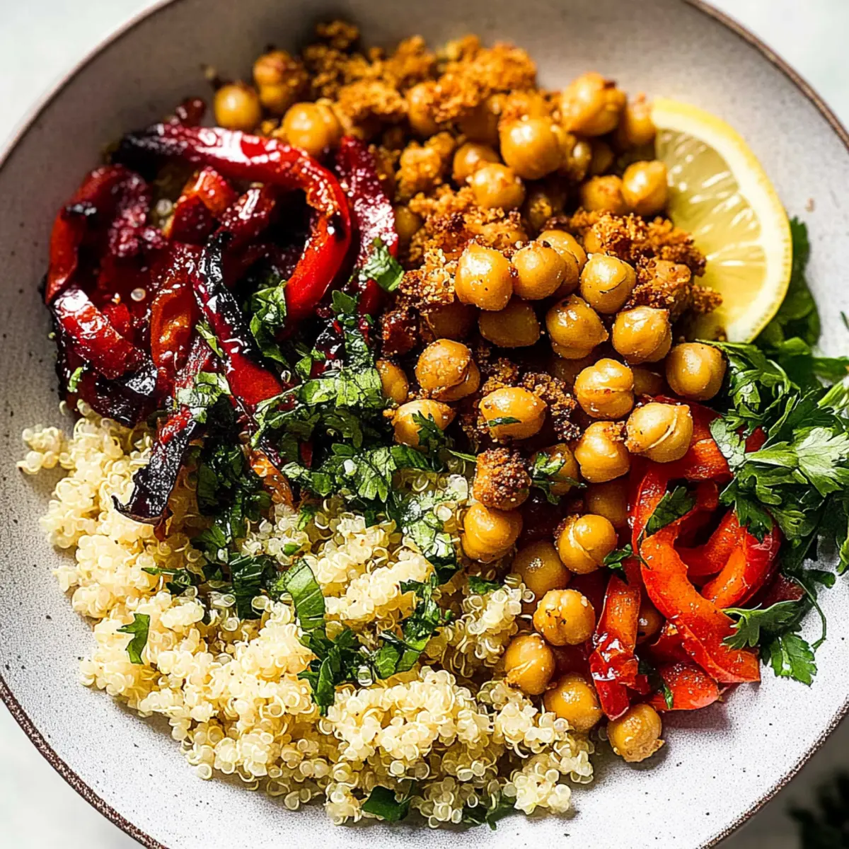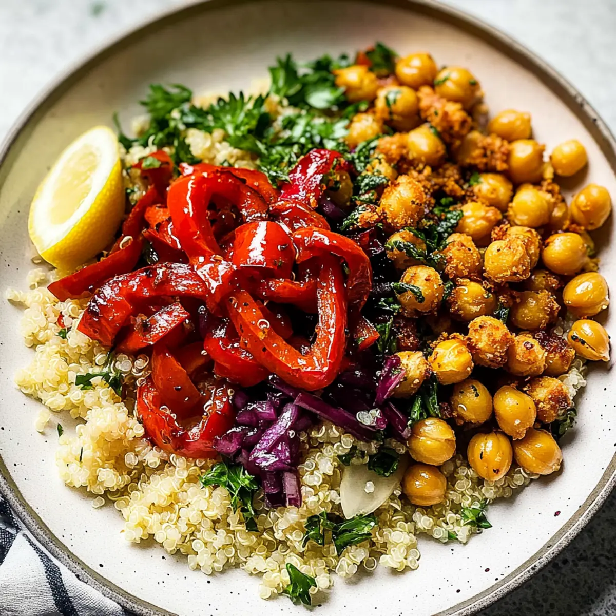 Jump to Recipe Print RecipeStepping into my kitchen, the aroma of roasted red peppers wraps around me like a comforting blanket, igniting my passion for vibrant, homemade meals. Today, I’m excited to share my High-Protein Roasted Red Pepper Salad with Crispy Chickpeas—an uplifting dish that’s not just visually stunning but also packed with over 25g of protein per serving! This recipe is a true delight, offering a perfect blend of crispy chickpeas and fluffy quinoa, all brought together with a zesty lemon vinaigrette. Healthy and satisfying, it’s perfect for meal prepping or enjoying as a warming main course on a chilly evening. Whether you’re a devoted vegetarian or simply seeking a nutritious upgrade to your meals, this salad is sure to impress. Curious how to turn simple ingredients into a show-stopping dish? Let’s dive in! Why is this salad a must-try? Satisfying Nutrition: Packed with over 25g of protein per serving, this salad is a great choice for anyone focused on a high-protein diet while being deliciously filling. Effortless Prep: The straightforward preparation means you’ll spend less time in the kitchen and more time enjoying your meal. Vibrant & Flavorful: A perfect blend of textures awaits you—crunchy chickpeas, tender roasted peppers, and fluffy quinoa create a delightful eating experience. Meal Prep Winner: Ideal for making ahead of time, it stays fresh for up to three days and is perfect for quick lunches or weeknight dinners. Versatile Ingredients: Feel free to mix in other flavors—like adding roasted sweet potatoes or a sprinkle of feta—to keep your meal exciting week after week! With its bright flavors and hearty nutrients, this Tuna Noodle Salad is a fantastic companion if you’re in the mood for something different! Roasted Red Pepper Salad Ingredients • Perfectly crafted for a protein-packed meal! For the Salad Quinoa – A nutritious base grain providing protein and fiber; rinse before cooking to avoid bitterness. Chickpeas – The main source of protein that adds delightful crunch; canned or cooked chickpeas are a convenient alternative. Red Peppers – Sweet and vibrant, adding color and flavor; yellow or orange peppers can work for a different taste. Onion – Enhances depth of flavor; you can substitute with shallots or green onions for a milder taste. For the Dressing Olive Oil – This healthy fat aids in roasting and flavor; opt for extra virgin for the best taste. Lemon Juice – Brightens the salad and balances flavors beautifully; adjust to your liking or use apple cider vinegar if needed. Honey – An optional sweetener for your vinaigrette; maple syrup makes a lovely vegan substitute. For Garnish Fresh Herbs (Dill & Parsley) – Adds a fresh touch and complexity; basil or cilantro can provide a unique herbal twist. Step‑by‑Step Instructions for Roasted Red Pepper Salad Step 1: Cook Quinoa Begin by rinsing 3/4 cup of quinoa under cold water to remove any bitterness. In a medium saucepan, combine the rinsed quinoa with 1.5 cups of water and a pinch of salt. Bring this mixture to a boil over medium-high heat, then reduce the heat to low, cover, and simmer for 10-12 minutes, until the water is fully absorbed. Once cooked, let it sit covered for an additional 10 minutes to achieve fluffy quinoa. Step 2: Prep Veggies While the quinoa is cooking, preheat your oven to 400°F (200°C). On a large baking sheet, arrange 2 chopped red peppers, 1 thinly sliced onion, and 1 can of drained chickpeas. Drizzle the veggies with 2 tablespoons of olive oil, sprinkle with salt, and toss everything together to ensure even coating. This will allow the flavors to meld beautifully during roasting. Step 3: Roast Place the baking sheet in the preheated oven and roast the vegetable mixture for 25-30 minutes. You’ll know it’s done when the red peppers are charred and the chickpeas are golden and crispy. Stir once halfway through to ensure even roasting. This step is crucial for enhancing the flavors and textures of your Roasted Red Pepper Salad. Step 4: Make Dressing While the veggies are roasting, prepare the dressing. In a small jar, combine 3 tablespoons of lemon juice, 4 tablespoons of olive oil, 1 tablespoon of honey (or maple syrup for a vegan option), and a pinch of salt and pepper. Secure the lid tightly and shake vigorously until all ingredients are well mixed and emulsified. This zesty dressing will brighten your salad beautifully. Step 5: Combine In a large bowl, combine the cooked quinoa, roasted veggies, and crispy chickpeas. Drizzle the prepared dressing over the mixture, tossing gently to ensure everything is evenly coated. This step ensures every bite of your Roasted Red Pepper Salad is bursting with flavor. Adjust seasoning to taste as desired. Step 6: Serve This vibrant Roasted Red Pepper Salad can be enjoyed warm or at room temperature. For added freshness and garnishing, top with freshly chopped dill and parsley. It’s perfect as a light main dish, side salad, or meal prep option for busy weeknights. What to Serve with Roasted Red Pepper Salad with Crispy Chickpeas Enjoying this brightly colored and hearty salad elevates your dining experience, inviting flavors and textures to dance on your palate. Creamy Avocado Toast: The smooth, buttery texture of ripe avocado complements the crunchy chickpeas perfectly, creating a delightful contrast. Grilled Vegetable Skewers: These smoky treats add a charred flavor that pairs well with the sweetness of roasted peppers, enhancing each bite. Chilled Cucumber Soup: This refreshing soup cools the palate while the salad provides warmth, beautifully balancing the meal. Lemon Herb Quinoa: Enhance the flavor profile with a zesty quinoa side, mirroring the salad’s ingredients and providing extra sustenance. Balsamic Glazed Asparagus: These tender stalks add an earthy bite that contrasts wonderfully with the crispiness of chickpeas and sweetness of peppers. Hummus Platter: An array of dips like humm