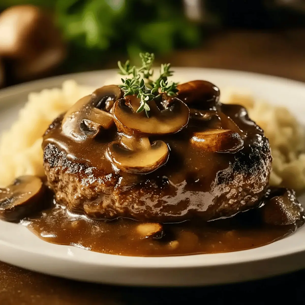 Jump to Recipe Print RecipeThe moment you walk into a kitchen filled with the scent of sizzling beef and hearty mushrooms, it feels like coming home. Today, I’m thrilled to share my recipe for Salisbury Steak with Mushroom Gravy—an ultimate comfort food that’s both budget-friendly and wonderfully customizable. Picture juicy beef patties enveloped in a rich, velvety gravy, making weeknight dinners not just a meal, but a cozy ritual. This dish comes together in under an hour, perfect for when you want something wholesome without a fuss. Plus, it’s a fantastic make-ahead option, ideal for those busy days ahead. Are you ready to whip up a comforting classic that will leave your family asking for seconds? Let’s dive in! Why is Salisbury Steak a Comfort Food? Nostalgic Warmth: This Salisbury Steak with Mushroom Gravy offers a heartfelt experience rooted in tradition, evoking cherished family dinners. Quick and Easy: In less than an hour, you can serve a comforting meal perfect for busy weeknights. Budget-Friendly: Using simple ingredients ensures that satisfying home cooking doesn’t break the bank. Customizable Options: Swap proteins or add veggies to make it your own. Serve over creamy mashed potatoes or buttered egg noodles, and you’ve got a dish that’s sure to please everyone at the table! Salisbury Steak with Mushroom Gravy Ingredients This recipe features simple, wholesome ingredients that deliver comfort without breaking the bank. For the Patties • Ground Beef – The star of the dish, providing essential protein and a satisfying bite. Ground turkey or chicken can be used for a leaner take. • Breadcrumbs – Helps bind the patties while adding a delightful texture; can substitute crushed saltines or oats for a gluten-free option. • Worcestershire Sauce – A splash of umami that elevates the flavors; if needed, soy sauce mixed with vinegar can work in a pinch. • Onion – Adds sweetness and aroma, tying all the flavors together. For the Gravy • Mushrooms – The heart of the sauce, bringing an earthy depth; cremini or baby bella mushrooms are recommended for extra flavor. • Butter – Provides richness and helps sauté the mushrooms; olive oil or plant-based butter can replace it for a dairy-free alternative. • All-Purpose Flour – Used to thicken the gravy; cornstarch or a gluten-free flour blend can serve as substitutes. • Beef Broth – The liquid gold that shapes the gravy’s consistency; you can also use vegetable broth for a lighter flavor. With these ingredients, you’re all set to prepare a dish that embodies the very essence of home-cooked comfort—Salisbury Steak with Mushroom Gravy! Step‑by‑Step Instructions for Salisbury Steak with Mushroom Gravy Step 1: Prepare the Patties In a mixing bowl, combine ground beef with breadcrumbs, Worcestershire sauce, and a pinch of salt and pepper. Use your hands to gently mix the ingredients until just combined, then form the mixture into oval patties about ½-inch thick. Set the patties aside on a plate while you heat up the skillet to get ready for cooking the Salisbury Steak with Mushroom Gravy. Step 2: Cook the Patties Heat a large skillet over medium heat and add a tablespoon of butter. Once the butter melts and begins to bubble, carefully place the patties in the skillet, ensuring they are not crowded. Sear the patties for about 5 minutes on each side until they are nicely browned and have an internal temperature of 160°F. Once cooked, transfer them to a plate and cover loosely with foil to keep warm. Step 3: Make the Gravy In the same skillet with the remaining drippings, add sliced onions and mushrooms. Sauté for about 5-6 minutes until the mushrooms are tender and the onions are golden brown; this will add depth to your mushroom gravy. Stir occasionally and enjoy the rich aroma wafting through your kitchen as the mushrooms release their moisture and flavor. Step 4: Thicken the Gravy Sprinkle all-purpose flour over the sautéed vegetables in the skillet, stirring continuously to coat them evenly. Cook the flour mixture for about 1 minute to remove the raw taste, then gradually whisk in beef broth, making sure to break up any lumps. Continue cooking and whisking until the gravy thickens, which should take about 2-3 minutes. Step 5: Combine and Simmer Carefully return the browned patties to the skillet, nestling them into the mushroom gravy. Cover the skillet with a lid and reduce the heat to low. Let the Salisbury Steak simmer for about 10 minutes, allowing the flavors to meld together beautifully while the patties heat through. Step 6: Serve Up Once done, carefully remove the lid and give the gravy a gentle stir to ensure even coating. Serve the Salisbury Steak with Mushroom Gravy over a bed of creamy mashed potatoes or buttered egg noodles for a true comfort food experience. Don’t forget to garnish with freshly cracked black pepper for a finishing touch! Salisbury Steak with Mushroom Gravy Variations Feel free to let your creativity shine and make this Salisbury Steak with Mushroom Gravy truly yours! Alternate Proteins: Swap ground beef for ground turkey or chicken for lighter options that don’t skimp on flavor. It’s a great way to enjoy a healthy twist while still indulging in comfort. Gluten-Free: Use crushed gluten-free crackers or oats in place of traditional breadcrumbs to accommodate dietary needs without sacrificing taste. It’ll keep the patties moist and delightful. Veggie Boost: Incorporate grated zucchini or carrots into the patty mixture for added nutrition. The veggies blend seamlessly and enhance the dish without changing the comforting flavor profile. Herb Infusion: Add fresh herbs like thyme, oregano, or parsley to your beef mixture for an aromatic depth. Pairing these herbs with sautéed mushrooms gives the gravy an irresistible flavor lift. Spicy Kick: Want some heat? Mix in a pinch of red pepper flakes or a dash of hot sauce in the gravy for a warming kick. This twi