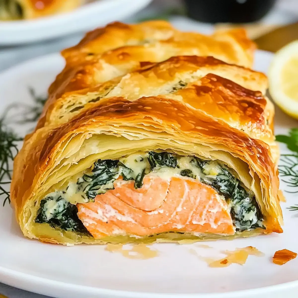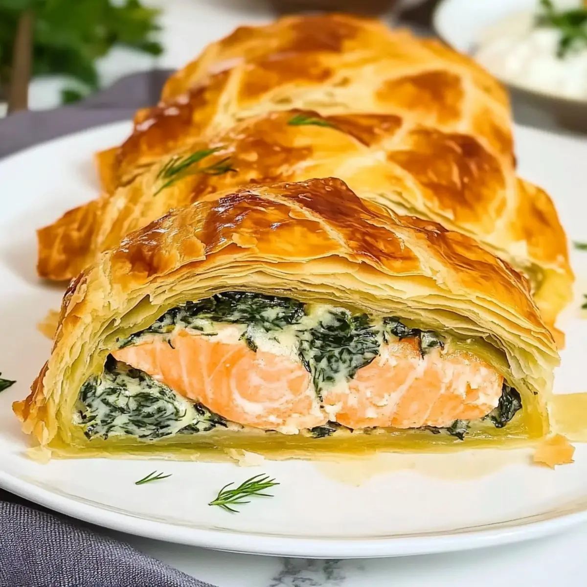 Savory Salmon Wellington with Creamy Spinach Delight