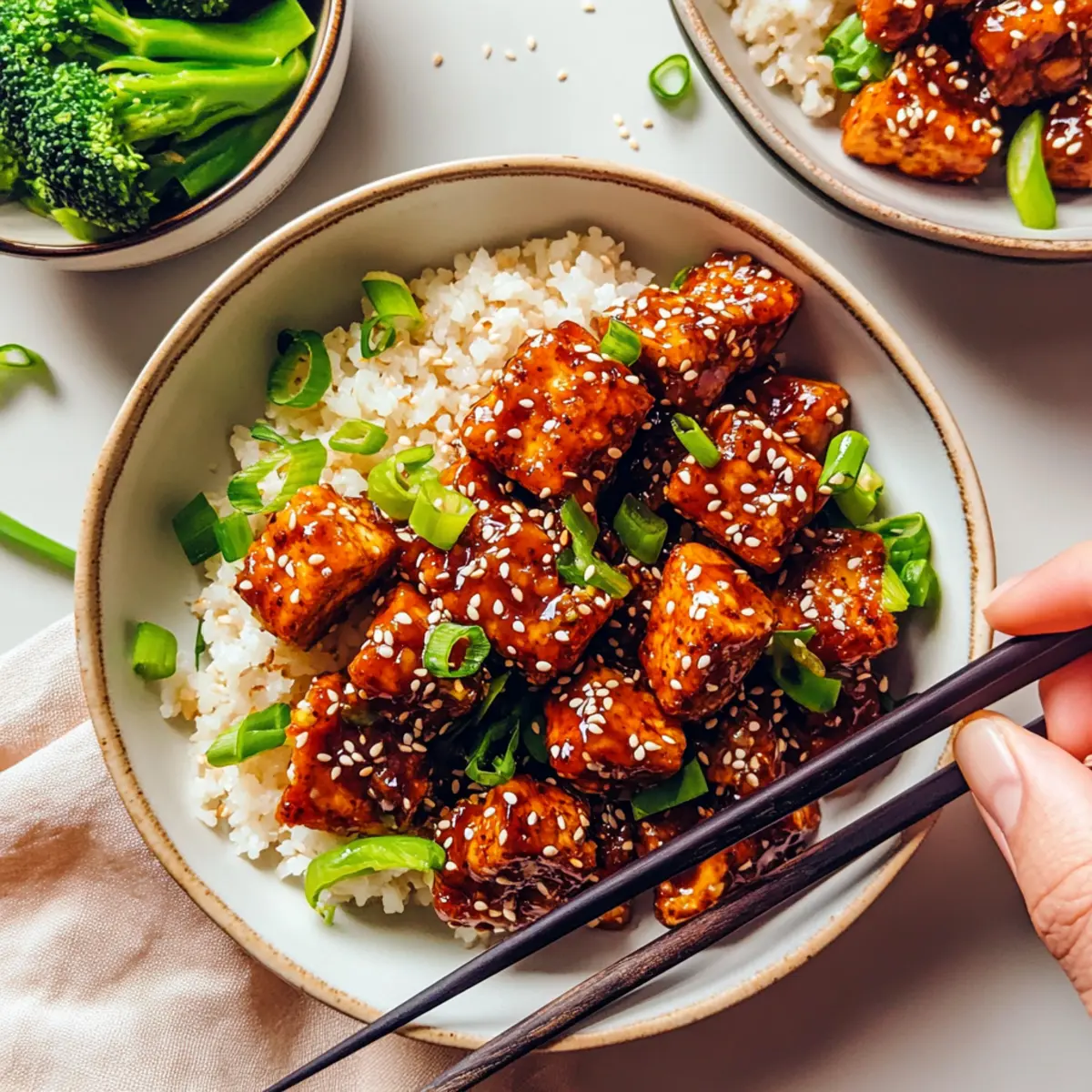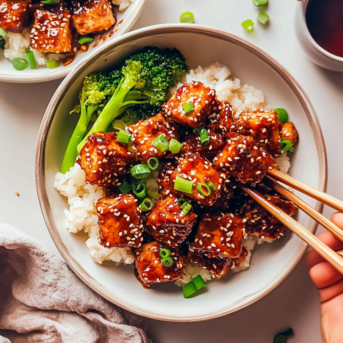 Jump to Recipe Print RecipeWith my oven preheating and ingredients laid out, the anticipation starts to build as I begin whipping up a meal that feels almost magical. Today, I’m sharing my quick and easy Spicy Garlicky Sesame Tofu, a vibrant dish that brings together sweet and spicy flavors with a delightful garlic kick. Jam-packed with plant-based goodness, this vegan and gluten-free recipe can be on your table in just 30 minutes, making it a perfect solution for those hectic evenings. Not only is it a healthier alternative to takeout, but it also serves as a delicious canvas for any side you choose to pair it with. Ready to transform your weeknight routine with this flavorful dish? Let’s dive in and elevate your dinner game! Why is Sesame Tofu a Game Changer? Quick and Easy: This recipe takes just 30 minutes, ideal for busy weeknights when you need something delicious without the fuss. Vibrant Flavor: Each bite bursts with a perfect blend of sweetness and spice, perfectly balanced by the aromatic garlic—your taste buds will thank you! Healthy Twist: Made with wholesome ingredients, this dish is both vegan and gluten-free, inviting everyone to enjoy a nutritious meal. Versatile Serving Options: Pair it with flavorful sides like cauliflower rice or steamed veggies, ensuring you never get bored with your dinner choices! Crowd-Pleasing Appeal: Whether you’re cooking for yourself or hosting friends, this Spicy Garlicky Sesame Tofu is a guaranteed hit that’s sure to impress. Sesame Tofu Ingredients For the Tofu Tofu – Use super firm high-protein tofu for the best texture; substitute with extra firm tofu if needed. Olive or Avocado Oil – This oil adds richness and helps achieve a crispy crust while baking. Sea Salt – Essential for enhancing the overall flavor of the sesame tofu. For the Sauce Maple Syrup – Provides natural sweetness and promotes caramelization; you can use honey if you’re not strictly vegan. Tamari or Soy Sauce – Adds that signature umami flavor for a savory kick; opt for gluten-free tamari as a substitution. Rice Vinegar – Balances the sweetness with a touch of acidity, rounding out the flavors beautifully. Toasted Sesame Oil – Delivers a rich, nutty flavor essential for authentic sesame tofu. Red Pepper Flakes – These little gems add just the right amount of heat; adjust based on your spice preference. Garlic (grated or pressed) – Infuses the sauce with a robust garlic aroma that’s hard to resist one taste. For Thickening and Texture Cornstarch – Thickens the sauce to perfection; arrowroot starch works as a great substitution for a lighter option. Water – Used to create a slurry with cornstarch for that ideal sauce consistency. Optional Garnishes/Servings Sesame Seeds – Garnish for a delightful crunch and added nutty flavor enhancing the sesame tofu experience. Thinly sliced green onions – Freshness is key; they make a lovely finishing touch. Brown, white, or cauliflower rice – Perfect for absorbing the flavorful sauce and completing your meal. Steamed broccoli – A fantastic veggie side that adds color and nutrition to your plate. This flavorful Sesame Tofu truly transforms weeknight dinners into something memorable! Step‑by‑Step Instructions for Spicy Garlicky Sesame Tofu Step 1: Prepare Sides Begin by preparing any sides you’d like to serve with your Spicy Garlicky Sesame Tofu. If using rice or steamed vegetables, start cooking them on the stovetop or in the rice cooker. This way, everything will be ready around the same time, maximizing your efficiency. Step 2: Bake Tofu Preheat your oven to 425°F (218°C). While the oven heats, crumble super firm tofu into bite-sized pieces and arrange them in a single layer on a parchment-lined baking sheet. Drizzle with olive or avocado oil and sprinkle sea salt, tossing gently to coat. Bake for 20-30 minutes, flipping halfway, until the tofu is golden and crispy. Step 3: Make Sauce In a medium saucepan, combine maple syrup, tamari, rice vinegar, toasted sesame oil, red pepper flakes, and grated garlic. Heat the mixture over medium heat, allowing it to come to a gentle simmer. Stir occasionally and keep an eye on the sauce as the aromas fill your kitchen, about 5 minutes. Step 4: Thicken Sauce While the sauce is simmering, mix cornstarch with water in a small bowl to create a slurry. Once the sauce is bubbling, slowly pour the slurry into the saucepan, stirring continuously. Cook for an additional 2-3 minutes, or until the sauce thickens to a delightful sticky consistency. Step 5: Combine Tofu and Sauce Remove the baked tofu from the oven and add it directly into the thickened sauce. Gently fold the tofu to fully coat each piece in the flavorful sauce, ensuring no corner is left untouched. The tofu should look shiny and appetizing, revealing a perfect glaze. Step 6: Serve Warm To finish, plate your Spicy Garlicky Sesame Tofu alongside your prepared rice and steamed vegetables. Garnish with a sprinkle of sesame seeds and thinly sliced green onions for an attractive presentation. Enjoy the dish warm, allowing all the flavors to shine through as you dig into this delicious meal. What to Serve with Spicy Garlicky Sesame Tofu This delightful dish opens the door to a world of flavors, and pairing it thoughtfully can turn your meal into a true feast. Brown Rice: A nutty base that absorbs the savory sauce, making every bite harmonious and satisfying. Steamed Broccoli: Bright green florets add a fresh crunch while enhancing the nutritional profile of your meal. Pairing vibrant veggies with the rich flavors of sesame tofu creates a balanced plate. Cauliflower Rice: A light and healthy alternative to traditional rice, it offers a wonderful texture that complements the crispy tofu. Garden Salad: Crisp lettuce, diced cucumbers, and ripe tomatoes topped with a tangy vinaigrette refresh the palate and balance the dish’s rich flavors. Crispy Chickpeas: For extra crunch, toss roasted chickpeas with 
