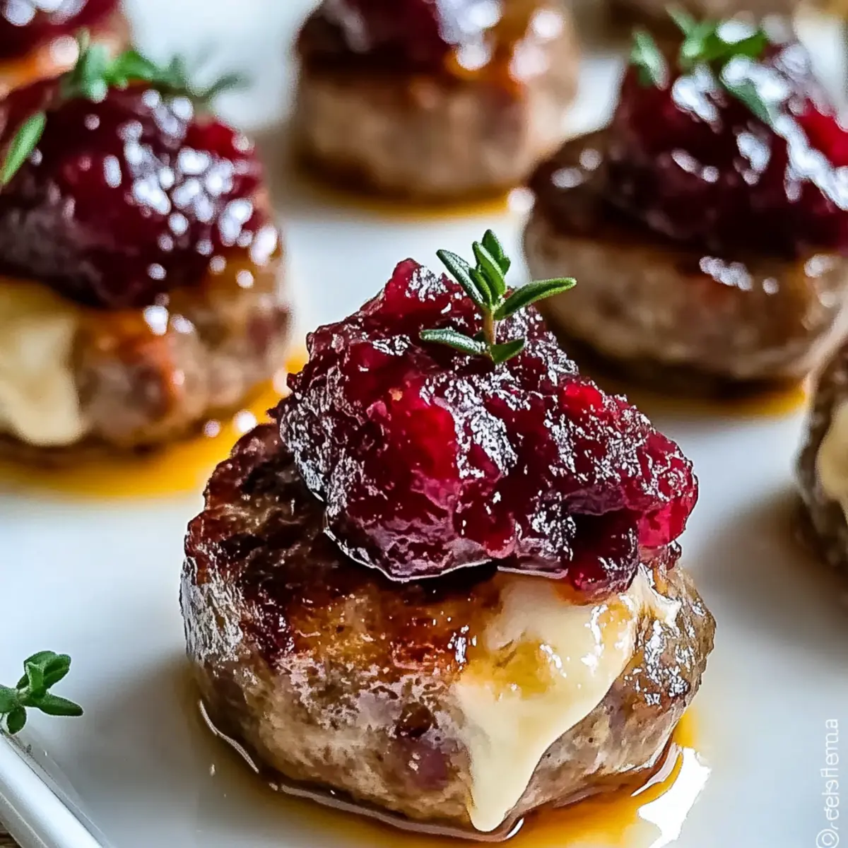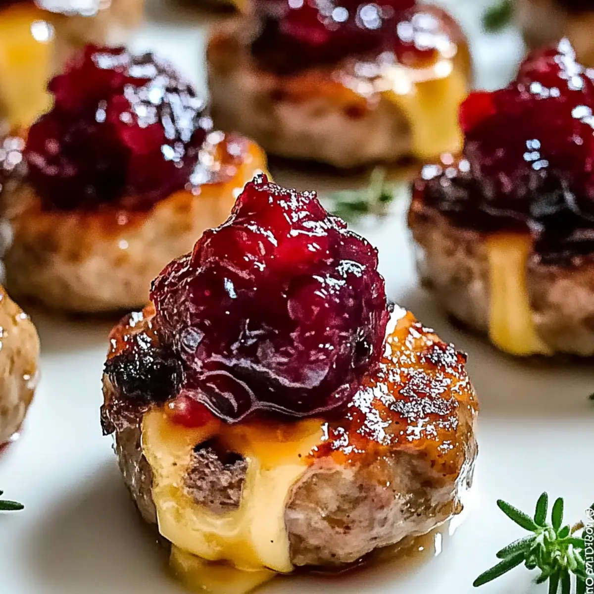 Jump to Recipe Print RecipeAs the aroma of smoked sausage wafts through the air, it’s hard not to feel festive! These Sheet Pan Smoked Sausage Cranberry Bites are an effortless way to elevate your holiday gatherings with flavor-infused bites that blend savory and sweet in one delicious mouthful. With minimal prep time and versatile ingredients, they come together quickly, making them a perfect go-to appetizer for those bustling nights filled with cheer and good company. Plus, they’re a make-ahead marvel, allowing you to spend more time laughing with friends and less time in the kitchen. Are you ready to tantalize your taste buds with this simple yet crowd-pleasing dish? Let’s dive into how to make them! Why are these bites a must-try? Irresistible Flavor Fusion: The combination of smoky sausage and sweet cranberry sauce creates an explosion of taste that wows every palate. Effortless Preparation: With simple steps, you’ll have a stunning appetizer ready in no time, perfect for busy holiday gatherings. Make-Ahead Magic: Preparing these bites ahead of time means less stress when entertaining, allowing you to enjoy the festivities. Versatile Ingredients: Feel free to customize with your favorite sausages or cheeses—think Maple Glazed Bites or even a hint of spice with smoked gouda! Crowd-Pleasing Appeal: Whether it’s a festive party or a casual get-together, these bites are sure to be the hit of the evening. Sheet Pan Smoked Sausage Cranberry Bites Ingredients • Get ready to create these delightful bites that everyone will love! For the Bites • Smoked Sausage – Provides savory goodness; can substitute with turkey sausage for a lighter option. • Whole Berry Cranberry Sauce – Adds essential sweetness and tartness; whole berry recommended for texture. • White Cheddar Cheese – Offers creamy sharpness that melts beautifully; Monterey Jack is a suitable substitute. • Olive Oil – Used for browning the sausage; can be replaced with melted butter for a richer flavor. • Fresh Thyme (optional) – Adds aromatic herbal notes; can be replaced with rosemary or omitted. • Skewers or Toothpicks – Necessary for serving and presentation. Step‑by‑Step Instructions for Sheet Pan Smoked Sausage Cranberry Bites Step 1: Preheat and Prepare the Pan Begin by preheating your oven to 400°F (200°C). While the oven heats, line a large sheet pan with parchment paper to prevent sticking and make cleanup easier. This step ensures that when you’re ready to bake your Sheet Pan Smoked Sausage Cranberry Bites, the pan is ready to go for optimal cooking. Step 2: Slice and Season the Sausage Slice the smoked sausage into uniform ½-inch rounds, which helps them cook evenly. In a mixing bowl, toss the sausage slices with a drizzle of olive oil and any optional fresh thyme. This will not only enhance the flavor but also promote browning during baking, creating a beautifully crispy texture. Step 3: Arrange on the Sheet Pan Transfer the seasoned sausage rounds to the prepared sheet pan, arranging them in a single layer for even cooking. Top each sausage slice with a cube of white cheddar cheese, ensuring it’s balanced on the sausage. Finally, add a spoonful of whole berry cranberry sauce over the cheese, layering the flavors that make the Sheet Pan Smoked Sausage Cranberry Bites so irresistible. Step 4: Bake to Perfection Place the sheet pan in the preheated oven and bake for 12-15 minutes. Keep a close eye on them; the bites are ready when the cheese is melted and bubbly, and the sausage edges start to turn a golden, crispy brown. This step captivates the senses with its delightful aroma and tempting visuals. Step 5: Cool and Serve Once baked, pull the sheet pan from the oven and allow the bites to cool for a few minutes. This will help set the cheese and make them easier to handle. Serve your decadent Sheet Pan Smoked Sausage Cranberry Bites warm, using skewers or toothpicks for easy enjoyment at your holiday gatherings. Expert Tips for Sheet Pan Smoked Sausage Cranberry Bites • Uniform Slicing: Ensure sausage is sliced evenly to achieve perfectly cooked bites. Irregular sizes can lead to uneven cooking results. • Watch the Oven: Monitor your baking closely; check around 10 minutes if your oven runs hot to prevent over-browning. • Prep Ahead: Assemble the bites earlier in the day and refrigerate before baking. This lets you enjoy hosting without last-minute kitchen stress. • Quality Cheese: Use high-quality cheese for the best melting. Freshly grated cheese melts smoother than pre-shredded varieties that contain anti-caking agents. • Consider Swaps: Feel free to try different sausage or cheese options, making these Sheet Pan Smoked Sausage Cranberry Bites your own! Try adding a spicy cheese for a kick. Sheet Pan Smoked Sausage Cranberry Bites Variations Feel free to get creative with these delightful bites and tailor them to your taste buds! Turkey Sausage: Swap out smoked sausage for turkey sausage for a lighter, healthier option that still packs flavor. Different Cheeses: Experiment with cheeses like gouda for a nutty twist or pepper jack for an extra kick of spice. Both melt beautifully and add depth to each bite. Herb Alternatives: If thyme isn’t your favorite, try fresh rosemary or omitted altogether for a simpler flavor profile. Discover the nuances herbs can add to your dish! Sweet Chili Sauce: Replace cranberry sauce with sweet chili sauce for a delightful sweet and spicy flavor. This twist transforms the bites into a zesty sensation that excites the palate. Add Veggies: Toss in some bell peppers or onions for added texture and flavor. Roasting them along with the sausage creates a beautifully colorful platter. Pineapple Chunks: Introduce pineapple chunks into the mix for a tropical flair that enhances the sweet and savory profile of the dish. Spicy Kick: Add a pinch of red pepper flakes or diced jalapeños to heat things up. This fiery twist provides a surprising 