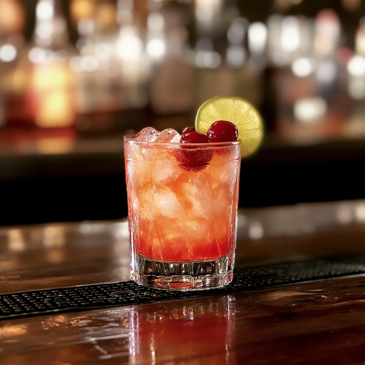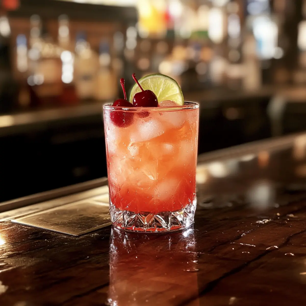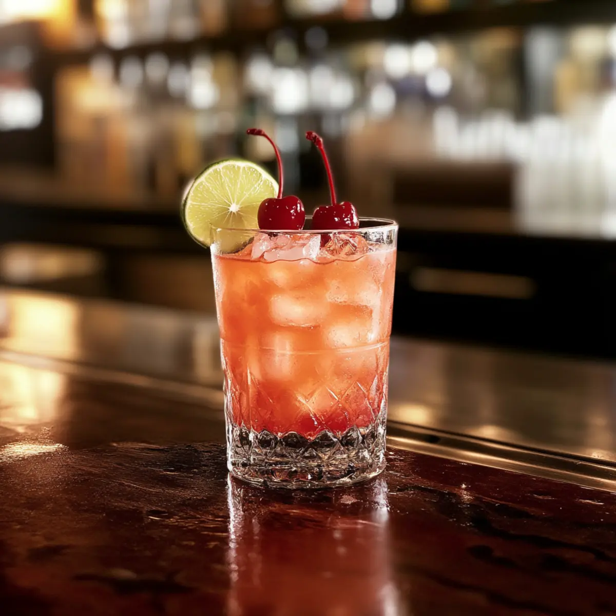 6. Garnish with maraschino cherries and a slice of lime.