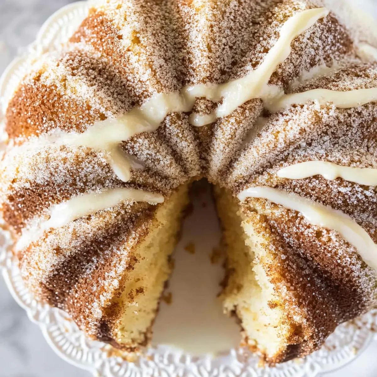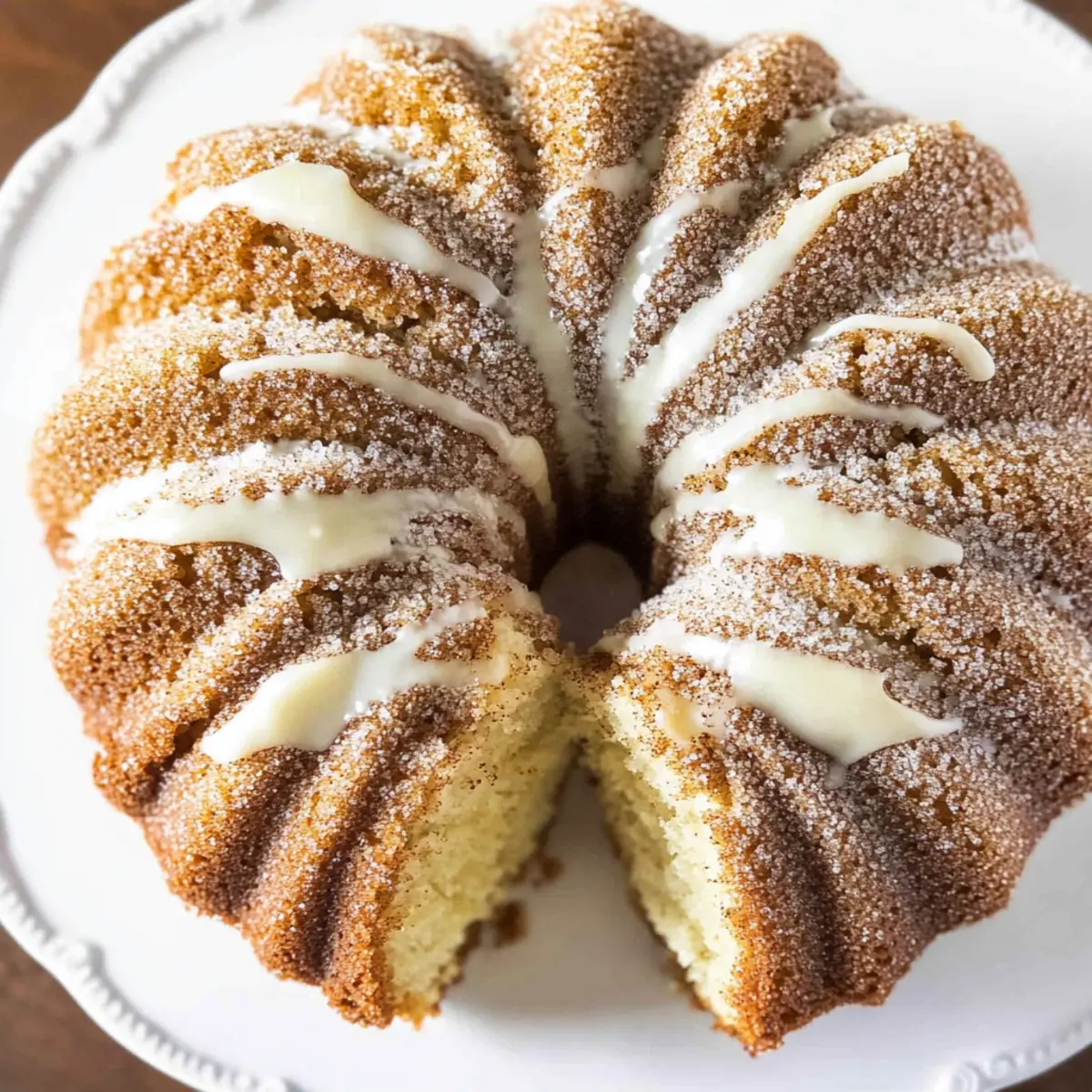 Jump to Recipe Print RecipeAs the sweet scent of cinnamon swirls through my kitchen, I can’t help but feel a sense of nostalgia flooding back. This Easy Snickerdoodle Bundt Cake brings together the warm, comforting flavors of a classic cookie but in an inviting cake form. Using just a simple cake mix as its base, this recipe boasts a delightful cinnamon-sugar swirl and a creamy glaze that will have your loved ones coming back for seconds. Perfect for holiday gatherings or a cozy afternoon treat, this dessert is not only easy to whip up, but also guarantees to be a crowd-pleaser. Are you ready to discover the joy of elevating your dessert game with this Snickerdoodle cake recipe? Let’s dive in! Why Choose This Snickerdoodle Cake Recipe? Nostalgic Flavors: The blend of cinnamon and sugar in this cake evokes memories of classic Snickerdoodle cookies, making each bite a delightful trip down memory lane. Effortless Ease: With just a cake mix as the base, this recipe allows both novice and seasoned bakers to create a stunning dessert without the fuss. Versatile Delight: Perfect for any occasion, whether it’s a holiday feast or a cozy coffee break, this cake is adaptable to suit your personal taste. Try adding a drizzle or dollop of cream cheese glaze for heavenly flavor, or serve it fresh alongside a warm cup of coffee. Time-Saving Solution: An easy bake that combines flavor and speed, allowing you to spend less time in the kitchen and more with loved ones. Guaranteed Crowd-Pleaser: Its appealing aroma and stunning presentation will impress guests, proving this cake to be the star of any gathering. You may also want to explore more incredible variations like Fried Strawberry Cheesecake or a classic Butterfinger Cheesecake Sweet for additional sweet treats! Snickerdoodle Cake Recipe Ingredients For the Cake Vanilla Cake Mix – Use a 15.25-ounce box for a stable and flavorful base. Eggs – Provides moisture and binding; consider flax eggs for a vegan alternative. Vegetable Oil – Adds richness; feel free to substitute with melted coconut oil for a lighter texture. Buttermilk – Enhances tenderness; plain yogurt or a milk-vinegar mix works as a quick homemade substitute. Vanilla Extract – Boosts the flavor; opt for pure vanilla extract for the best taste. For the Cinnamon Swirl Brown Sugar – Adds sweetness and depth; white sugar can be used but lacks complexity. All-Purpose Flour – Gives structure to the cinnamon mixture; a gluten-free blend works too. Cinnamon – Key flavor for that classic Snickerdoodle taste; always use fresh ground for the best aroma. Butter (Melted) – Binds the swirl ingredients together; margarine can be a dairy-free option. For the Glaze Cream Cheese (Softened) – Forms the base of your creamy glaze; vegan cream cheese is a perfect dairy-free alternative. Powdered Sugar – Sweetens and thickens the glaze; you can substitute with a sugar alternative if needed. Granulated/Sanding Sugar – For the topping; swap for turbinado sugar for a delightful crunch. Get ready to impress with this Snickerdoodle cake recipe that’s both easy and delicious! Step‑by‑Step Instructions for Snickerdoodle Cake Recipe Step 1: Preheat the Oven Begin by preheating your oven to 350°F (175°C). This step ensures that your Snickerdoodle Bundt Cake bakes evenly and rises beautifully. While the oven warms up, gather your ingredients and prepare your Bundt pan by greasing it thoroughly with nonstick spray to prevent any sticking later on. Step 2: Mix the Cake Batter In a large mixing bowl, combine the vanilla cake mix, eggs, vegetable oil, buttermilk, and vanilla extract. Using a hand mixer or a whisk, beat these ingredients together until the batter is smooth and thick, which should take about 2-3 minutes. The mixture should be well-combined and free of lumps. Step 3: Prepare the Cinnamon Swirl In a separate small bowl, mix together the brown sugar, all-purpose flour, and ground cinnamon. Then, pour in the melted butter and stir until everything is blended and crumbly. This cinnamon swirl mixture is crucial for giving your Snickerdoodle Bundt Cake its signature flavor and texture, so make sure it’s well combined. Step 4: Assemble the Cake Pour half of the prepared cake batter into the greased Bundt pan, smoothing it out evenly. Next, spoon half of the cinnamon swirl mixture on top of the batter; use a toothpick or knife to gently swirl it into the batter, creating a delightful marbled effect. Then, add the remaining cake batter and top with the rest of the cinnamon mixture, swirling once more. Step 5: Bake the Cake Carefully place the Bundt pan in the preheated oven and bake for 40-45 minutes. Check for doneness by inserting a toothpick into the center; it should come out clean or with a few moist crumbs attached. This will ensure your Snickerdoodle Bundt Cake is perfectly baked and moist. Step 6: Cool the Cake Once baked, remove the cake from the oven and let it cool in the pan for about 15 minutes. After cooling, carefully invert the Bundt pan onto a serving plate. Allow the cake to rest upside down for a few moments to gently release it from the pan, ensuring a beautiful presentation. Step 7: Prepare the Cream Cheese Glaze While your cake cools, prepare the creamy glaze by beating the softened cream cheese and melted butter together until smooth. Gradually mix in the powdered sugar and vanilla extract until the glaze reaches your desired consistency. If it’s too thick, feel free to add a splash of milk for a silky texture. Step 8: Glaze the Cake Using a piping bag or a spoon, drizzle the cream cheese glaze generously over the cooled Snickerdoodle Bundt Cake. Make sure the glaze seeps into the crevices, enhancing the flavors. The warm cinnamon aroma and creamy glaze will surely captivate anyone nearby. Step 9: Add the Topping Finally, combine the granulated sugar and cinnamon in a small bowl. Sprinkle this mixture over the glazed cake while the glaze is still tacky, al