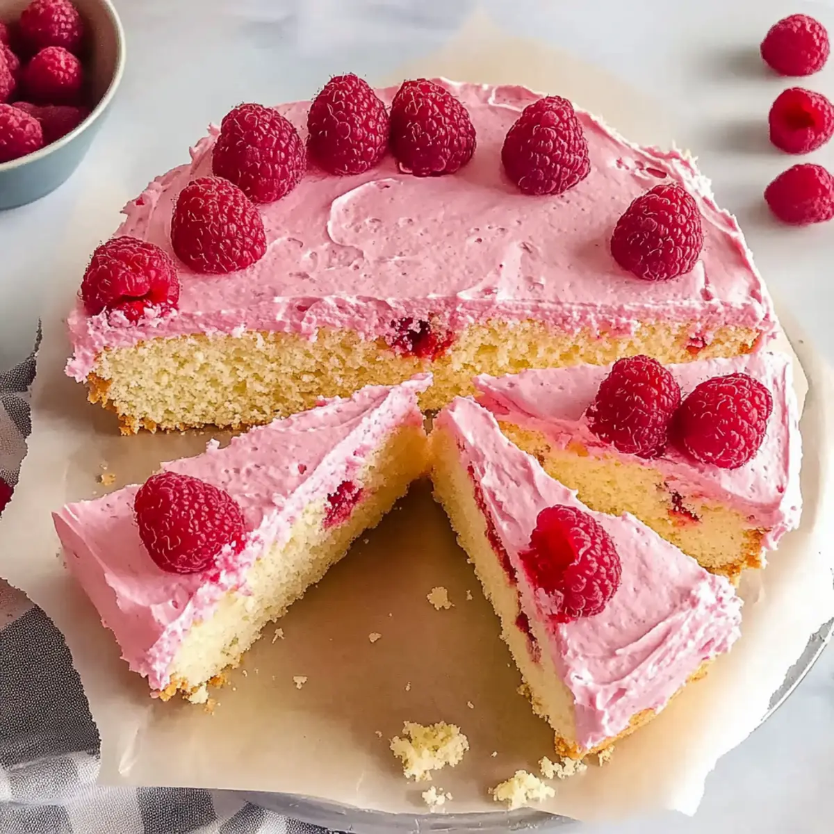 A delightful Soft Almond Raspberry Cake, gluten-free option, featuring a tender crumb and fluffy raspberry frosting.