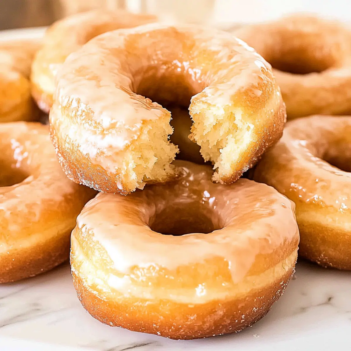 Jump to Recipe Print RecipeAs the oil shimmers and starts to bubble, I can’t help but feel a thrill of excitement—there’s something undeniably magical about homemade Sourdough Donuts. These golden brown delights make use of sourdough discard, transforming what once went to waste into a fluffy, irresistible breakfast treat. In just 45 minutes, you can whip up a batch that’s not only a fun twist on traditional donuts but also a fantastic way to reduce kitchen waste. Deep-fried to perfection and coated in a simple glaze, they bring comfort and satisfaction, perfect for a weekend brunch or a pick-me-up any time. So, are you ready to indulge in the joy of homemade donuts? Let’s dive into this delicious adventure! Why are Sourdough Donuts a must-try? Uniquely Delicious: These sourdough donuts offer a delightful twist on classic breakfast treats, with a fluffy texture and subtle tang that’s hard to resist. Easy to Make: With straightforward steps, this recipe is perfect for both beginners and seasoned bakers looking to elevate their brunch game. Waste Not, Want Not: Utilizing sourdough discard means you’re reducing food waste while creating something scrumptious! Versatile Flavors: Feel free to customize with spices or fillings, making each batch uniquely yours. Crowd-Pleasing Treat: Serve them warm, and watch as your family and friends rave about their irresistible taste. Perfect alongside coffee or iced tea for an extra special touch! Sourdough Donuts Ingredients • Get ready to create scrumptious treats from your kitchen! For the Donuts Whole Milk – Essential for hydration and activating the yeast; you can use almond milk for a lactose-free option. Granulated Sugar – Adds sweetness and helps activate the yeast; substituting with brown sugar will deepen the flavor. Active Dry Yeast – The key leavening agent for a light rise; instant yeast can be used directly without proofing. Sourdough Discard – This is a fantastic way to use leftover starter, adding flavor and moisture; make sure it’s at room temperature. Salted Butter – Provides richness and flavor; feel free to use unsalted butter and add a pinch of salt. Large Eggs – They contribute structure to your donuts; it’s best not to substitute these for consistency. Ground Nutmeg – Imparts warm, aromatic flavor; ground cinnamon can be swapped for a different spice experience. All-Purpose Flour – Forms the main structure of the donuts; bread flour yields a chewier texture, while gluten-free flour may require adjustments. Vegetable or Canola Oil – Used for frying the donuts; shortening can offer a different frying experience if preferred. For the Glaze Powdered Sugar – Adds sweetness to your glaze; other powdered sweeteners can serve as substitutes for dietary needs. Whole Milk (for glaze) – Combines with powdered sugar to create a smooth glaze; for a richer glaze, consider using heavy cream, or choose dairy-free milk for lactose concerns. Dive into making these fantastic sourdough donuts and enjoy a breakfast that combines comfort and creativity! Step‑by‑Step Instructions for Sourdough Donuts Step 1: Activate Yeast In a stand mixer, warm 1 cup of whole milk until it’s just above body temperature, around 110°F. Stir in 3 tablespoons of granulated sugar, then sprinkle 2 teaspoons of active dry yeast over the top. Allow it to foam for 5–10 minutes until bubbly, signifying the yeast is alive and ready to help your sourdough donuts rise beautifully. Step 2: Mix Ingredients Once the yeast is activated, add 1 cup of sourdough discard, 4 tablespoons of softened salted butter, and 2 large eggs to the mixer. Include ¼ teaspoon of ground nutmeg for that warm aroma. Mix on low speed until the ingredients are combined, and then increase to medium speed for about 2 minutes, creating a smooth batter with a lovely, rich flavor. Step 3: Form the Dough Gradually add 3 to 4 cups of all-purpose flour, mixing until a soft, slightly sticky dough forms. You’ll know it’s ready when the dough pulls away from the sides of the bowl but is still soft to the touch. If needed, add flour gradually until you achieve this consistency, ensuring your sourdough donuts will turn out tender and fluffy. Step 4: First Rise Transfer the dough to a greased bowl, covering it with a damp cloth or plastic wrap. Refrigerate the dough for at least 1 hour, or leave it overnight for deeper flavor development. You’ll know it’s ready when it has roughly doubled in size, creating the perfect base for your delightful sourdough donuts! Step 5: Shape the Donuts Lightly flour your work surface and roll out the dough to about ½-inch thickness. Use a donut cutter or round cutters to cut out donut shapes, placing them on a lined baking sheet. This step is crucial for achieving those classic sourdough donut shapes, so take your time for precision and fun! Step 6: Second Rise Cover the shaped donuts with a tea towel and allow them to rise in a warm spot for about 1 hour until they’ve puffed up nicely. They should appear fuller and feel airy to the touch. This second rise ensures your sourdough donuts will fluff up beautifully in the hot oil, giving them that light, airy texture. Step 7: Fry the Donuts In a deep pot, heat 3–4 cups of vegetable or canola oil to 375°F. Fry donuts in batches for about 1–2 minutes on each side, until they are golden brown and puffed. Make sure not to overcrowd the pot, as this could lower the oil temperature. You’ll love the tempting aroma wafting through your kitchen! Step 8: Glaze and Serve Once fried, remove the donuts and drain them on paper towels. Prepare a simple glaze by mixing 2 cups of powdered sugar with 2–4 tablespoons of whole milk until smooth. Dip the still-warm donuts into the glaze, allowing any excess to drip off before serving. Enjoy these homemade sourdough donuts while fresh for the best taste! What to Serve with Golden Brown Sourdough Donuts? Pair these delightful treats with the perfec