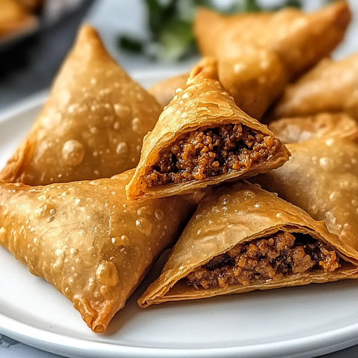 Jump to Recipe Print RecipeAs the aroma of warm spices fills the air, I’m reminded of gatherings that bring friends and family together, sharing delicious moments over crispy Spiced Meat Sambusas. These delightful treats, with their luscious filling and golden exterior, are the perfect way to transform any ordinary day into something special. Not only are they quick and easy to prepare, making them ideal for busy weeknights, but they also allow for customizable fillings, catering to both meat lovers and veggie enthusiasts alike. Whether served as an appetizer or a main dish, these sambusas are sure to become a crowd-pleaser. How will you fill yours today? Why are Sambusas a Must-Try? Crispy Layers: The delicious crunch of the outer shell contrasts perfectly with the tender, spiced filling inside. Customizable Fillings: Whether you’re craving meat or a vegetarian option, sambusas can be tailored to fit any dietary preference, making them friendly for everyone. Quick & Easy: Perfect for busy weeknights, these sambusas come together rapidly, allowing you to enjoy homemade goodness without the hassle. Crowd Favorite: Serve them at gatherings and watch them disappear! Their warm, inviting aroma and delightful taste will make everyone come back for seconds. Savory Sweetness: The option to incorporate ingredients like raisins or sweet spices offers a delightful surprise that elevates the overall flavor experience. Try pairing with Parmesan Chicken Meatloaves for a complete meal! Promising endless possibilities, your sambusas will become a versatile staple in your cooking repertoire! Spiced Meat Sambusas Ingredients For the Filling • Ground Beef or Lamb – Provides a rich, savory flavor and protein; feel free to substitute with lentils or mixed vegetables for a vegetarian option. • Onion – Adds sweetness and depth to the filling; shallots can be used for a milder taste. • Olive Oil – Essential for sautéing the filling, contributing to flavor and moisture. • Spices (Cumin, Coriander, Cinnamon, Turmeric) – Enhance the overall flavor profile; adjust quantities based on personal taste preferences. • Fresh Cilantro – Offers freshness and herbaceous notes; parsley or green onions can be great alternatives. • Garlic – Delivers pungency and aroma that elevates the filling. • Ginger – Provides warmth and spice to the dish, complementing the other flavors. • Peas – Optional for added texture and sweetness; can be replaced with corn or diced carrots if desired. • Raisins – Adds a hint of sweetness, creating a delightful contrast to the savory filling. For the Wrappers • Spring Roll Wrappers or Samosa Pastry – Simplifies the cooking process with pre-made options readily available for convenience. For Seasoning and Frying • Salt and Pepper – The standard seasoning duo to elevate the flavors of your filling. • Vegetable Oil – Necessary for frying the sambusas, ensuring a crispy, golden texture. Let’s get cooking! Your delicious Spiced Meat Sambusas await! Step‑by‑Step Instructions for Spiced Meat Sambusas Step 1: Sauté Filling Heat 2 tablespoons of olive oil in a large skillet over medium heat. Add 1 chopped onion and cook until translucent, about 5 minutes. Next, stir in minced garlic and ginger along with spices like cumin, coriander, cinnamon, and turmeric. Sauté until fragrant, approximately 1-2 minutes, allowing the delightful aroma to fill your kitchen. Step 2: Cook Meat Add 1 pound of ground beef or lamb to the skillet, breaking it apart with a spatula. Cook for about 7 minutes, stirring occasionally, until the meat is browned and fully cooked with no pink remaining. This rich and savory mixture is the essence of your Spiced Meat Sambusas, inviting everyone to the table. Step 3: Mix Ingredients Stir in optional peas, raisins, and a handful of chopped fresh cilantro, seasoned with salt and pepper to taste. Allow the filling to cool in the skillet for about 10 minutes, giving it time for the flavors to meld beautifully. The mixture should be aromatic and slightly moist, perfect for stuffing. Step 4: Prepare Wrappers While the filling cools, cut spring roll wrappers in half or thirds, depending on your desired size for sambusas. Keep the wrappers covered with a damp cloth to prevent them from drying out as you assemble your delightful bites. The wrappers will be your golden canvas for the savory filling. Step 5: Fill & Fold Spoon about 1-2 tablespoons of filling onto the center of each wrapper, folding it into a triangle shape. Seal the edges tightly by wetting them with a bit of water to avoid any filling leakage during frying. This thoughtful touch ensures that each Spiced Meat Sambusa remains intact and bursting with flavor. Step 6: Fry Sambusas In a deep pan, heat vegetable oil to 365°F (170°C). Carefully lower the sambusas into the hot oil in batches, ensuring they aren’t crowded. Fry for 3-4 minutes or until they reach a golden brown color, turning occasionally for even cooking. The crispy texture will entice everyone, bringing smiles all around. Step 7: Drain & Serve Once golden brown, remove the sambusas using a slotted spoon and let them drain on paper towels to absorb excess oil. Serve warm as a delightful snack or appetizer, pairing them with your favorite dipping sauces. Your Crispy Spiced Meat Sambusas are ready to impress friends and family with every delightful bite! Storage Tips for Spiced Meat Sambusas Airtight Container: Store cooked spiced meat sambusas in an airtight container in the fridge for up to 3 days to maintain their crispiness and flavor. Freezer Friendly: For longer storage, freeze uncooked sambusas for up to 3 months. Portion them in a single layer on a baking sheet before transferring to a freezer-safe bag. Frying from Frozen: When ready to enjoy, fry the frozen sambusas directly from the freezer for about 5-6 minutes until they’re golden brown and crispy. Reheating Tips: To reheat any leftover cooked sambusa
