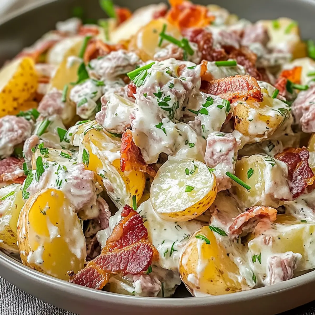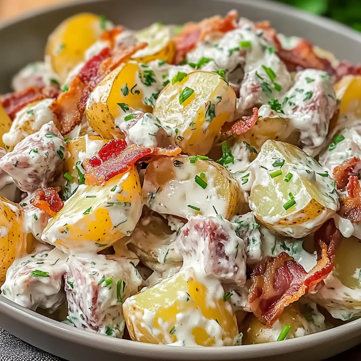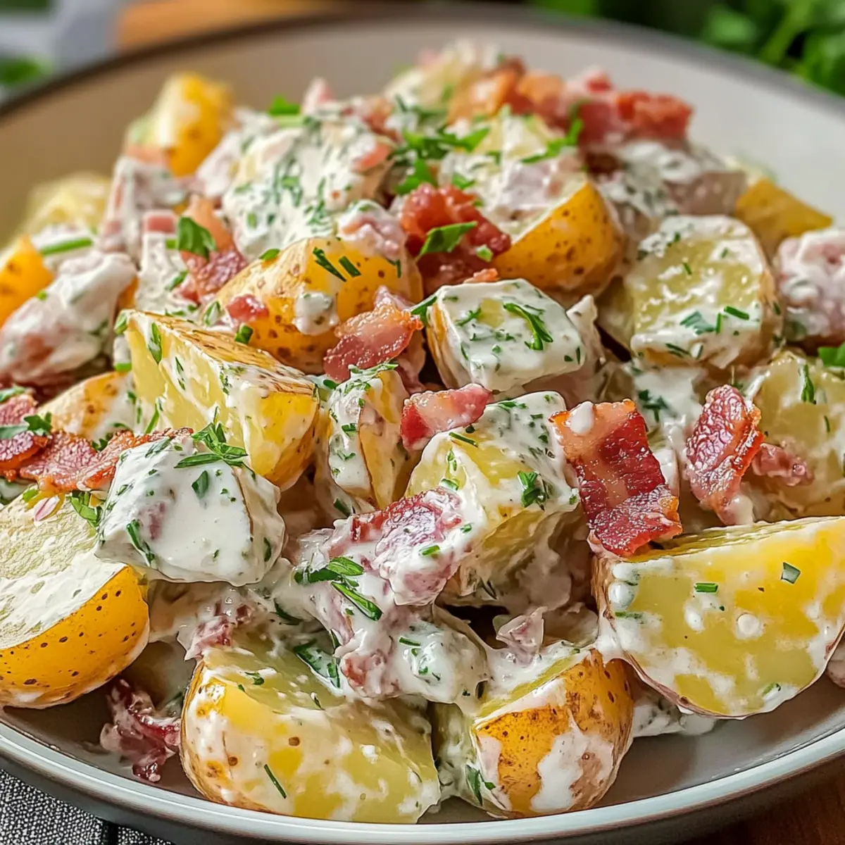 Jump to Recipe Print RecipeAs I stood by the grill, the inviting aroma of summer wafted through the air, sparking memories of laughter and gatherings around the backyard. This is where my Creamy Steakhouse Potato Salad truly shines—it’s the ultimate BBQ side dish that marries creamy textures and bold flavors. Made with tender red potatoes, crispy bacon, and a zesty Dijon mustard dressing, it’s not just a dish; it’s the centerpiece of any picnic or potluck. What makes it even better is its incredible customizability; you can easily swap in your favorite ingredients to suit your taste. Whether you’re entertaining friends or simply craving a delicious home-cooked meal, this potato salad is a real crowd-pleaser. Ready to elevate your next cookout with this creamy delight? Why is this potato salad so special? Bold flavors from the zesty Dijon mustard and tangy pickles elevate this dish to BBQ perfection. Customizable to suit any palate, feel free to swap ingredients like sour cream for Greek yogurt or add extra veggies. Perfect for gatherings, its creamy texture and crunch from bacon make it an instant hit with both friends and family. Time-saving and simple—prep it a day ahead for maximum flavor. Don’t forget, it pairs deliciously with grilled chicken or a fresh garden salad! Steakhouse Potato Salad Ingredients For the Potato Base Red Potatoes – Use 2 pounds, either peeled or unpeeled for a rustic touch. For the Creamy Dressing Mayonnaise – Essential for a rich, creamy texture; vinegar alone won’t suffice. Sour Cream – Enhances flavor and can be substituted with Greek yogurt for a lighter version. Dijon Mustard – Adds a tangy kick to the dressing; yellow mustard could work in a pinch. Apple Cider Vinegar – Balances flavors and is essential; substitute with white vinegar if needed. For the Crunch and Flavor Red Onion – Finely chopped to incorporate evenly, adding a delightful crunch. Crispy Bacon – Provides a savory crunch; turkey bacon is an excellent lighter alternative. Shredded Cheese – Classic cheddar adds creaminess, but feel free to use your favorite cheese! Dill Pickles – Well-diced for a tangy bite that complements the flavors. For the Garnish Fresh Parsley – Adds visual appeal and freshness to the dish. Chives – Sprinkle for an extra pop of flavor and color. Elevate your next BBQ with this Creamy Steakhouse Potato Salad that’s completely customizable and sure to be a crowd-pleaser! Step‑by‑Step Instructions for Creamy Steakhouse Potato Salad Step 1: Boil the Potatoes Begin by washing 2 pounds of red potatoes thoroughly. In a large pot, fill it with salted water, and bring it to a boil over high heat. Gently add the potatoes, cooking them until fork-tender—about 10 to 15 minutes. Once cooked, drain the potatoes and allow them to cool completely on a platter or cutting board, ensuring they’re ready for mixing. Step 2: Prepare the Dressing While the potatoes cool, grab a mixing bowl and add 1 cup of mayonnaise, ½ cup of sour cream, 2 tablespoons of Dijon mustard, and 1 tablespoon of apple cider vinegar. Whisk the ingredients together until you achieve a smooth, creamy dressing. This zesty mixture is the heart of the Creamy Steakhouse Potato Salad, providing a rich flavor base for your salad. Step 3: Mix Ingredients Once the potatoes have cooled down, cut them into bite-sized pieces, ensuring they maintain their shape. In a large mixing bowl, combine the potato pieces with finely chopped red onion, crispy bacon, shredded cheese, dill pickles, and fresh parsley. Gently fold the ingredients together, allowing the flavors to intermingle without breaking the potatoes apart. Step 4: Season Sprinkle salt and pepper over the potato mixture to taste, ensuring the seasoning enhances the overall flavor of your Creamy Steakhouse Potato Salad. Stir gently to distribute the seasoning evenly throughout the mixture, being mindful not to over-mix, which can lead to mushiness in the potatoes. Step 5: Chill Cover the bowl with plastic wrap or a lid and place it in the refrigerator. Allow the salad to chill for at least one hour, although longer is better to let the flavors meld beautifully. This cooling time is crucial in developing the creamy texture and zesty taste that will delight your guests! Step 6: Garnish and Serve Before serving, give your Creamy Steakhouse Potato Salad a gentle stir to recombine the ingredients. Garnish with freshly chopped chives or an extra sprinkle of parsley for a pop of color. Serve chilled at your next BBQ, potluck, or family gathering for a truly refreshing side! Make Ahead Options These Creamy Steakhouse Potato Salad is perfect for busy home cooks looking to streamline meal prep! You can boil the potatoes and prepare the creamy dressing up to 24 hours in advance; simply cool the potatoes completely and refrigerate them separately from the dressing until you’re ready to mix. This way, the potatoes maintain their texture and the dressing stays fresh. When it’s time to serve, combine the chilled potatoes with the dressing, chopped red onion, crispy bacon, and other stir-ins. For the best flavor, chill the assembled salad for at least 1 hour before serving. This thoughtful prep will make your meal much easier while ensuring that your potato salad remains just as delicious! What to Serve with Creamy Steakhouse Potato Salad Imagine a summer gathering, where flavors mingle and laughter fills the air, making every moment savory and delightful! Grilled Chicken: The smoky flavors from grilled chicken wonderfully contrast with the creamy richness of the potato salad, elevating the meal. Pairing it with a herb marinade or barbecue glaze complements the dish beautifully. BBQ Ribs: Tender, juicy ribs slathered in tangy sauce create an irresistible harmony with the creamy and tangy notes of the potato salad, making for a feast fit for any occasion! Fresh Garden Salad: A crisp garden salad loaded with fresh greens and a light vinaigr