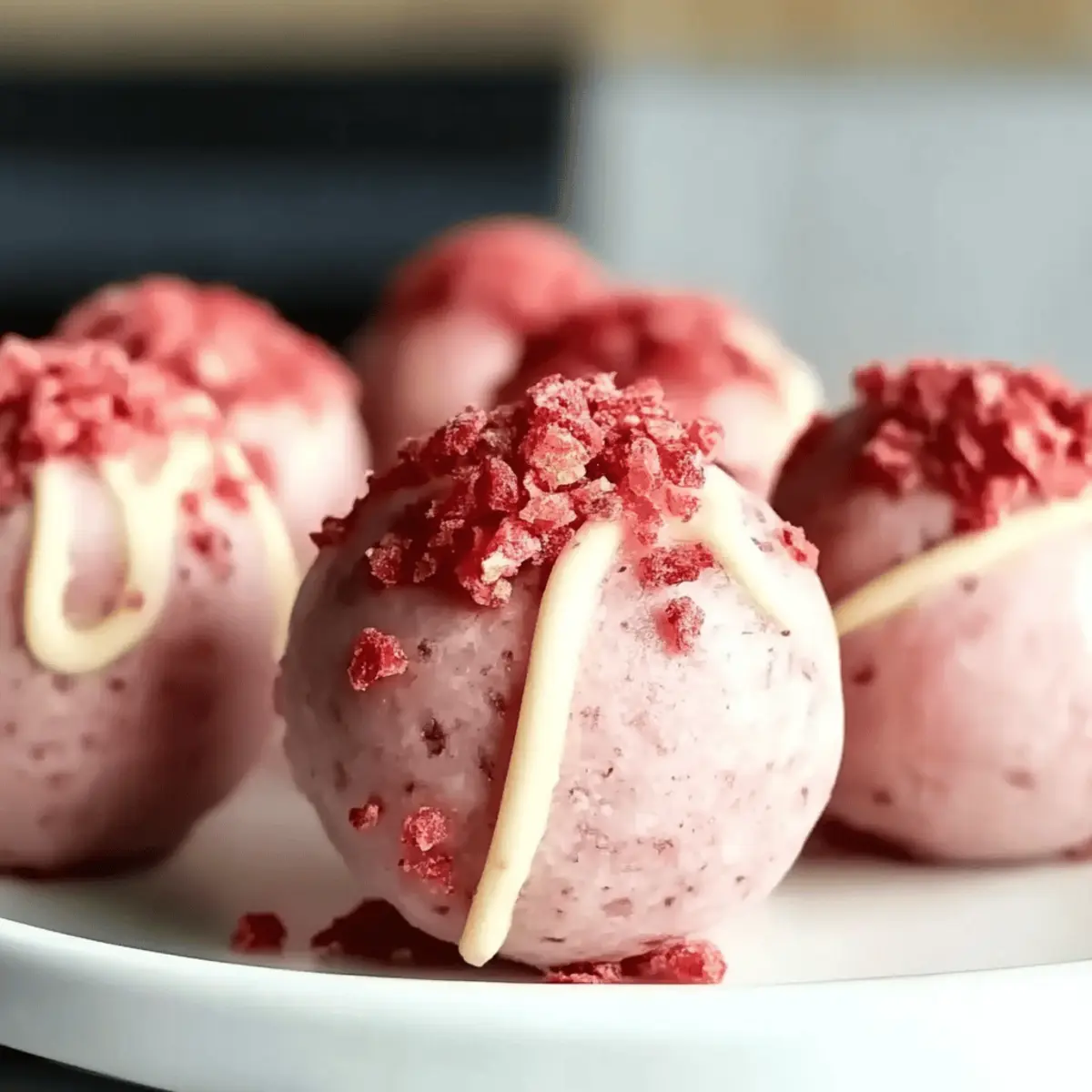 Jump to Recipe Print RecipeAs I stood in my kitchen bathed in the warm afternoon light, I couldn’t help but feel a little frustrated with my search for a wholesome snack that wouldn’t compromise on taste. Enter the Strawberry Cheesecake Protein Balls! These delightful little bites are a delicious answer to my culinary dilemma. With no baking required, they come together effortlessly, making them the perfect treat for meal prepping or post-workout refueling. Packed with protein and naturally sweetened, these gluten-free goodies promise to satisfy your sweet tooth while keeping you on track with your healthy eating goals. Curious to see how these little treats can revolutionize your snacking routine? Let’s dive into the recipe! Why are Strawberry Cheesecake Protein Balls irresistible? Guilt-free indulgence: These protein balls offer a decadent cheesecake flavor without the calories, perfect for satisfying your sweet cravings. No-bake simplicity: Skip the oven! A quick mix and roll turns these into a fast and healthy snack option. Packed with protein: Ideal for post-workout recovery, they deliver the protein boost you need to power through your day. Gluten-free goodness: Made with gluten-free ingredients, they cater to everyone’s dietary needs without compromising on taste. Meal prep friendly: Perfect for on-the-go snacking or a delicious addition to lunchboxes, these bites will keep your week tasty and nutritious. Transform your snack game with these delightful Strawberry Cheesecake Protein Balls! If you love easy, scrumptious options, check out Fried Strawberry Cheesecake and Strawberry Swirl Cheesecake for more sweet inspirations! Strawberry Cheesecake Protein Balls Ingredients For the Batter Freeze-Dried Strawberries – Provides the sweet, fruity flavor and essence of fresh strawberries; fresh strawberries can add moisture and alter the texture. Cream Cheese – Adds creaminess and richness, perfectly mimicking traditional cheesecake flavor. Protein Powder – Boosts protein content for a nutritious snack; choose whey or plant-based varieties based on dietary needs. Almond Flour – Offers structure and texture; substitute with coconut flour, but use less due to its higher absorbency. Oats – Contributes fiber and helps bind the ingredients together; make sure to use certified gluten-free oats for a gluten-free option. Honey/Agave Syrup – Acts as a natural sweetener; feel free to replace with a vegan alternative if needed. Vanilla Extract – Enhances the overall flavor depth and brings warmth to the mixture. Salt – Balances sweetness and elevates the overall flavor profile. For Rolling Crushed Freeze-Dried Strawberries – Roll the balls for an extra pop of color and flavor, enhancing the strawberry experience. Transform your snack time with these delicious Strawberry Cheesecake Protein Balls that are not only delightful but also easy to make! Step‑by‑Step Instructions for Strawberry Cheesecake Protein Balls Step 1: Combine Ingredients In a large mixing bowl, combine the freeze-dried strawberries, cream cheese, protein powder, almond flour, oats, honey or agave syrup, vanilla extract, and a pinch of salt. Use a spatula or wooden spoon to mix until all ingredients are well incorporated and form a sticky, cohesive dough, which should take about 3-5 minutes. Step 2: Blend for Smoothness For a creamier texture, transfer the mixture to a food processor or blender. Pulse the ingredients until you achieve a silky consistency, but be careful not to over-process; you want a thick dough, not a paste. This blending step enhances the flavor of your Strawberry Cheesecake Protein Balls, making them irresistible. Step 3: Roll the Dough Once your mixture is smooth yet firm, take small portions and roll them into 12 equal-sized balls, about 1 inch in diameter. This should only take a few minutes. The mixture should be sticky enough to hold together, so if it feels too crumbly, you can add a drop more honey or agave syrup. Step 4: Add a Flavorful Coating For extra strawberry flavor and a burst of color, roll each ball in crushed freeze-dried strawberries. This adds a delightful crunch and enhances the overall aesthetic of your Strawberry Cheesecake Protein Balls. Ensure each ball is evenly coated for an extra touch of sweetness. Step 5: Chill to Set Place the protein balls on a parchment-lined tray or plate, spacing them out to avoid sticking. Refrigerate for at least 30 minutes to allow them to firm up. This chilling process is essential for helping the balls maintain their shape while giving the flavors time to meld beautifully. Step 6: Serve and Store After chilling, your Strawberry Cheesecake Protein Balls are ready to serve! Enjoy them as a nutritious snack, or pack them for lunch. For storage, keep them in an airtight container in the fridge for up to 5 days, or freeze them for longer enjoyment. Allow them to sit at room temperature for a few minutes after freezing for the best texture. What to Serve with Strawberry Cheesecake Protein Balls Elevate your snacking experience by pairing these delightful protein balls with complementary flavors and textures that awaken your taste buds. Fruit Salad: A vibrant mix of seasonal fruits adds freshness and balances the creaminess of the protein balls beautifully. Greek Yogurt: This tart, creamy base, with a drizzle of honey, enhances the cheesecake flavor while providing a protein boost. Nut Butter: A dollop of almond or cashew butter adds richness and a satisfying crunch, perfect for those craving additional texture. Tea: Pair with a soothing herbal or green tea that complements the strawberry notes and offers a calming break in your day. Dark Chocolate: A few dark chocolate shavings or chips can smooth out the sweetness, creating a decadent contrast to the protein balls. Nutty Granola: A sprinkle of crunchy granola on top not only enhances the flavor but also adds delightful crunchiness. Light Smoothie: A refreshing smoothie with banana a