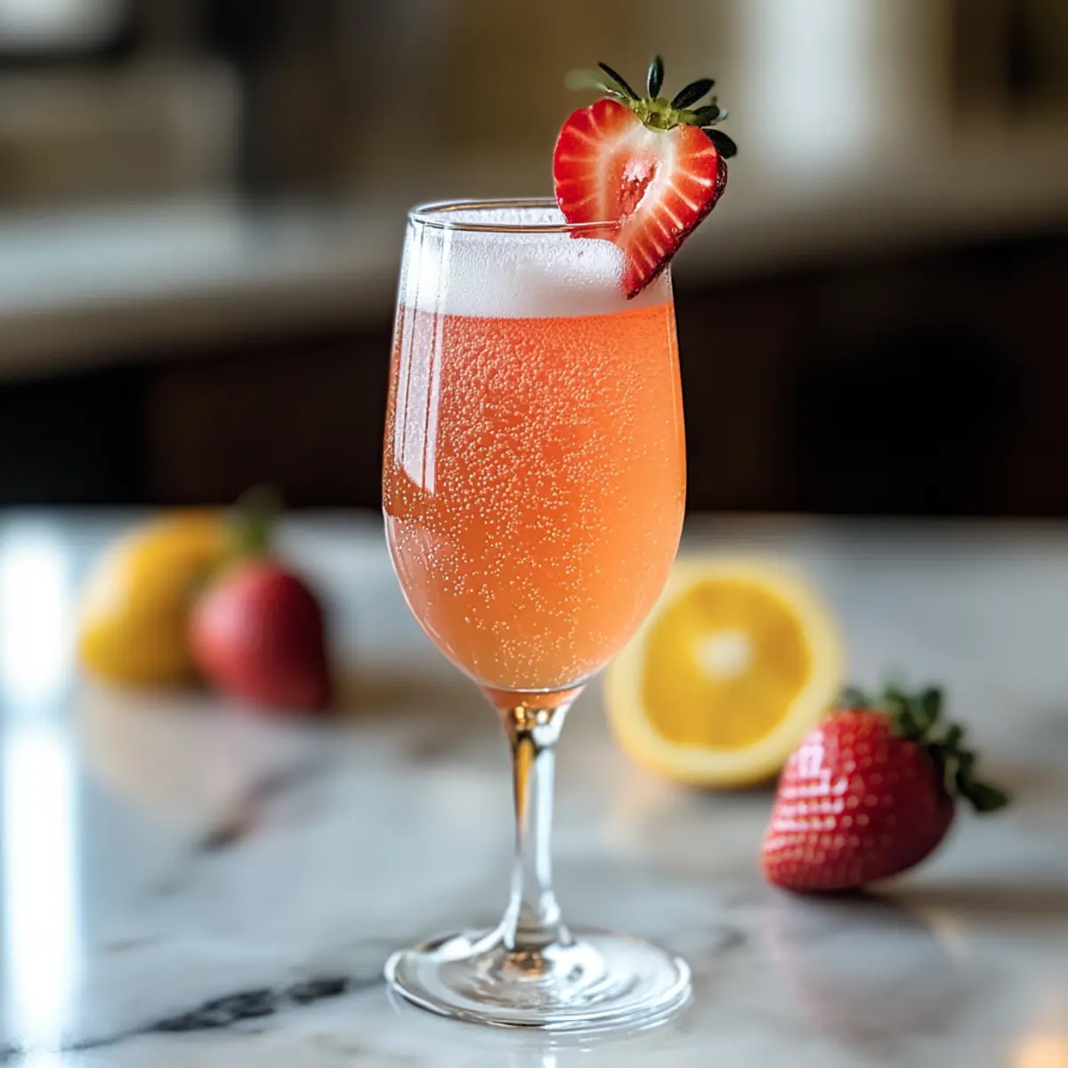 Jump to Recipe Print RecipeAs I sat sipping my latest obsession, a bright and bubbly Strawberry Mimosas Mocktail, I felt transported to a sun-drenched brunch terrace, surrounded by laughter and clinking glasses. This delightful concoction is a perfect non-alcoholic drink that effortlessly combines sweet strawberry purée and zesty orange juice, topped off with a sparkling finish. Trust me, it’s the ideal addition to any gathering, whether it’s a baby shower, holiday brunch, or just a cozy afternoon with friends. Not only is this mocktail vibrant and easy to whip up, but it also caters to all ages, making it a sure crowd-pleaser. Curious about how to create this refreshing option that makes everyone feel included? Let’s dive into the simple steps to elevate your next celebration! Why Choose a Strawberry Mimosas Mocktail? Refreshing, fruity flavor: The blend of sweet strawberry purée and zesty orange juice creates an irresistible sweet-tart profile that dances on your palate. Effortless preparation: With just a few simple ingredients, this delightful mocktail comes together in minutes, perfect for spontaneous gatherings or planned events. Versatile for any occasion: Whether it’s a festive brunch or a casual catch-up with friends, this mocktail suits all moods and settings. Guilt-free indulgence: Low in calories, this drink allows everyone to indulge without the worry, making it ideal for health-conscious celebrations. For more deliciously refreshing ideas, don’t miss the Cucumber Strawberry Salad or the easy-to-make Strawberry Shortcake Roll! Strawberry Mimosas Mocktail Ingredients • To create this refreshing Strawberry Mimosas Mocktail, gather these simple ingredients for a bubbly delight! For the Base Chopped Fresh Strawberries – Use ripe strawberries for the best natural sweetness and vibrant color. Orange Juice – Freshly squeezed is best, providing a citrusy lift and ensuring maximum flavor. For the Fizz Chilled Sparkling Water – Adds a fizzy texture and lightness; try flavored varieties for an exciting twist. For Garnish Strawberry Slices or Orange Twists – These elegant touches not only enhance presentation but also add a vibrant pop of color. Step‑by‑Step Instructions for Strawberry Mimosas Mocktail Step 1: Blend Strawberries Begin by placing 2 cups of chopped fresh strawberries into your blender. Blend on high for about 30 seconds or until the mixture reaches a smooth, velvety consistency. The vibrant red color and sweet aroma should fill your kitchen, signaling that your strawberry purée is ready. Step 2: Combine Juice In a large bowl or pitcher, pour 8 oz of fresh orange juice to complement your strawberry purée. Gently mix in the purée until combined, creating a lively pink mixture. If you prefer a smoother mocktail, consider straining this blend through a fine mesh sieve to eliminate any pulp, enhancing the silky texture of your Strawberry Mimosas Mocktail. Step 3: Assemble Mocktails Grab your favorite champagne flutes and pour the delightful strawberry-orange mixture halfway into each glass. Aim for about 4 oz per glass to leave room for the fizz. The vibrant color should peek through, setting up an enticing visual for your guests as you prepare for the final step. Step 4: Top with Sparkling Water Now it’s time to add the sparkle! Carefully fill each glass with chilled sparkling water, topping the mixture to your desired fizz level. The effervescent bubbles will rise beautifully, creating a festive appearance. Make sure to serve immediately for maximum effervescence and enjoyment. Step 5: Garnish Finish off your stunning Strawberry Mimosas Mocktail with a lovely garnish. Feel free to add a sliced strawberry or a twist of orange peel to each glass for an elegant touch. These bright accents not only enhance presentation but also invite your guests to dive into the refreshing experience you’ve created. Expert Tips for the Best Strawberry Mimosas Mocktail Choose Ripe Strawberries: Using ripe strawberries ensures maximum sweetness and vibrant color in your mocktail, enhancing the overall flavor profile. Chill the Mixture: Prepare the strawberry-orange blend ahead and chill it in the refrigerator. This keeps your drink cold without needing ice, preventing dilution. Infuse with Herbs: For a unique twist, infuse your sparkling water with fresh herbs like mint or basil. This adds a refreshing layer of flavor that complements the strawberries perfectly. Garnish Creatively: Elevate the presentation by using a variety of garnishes. A sprig of mint or a citrus twist can make your Strawberry Mimosas Mocktail visually stunning and even more inviting. Serve Immediately: Enjoy the drink fresh by serving right after assembling. The bubbly texture is at its best when the sparkling water is freshly added. How to Store and Freeze Strawberry Mimosas Mocktail Refrigerator: Store the strawberry-orange mixture in an airtight container for up to 3 days. Keep sparkling water separate to maintain its effervescence until serving. Make-Ahead: Prepare the base a few hours in advance for convenience. Just remember to add the sparkling water right before pouring to ensure freshness. Freezer: While it’s not ideal to freeze the mocktail, you can freeze leftover strawberry purée for up to 2 months. Thaw and mix with fresh ingredients before serving. Garnishing: If you’ve prepared garnishes like slices of strawberry or orange twists, store them in a small container in the fridge for up to a day to keep them fresh and ready to impress your guests. What to Serve with Strawberry Mimosas Mocktail Setting the scene for an unforgettable gathering starts with the perfect pairings to complement your delightful Strawberry Mimosas Mocktail. Flaky Croissants: These buttery pastries add a touch of elegance and are perfect for a light brunch that enhances the fruity flavors of the mocktail. Savory Quiche: A slice of quiche brings a savory balance to your sweet drink, making it an ideal mai