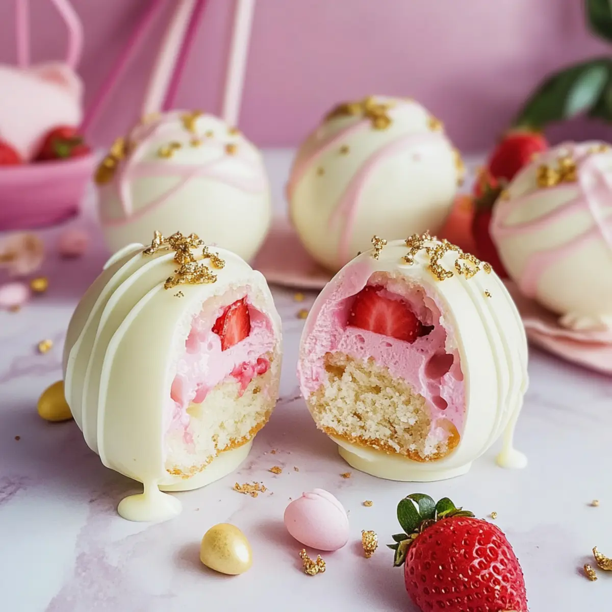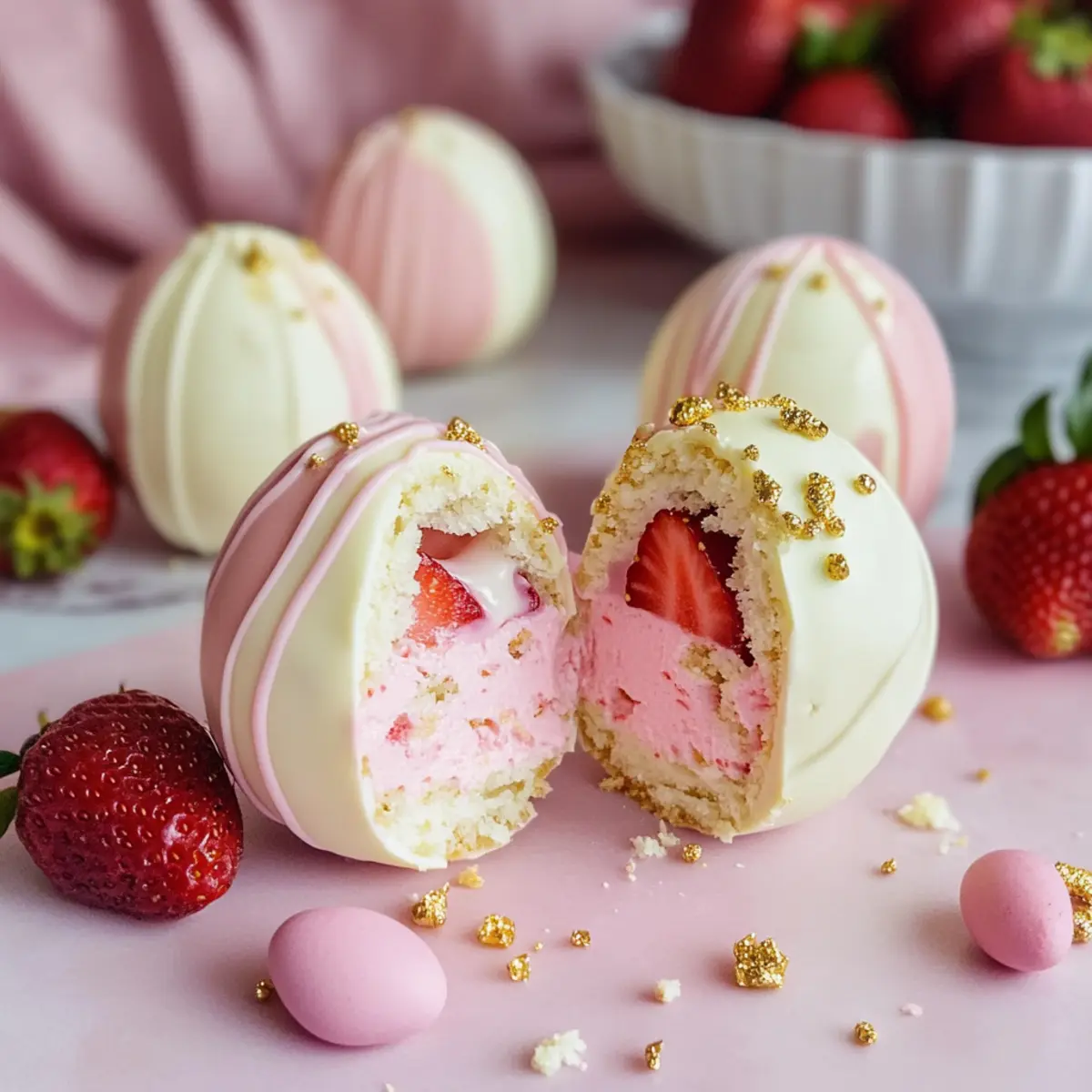 Jump to Recipe Print RecipeAs the aroma of fresh strawberries fills the air, I can’t help but feel excitement bubbling up for Easter. This year, I’ve decided to bring a colorful twist to the table with my Strawberry Shortcake Easter Egg Bombs! Imagine biting into a luscious white chocolate shell, revealing a sweet strawberry filling that’s cushioned by crispy shortcake crumbs. These no-bake treats are not only a feast for the eyes but also a delightful, customizable addition to your festive celebrations. Plus, they’re incredibly easy to whip up, making them the perfect project for a fun family baking session. Who wouldn’t want to get their hands a little messy while creating delicious memories? Ready to dive into this scrumptious adventure? Let’s get started! Why Are These Easter Treats So Special? Festive Fun: These Strawberry Shortcake Easter Egg Bombs are a showstopper, adding color and creativity to your holiday dessert table. No-Bake Convenience: With an easy preparation process, you can enjoy a delicious treat without turning on the oven! Customizable Delight: Tailor the flavors with your favorite jams or berries to make each batch uniquely yours. Crowd-Pleasing Appeal: The impressive presentation and delightful taste will impress family and friends during your Easter celebrations. Memorable Moments: Perfect for family bonding, these sweet treats are an engaging way to create lasting memories together in the kitchen. Dive into these festive creations and check out my Cucumber Strawberry Salad for a refreshing side! Strawberry Shortcake Easter Egg Bombs Ingredients For the Chocolate Shell White Chocolate – Creates the shell; use high-quality white chocolate for a glossy finish. Pink Candy Melts – Adds a pop of color and sweetness to the shell; optional for an extra festive touch. For the Filling Freeze-Dried Strawberries – Gives concentrated strawberry flavor and texture; a must for the filling. Strawberry Jam – Sweetens the filling and enhances the strawberry taste; feel free to substitute with other fruit jams. Heavy Cream – Whipped to achieve a light, airy consistency for the filling. Cream Cheese – Adds richness and creaminess; ensure it’s softened for easy blending. Powdered Sugar – Sweetens the filling nicely; can be replaced with finely ground granulated sugar if preferred. Vanilla Extract – Elevates the flavor; choose pure vanilla for the best taste. Crushed Shortcake Biscuits – Provides delightful texture to the filling while also serving as a decorative element. For the Decoration Fresh Strawberry Slices – Optional garnish for a burst of freshness and visual appeal. Edible Gold Sprinkles – Elevates the festive look with a touch of elegance. Melted Pink Chocolate – Drizzle on top for a decorative finish that also enhances flavor. Step‑by‑Step Instructions for Strawberry Shortcake Easter Egg Bombs Step 1: Making the Chocolate Shell Melt 1 cup of high-quality white chocolate and ½ cup of pink candy melts in a microwave-safe bowl, heating in 30-second intervals and stirring until smooth. Pour a thin layer of the melted chocolate into each Easter egg mold, ensuring an even coating. Tap the molds gently to remove air bubbles, then place them in the refrigerator for 15 minutes to harden completely. Step 2: Preparing the Strawberry Shortcake Filling In a mixing bowl, beat together 1 cup of heavy cream, 8 ounces of softened cream cheese, and ½ cup of powdered sugar until the mixture is light and fluffy, which should take about 3-4 minutes. Gently fold in ¼ cup of strawberry jam, ¼ cup of crushed freeze-dried strawberries, and ½ cup of crushed shortcake biscuits, mixing carefully to maintain the airy texture. Step 3: Assembling the Easter Egg Bombs Take the hardened chocolate shells from the refrigerator and remove them from the molds carefully. Fill half of each chocolate egg mold with the prepared strawberry shortcake filling, smoothing the tops with a spatula. Seal the eggs by spooning additional melted chocolate on top, pressing the halves together firmly, and returning them to the refrigerator for another 10-15 minutes until set. Step 4: Decorating the Bombs Once the Easter Egg Bombs are set, melt some pink chocolate and drizzle it over the tops of each egg for a decorative finish. Immediately sprinkle with extra crushed shortcake biscuits and place a fresh strawberry slice on top if desired. This not only adds visual appeal but also enhances the strawberry flavor in your delightful Strawberry Shortcake Easter Egg Bombs. Step 5: Serving When you’re ready to share these treats, serve the Strawberry Shortcake Easter Egg Bombs by inviting guests to crack them open or take a bite to reveal the delicious filling inside. These delightful festive treats are perfect for Easter celebrations or as a sweet surprise for any gathering. Enjoy the beautiful mix of flavors and textures! Expert Tips for Strawberry Shortcake Easter Egg Bombs Quality Matters: Use high-quality white chocolate for a smooth, shiny shell that enhances the flavor of your Strawberry Shortcake Easter Egg Bombs. Room Temperature Ingredients: Ensure your cream cheese is at room temperature for easy blending and a creamy texture in the filling; this helps avoid lumps. Chill Time: Don’t rush the chilling process! Properly chill the chocolate shells and assembled eggs for the best shape and texture, preventing cracks. Customize Wisely: Feel free to swap in different jams or use various freeze-dried fruits for creative variations, but ensure they complement strawberries well. Avoid Overmixing: When folding in the filling ingredients, be gentle; overmixing can deflate the whipped cream and ruin that delightful airy texture. Play with Decorations: Experiment with different toppings like mini chocolate chips or colorful sprinkles for a unique twist on your festive Strawberry Shortcake Easter Egg Bombs. Make Ahead Options These Strawberry Shortcake Easter Egg Bombs are perfect fo
