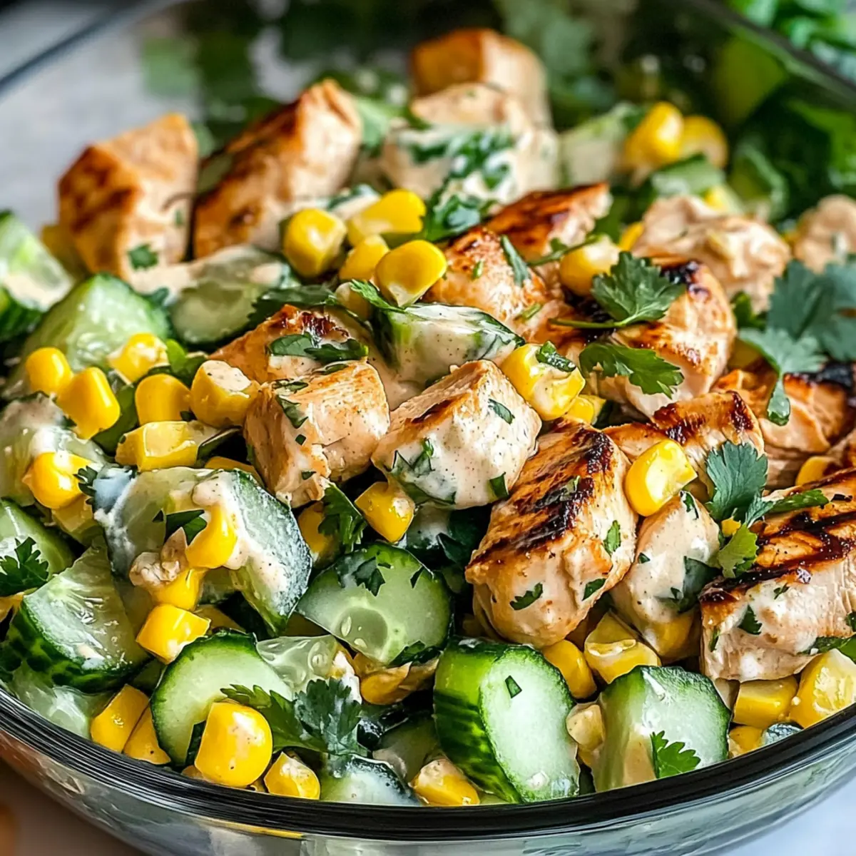 As the sun shines brightly and the days stretch longer, summer beckons us to gather and savor delightful, fresh flavors. That’s exactly what inspired me to create this Street Corn Creamy Cucumber Chicken Salad, a vibrant dish that showcases grilled chicken, sweet corn, and crisp cucumbers for a refreshing crunch. Not only is this salad gluten-free and quick to whip up, but it also serves as a perfect companion for those warm-weather gatherings where light yet satisfying bites reign supreme. With every bite, you’ll experience the essence of summer packaged in a bowl that speaks to both novice cooks and seasoned kitchen adventurers. Ready to dive into a dish that’ll surely become a staple this season?