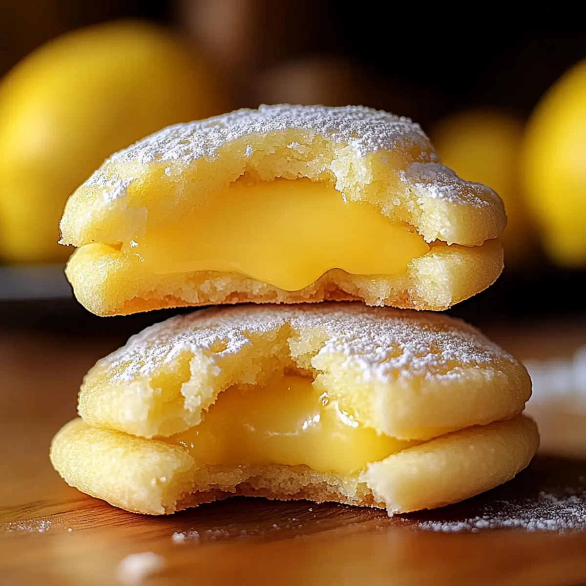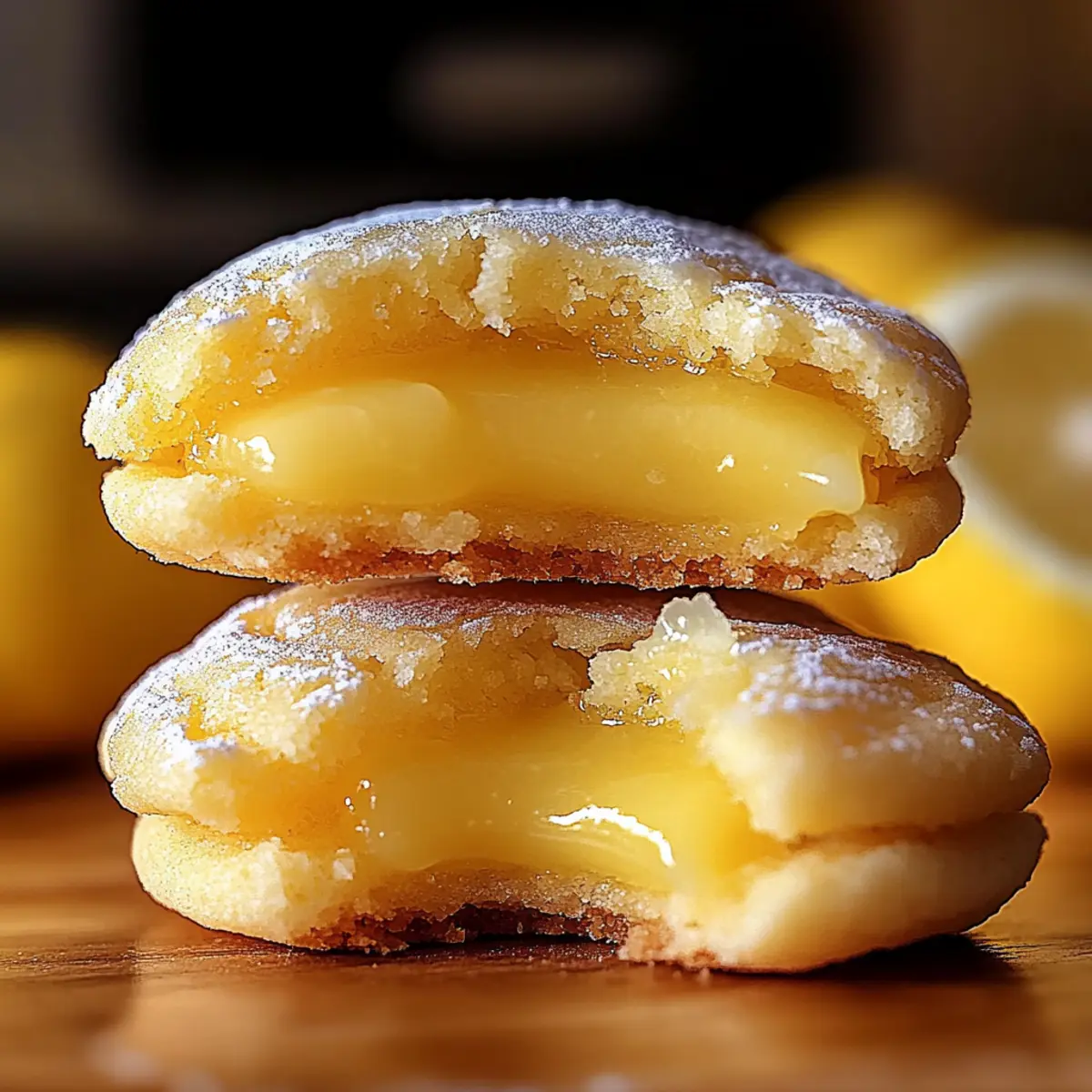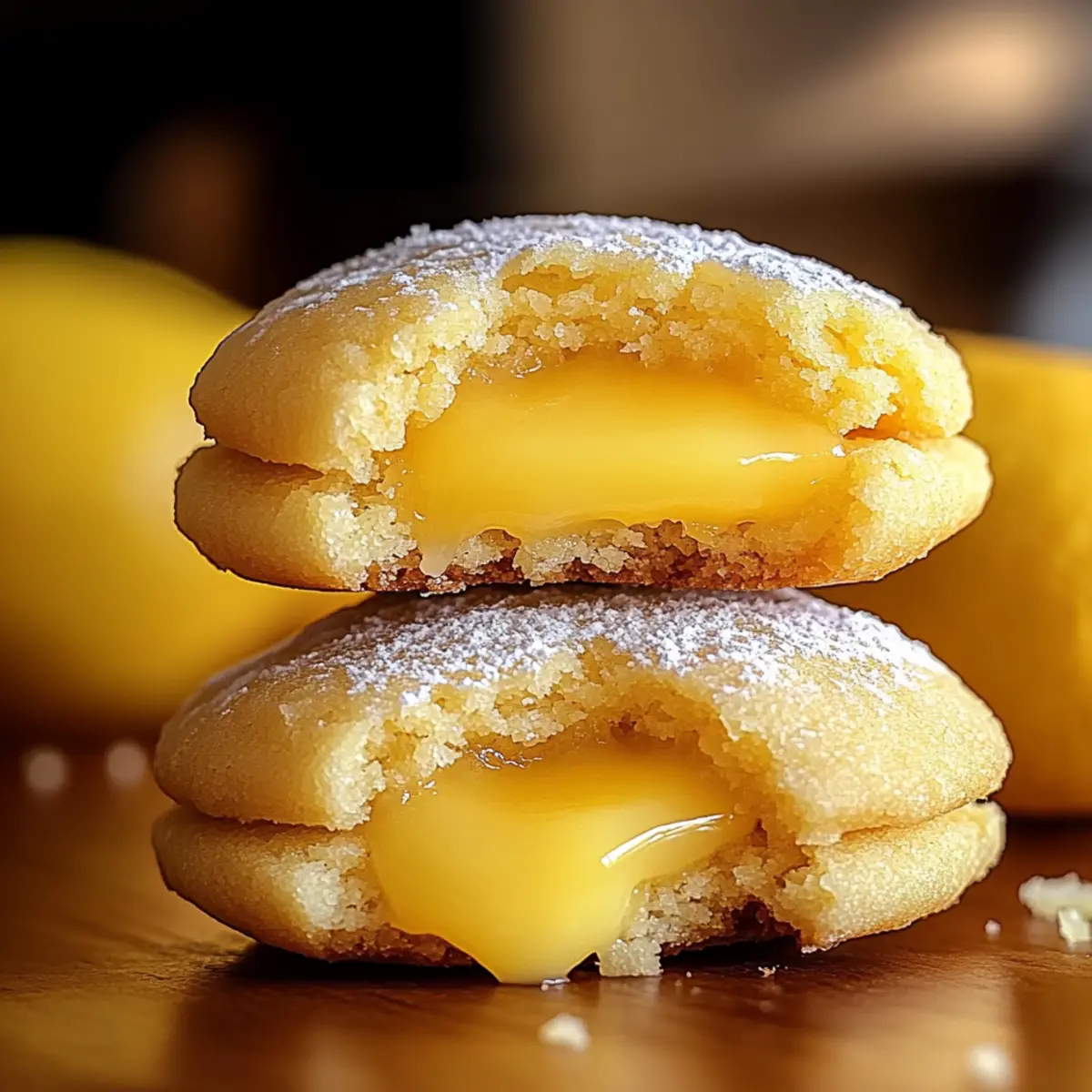 Jump to Recipe Print RecipeAs I strolled through the farmers market, the vibrant colors of fresh lemons caught my eye, instinctively igniting my baking spirit. Today, I’m thrilled to share my recipe for Stuffed Lemon Cookies, a delightful treat that encapsulates the essence of those zestful lemons. Featuring a luscious lemon curd filling embraced by buttery, lemon-infused cookie dough, these cookies are a fantastic way to brighten any gathering or cozy afternoon. They’re not just quick to whip up, but they also swap out artificial additives for pure, natural ingredients—pure love in every bite! Whether you’re pairing them with your afternoon tea or wrapping them as a charming gift, these cookies promise to bring a splash of sunshine to your table. Curious to see how these little wonders come together? Let’s dive in! Why Are Stuffed Lemon Cookies a Must-Try? Irresistible Flavor: Experience the bright, tangy punch of fresh lemon curd tucked inside buttery cookie dough—it’s a burst of sunshine in every bite! Natural Goodness: Using only pure, natural ingredients, these cookies are free from artificial additives, making them a guilt-free treat to indulge in. Effortless Baking: With simple steps to create delicious cookies, even novice bakers can impress friends and family with this delightful dessert. Versatile Delight: Whether it’s an afternoon tea or a casual gathering, these cookies add a cheerful touch to any occasion. A Memorable Gift: Presenting these cookies as a homemade gift is a heartfelt way to share love and sweetness, akin to the joy of Gingerbread Oatmeal Cookies or other sweet creations. Stuffed Lemon Cookies Ingredients For the Cookie Dough Caster Sugar – Sweetener that enhances flavor and texture; if unavailable, granulated sugar can work, but the texture may differ slightly. Unsalted Butter – Provides richness and moisture; a dairy-free butter alternative can be used for a vegan version. All-Purpose Flour – Forms the structure of the cookies; substitute with a 1:1 gluten-free flour blend for a gluten-free option. Egg – Binds ingredients together; for vegans, a flax egg is a suitable substitute. Fresh Lemon Juice – Adds vibrant acidity; always use freshly squeezed juice for the best flavor. Lemon Peel – Introduces aromatic oils and enhances lemon flavor; make sure only to use the yellow part to avoid bitterness. Salt – Balances sweetness; an essential ingredient, do not skip it. Baking Soda – A leavening agent for slight rise; ensure it’s fresh for the best results. For the Lemon Curd Filling Cornstarch – Thickens the lemon curd to a smooth consistency; no direct substitute for this recipe. Granulated White Sugar – Used for sweetening the lemon curd; any granulated sugar can be used for this purpose. For Coating the Cookies Granulated Sugar – Coats the cookies for extra sweetness and texture; any granulated sugar will work. These Stuffed Lemon Cookies with their fresh, tangy filling are sure to brighten your day! Step‑by‑Step Instructions for Stuffed Lemon Cookies Step 1: Prepare Lemon Curd Filling Begin by combining caster sugar, cornstarch, and egg in a heatproof bowl. Whisk in freshly squeezed lemon juice and lemon peel until smooth. Place the bowl over a bain-marie and cook for about 8 minutes, stirring continuously until the mixture thickens. Once thickened, remove from heat, stir in unsalted butter until melted, cover with plastic wrap, and refrigerate for at least 30 minutes. Step 2: Freeze Curd Once your lemon curd is nicely chilled, portion it into 10 equal pieces. Place these portions on a parchment-lined tray and freeze for a minimum of 1 hour or until solid. This step is essential for preventing the lemon curd from leaking during the assembly of your Stuffed Lemon Cookies. Step 3: Make Cookie Dough In a mixing bowl, cream together softened unsalted butter and caster sugar until light and fluffy, about 3-4 minutes. Then, mix in the lemon zest and vanilla extract, followed by adding the egg. Gradually sift in the all-purpose flour, baking soda, and salt, blending gently until a cohesive dough forms. Chill the dough in the refrigerator for 20 minutes to firm it up for easier handling. Step 4: Assemble Cookies Preheat your oven to 180°C (350°F) while you prepare the cookies. Take a scoop of the chilled cookie dough and flatten it in your palm. Place a frozen cube of lemon curd in the center, carefully encasing the filling with the dough and rolling it into a ball. Roll the cookie dough ball in granulated sugar for a sweet finish and place it on a lined baking tray, leaving space between each cookie. Step 5: Bake Bake your assembled Stuffed Lemon Cookies in the preheated oven for about 8-9 minutes, watching for them to puff slightly but remain soft in the center. After baking, let them cool on the tray for a few minutes, allowing them to firm up slightly before transferring to a wire rack to cool completely. Enjoy the delightful aroma filling your kitchen as they cool! Stuffed Lemon Cookies Variations Feel free to let your creativity shine as you explore these exciting ways to customize your cookies! Citrus Swap: Substitute lemon curd with lime or orange curd for a refreshing twist. Each citrus brings its unique zest and sweetness. Gluten-Free: Use a 1:1 gluten-free flour blend to make these cookies gluten-free. Your guests won’t even notice the difference! Dairy-Free: Replace unsalted butter with coconut oil or a plant-based butter alternative for a dairy-free cookie everyone can enjoy. Extra Zing: Add a teaspoon of ginger or a sprinkle of ground cardamom to the cookie dough for an aromatic spice kick. It’s a delightful surprise! Poppy Seed Addition: Mix in a tablespoon of poppy seeds to the dough for added texture and a hint of nuttiness—perfect alongside the citrus! Sugar Alternative: Try coconut sugar instead of granulated sugar for a more earthy sweetness that complements the lemon flavor beautifully. Fruity Lem