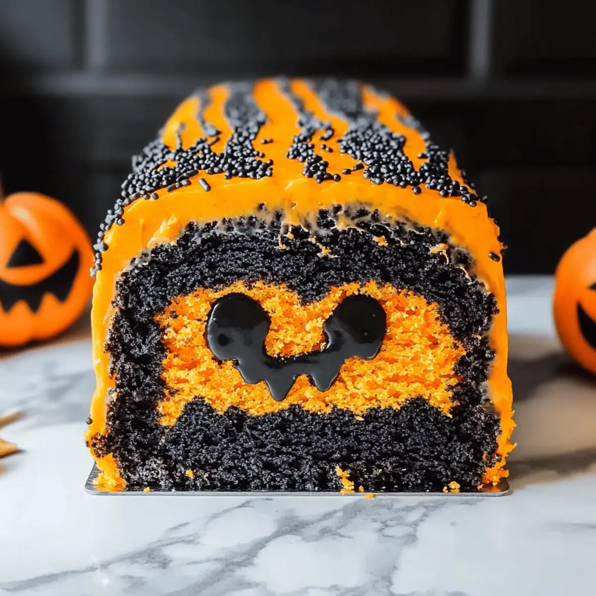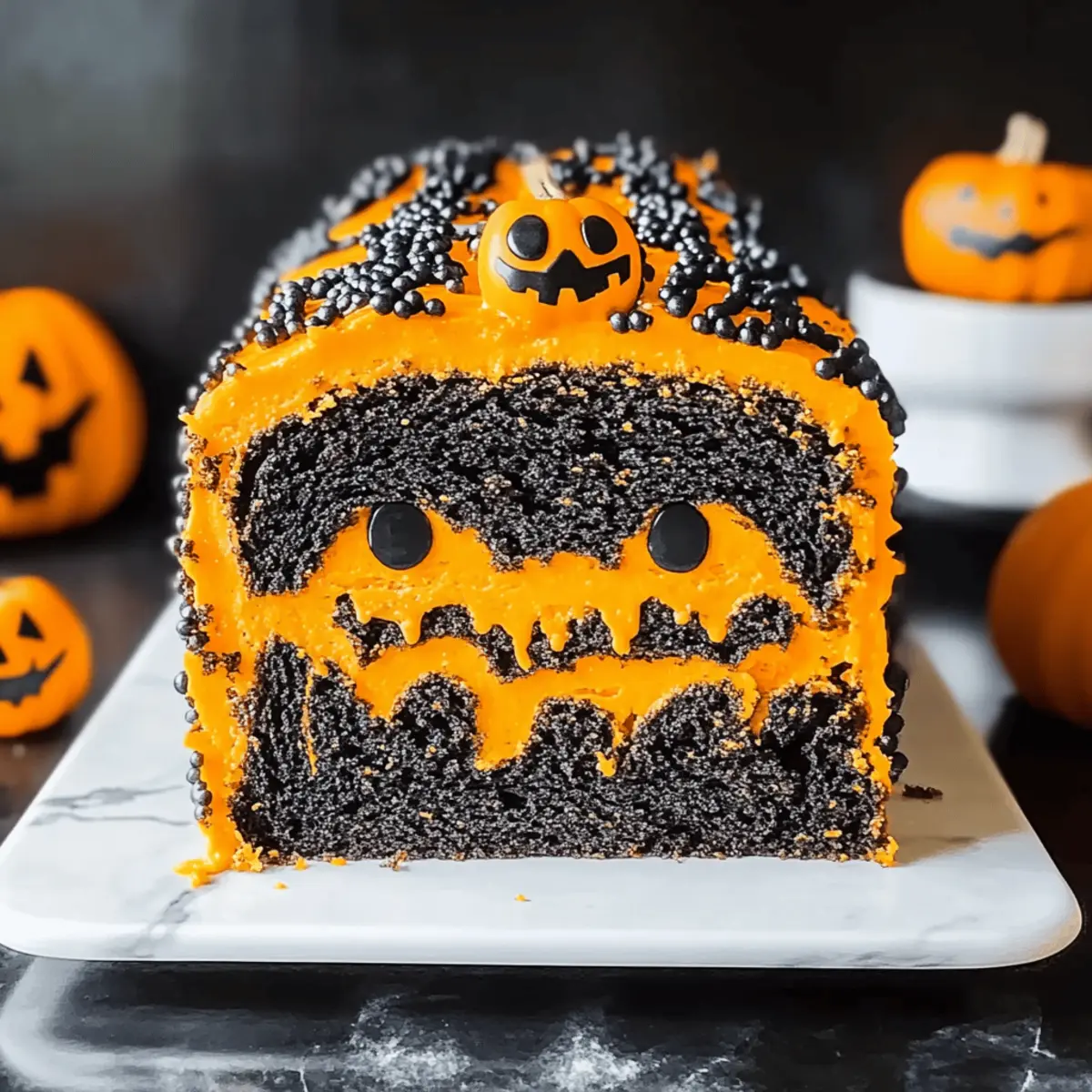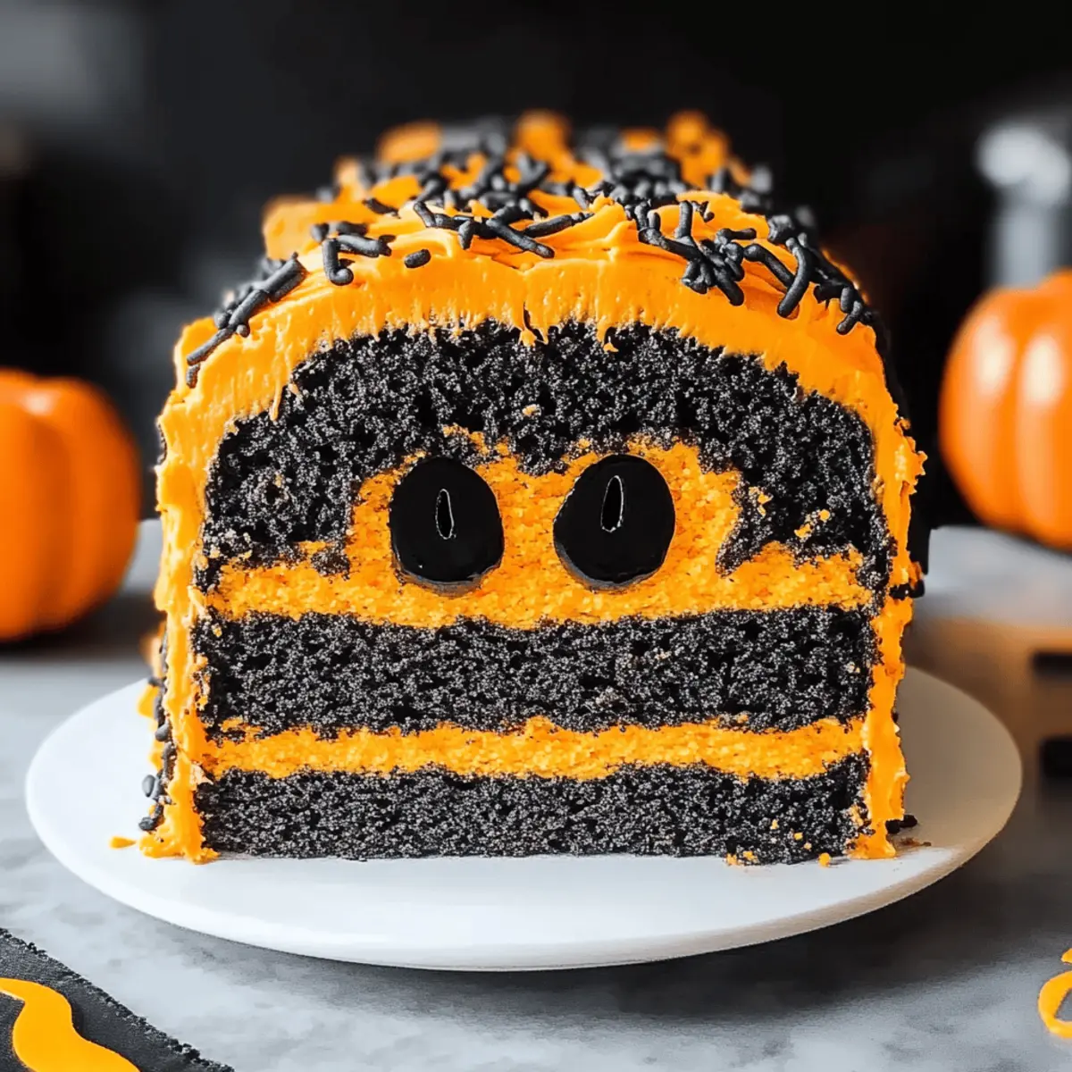 Jump to Recipe Print RecipeAs the leaves turn and the air becomes crisp, I find myself drawn to the warmth of my kitchen, where the delightful aroma of baking fills the space. Nothing captures the essence of fall quite like my Sweet Orange and Black Halloween Marble Cake. This easy-to-bake dessert beautifully harmonizes the flavors of pumpkin spice and rich cocoa, making it the ultimate festive treat to share with family and friends. Perfect for last-minute gatherings or cozy nights in, this cake is not only visually stunning with its vibrant marbling, but it’s also a guaranteed crowd-pleaser for any Halloween celebration. Ready to enchant your taste buds and light up your holiday table? Let’s dive into this deliciously spooky recipe! Why is this cake a Halloween must-try? Irresistible Flavor Fusion: The combination of pumpkin spice and rich cocoa creates a breathtaking harmony that is perfect for the spooky season. Visually Captivating: With its vibrant orange and black swirls, this cake will be the centerpiece of your Halloween dessert table. Quick & Easy: This recipe is straightforward and requires only basic baking skills, making it a lovely choice for last-minute events. Crowd-Pleasing: Everyone, from kids to adults, will be enchanted by the unique colors and delicious taste, just like my delightful Butterfinger Cheesecake Sweet or refreshing Mandarin Orange Salad. Versatile Options: Whether gluten-free or vegan, you can tweak this recipe to satisfy different dietary preferences while keeping the spooky fun alive! Sweet Orange and Black Halloween Marble Cake Ingredients For the Cake Self-raising Flour – Provides rise and fluffy texture; substitute with a gluten-free blend for an easy alternative. Butter (Salted) – Adds richness and flavor; unsalted butter can be used if preferred. Soft Brown Sugar – Contributes deep, molasses-like sweetness that pairs beautifully with cocoa; light brown sugar can work as an alternative. Eggs – Acts as a binding agent for the batter; organic eggs enhance flavor. Milk – Keeps the batter moist; plant-based milk can replace for a dairy-free option. Black Cocoa Powder – Provides a rich chocolate flavor; regular cocoa can be used but won’t achieve the same depth. Pumpkin Powder – Adds an autumnal flavor; fresh pumpkin puree can be an excellent substitute. Pumpkin Spice Mix – Infuses warm spice notes; a mix of cinnamon, nutmeg, and ginger works well if pumpkin spice is unavailable. Baking Powder – Enhances rise; ensure it’s fresh for optimal results. Salt – Balances sweetness and enhances flavors. Vanilla Extract – Offers a warm, aromatic essence to the cake. Orange Food Coloring – Brightens the orange batter for a festive appearance; use gel food coloring for more vibrancy. Black Food Coloring (optional) – Enhances the black batter for dramatic contrast. For the Glaze Powdered Sugar – Sweetens and thickens the glaze; sifted for a smooth finish is recommended. Warm Water – Adjusts glaze consistency to your desired thickness. For the Decoration Black and Orange Sprinkles – Add festive color and crunch as decoration. Eyeball Candy – An eye-catching finishing touch that delights both kids and adults. Get ready for a delightful baking experience with this Sweet Orange and Black Halloween Marble Cake that will not only wow your guests but also fill your home with the cozy aromas of fall! Step‑by‑Step Instructions for Sweet Orange and Black Halloween Marble Cake Step 1: Preheat the Oven Begin by preheating your oven to 175℃ (350℉). This temperature is essential for ensuring your Sweet Orange and Black Halloween Marble Cake bakes evenly and rises perfectly. While the oven heats, prepare your 8-inch by 4-inch loaf tin by greasing it with butter and dusting with flour, or simply line it with parchment paper for easy removal later. Step 2: Cream the Butter and Sugar In a large mixing bowl, cream your softened butter until it reaches a fluffy consistency, which should take about 2-3 minutes. Gradually add in the soft brown sugar, continuing to mix until the mixture becomes light and airy. This step is crucial as it creates a tender crumb in your cake, setting the stage for that delightful texture everyone loves. Step 3: Add the Eggs Next, incorporate your eggs into the butter-sugar mixture, adding them one at a time. Mix well after each addition to ensure they are fully combined. This process will add structure to your Sweet Orange and Black Halloween Marble Cake, so take your time and enjoy the creamy texture as you blend in the eggs, about 1-2 minutes. Step 4: Combine the Dry Ingredients In a separate bowl, whisk together the self-raising flour, baking powder, salt, pumpkin spice mix, and black cocoa powder. Make sure everything is well combined, as this mixture will provide the necessary rise and deep chocolate flavor to your cake. Once well-mixed, gradually fold the dry ingredients into the wet mixture in parts, ensuring a smooth batter. Step 5: Add the Milk and Remaining Ingredients Now, pour in half of the milk and gently mix until just combined. Follow with the rest of the milk and continue to stir until the batter achieves a lush, uniform consistency. Be cautious not to overmix, as this can affect the fluffiness of your Sweet Orange and Black Halloween Marble Cake. Step 6: Color the Batter Divide your prepared batter into two bowls. In one bowl, incorporate the pumpkin powder and orange food coloring, mixing until the batter is a vibrant orange. In the second bowl, stir in additional black cocoa powder and optional black food coloring until the batter is rich and dark. These colors will create beautiful marbling in your cake! Step 7: Create the Marble Effect Carefully layer the two batters alternately in the prepared loaf tin, spooning in large dollops to create contrast. Using a skewer or a knife, gently swirl through the batters to achieve the desired marbled effect. Aim for a pattern that allows both the st
