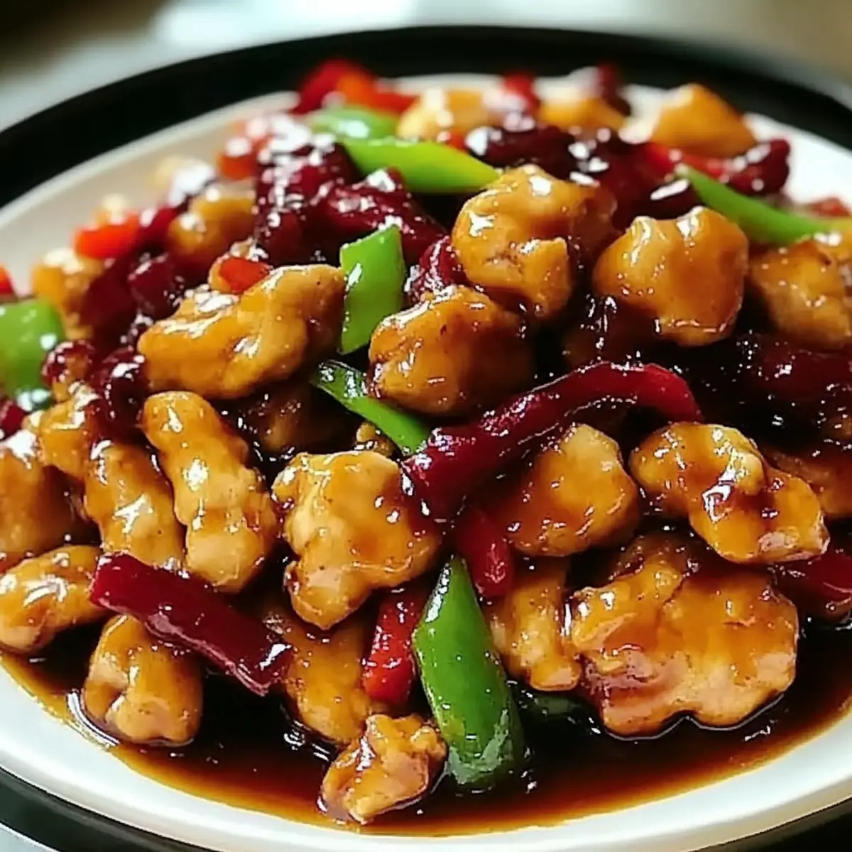 Jump to Recipe Print RecipeThe first whiff of Szechuan Chicken can transport you straight to the bustling streets of Chengdu, where aromatic spices dance together in perfect harmony. This quick dinner option is a delightful escape from the mundane, combining crispy, tender chicken with vibrant vegetables and a fiery kick that enlivens your taste buds. In just 37 minutes, you can whip up this tantalizing dish, making it an ideal choice for those busy weeknights when you crave something more flavorful than fast food. It’s not just about speed; the secret lies in the bold ingredients that transform basic elements into a meal bursting with personality. Are you ready to ignite your culinary adventure with Szechuan Chicken? Why is Szechuan Chicken a must-try? Bold, Flavor-Packed: Get ready to experience layers of taste as Szechuan peppercorns and dried chilies combine for an unforgettable spicy kick. Quick to Make: This dish comes together in just 37 minutes—perfect for those nights when you want delicious homemade food without the wait! Versatile Choices: Whether served over rice or noodles, this recipe shines with your favorite sides, allowing you to customize your meal effortlessly. Vibrant Vegetables: Crunchy bell peppers and fresh green onions elevate the dish, adding brightness and color that makes your plate pop! Restaurant Quality at Home: Ditch fast food and impress your family or guests with a dish that rivals restaurant favorites, all made in your own kitchen. Looking for another delightful chicken experience? Check out these Cheesy Garlic Chicken or Garlic Chicken Thighs for more flavor-packed options! Szechuan Chicken Ingredients For the Chicken Chicken Thighs or Breasts – Choose thighs for a juicier, flavorful option, or breasts for a leaner alternative. For the Marinade Soy Sauce – Essential for umami and saltiness; swap with tamari for a gluten-free dish. Cornstarch – This thickener adds a crispy texture when frying the chicken. For Cooking Vegetable Oil – High smoke point makes it great for frying; can be replaced with canola or sunflower oil. For Spice Szechuan Peppercorns – A must-have for authentic flavor and a signature numbing heat; omit for less spice. Dried Red Chilies – Adjust the amount based on your spice level; replace with fresh chilies for a vibrant twist. For the Vegetables Bell Pepper – Adds a sweet crunch; feel free to use any color—or try bok choy or snap peas for variety. Onion – This ingredient brings sweetness; consider red onion for a sharper note. Garlic – Fresh is best for a strong, aromatic flavor; avoid jarred if you can. Ginger – Adds warmth; fresh is preferred, but powdered works in a pinch. For the Sauce Rice Vinegar – Balances the heat with its acidity; can be substituted with apple cider vinegar if needed. Sugar – Counteracts the heat beautifully; brown sugar offers a richer flavor profile. Hoisin Sauce – Brings sweetness and depth to the dish; BBQ sauce can serve as a simpler alternative. Sesame Oil – A drizzle adds a lovely nutty flavor; opt for toasted sesame oil for more impact. For Garnish Green Onions – Freshly chopped, these bring a pop of color and flavor as a finishing touch. Dive into this delicious Szechuan Chicken recipe, and enjoy the vibrant whirl of flavors it’s sure to bring to your dinner table! Step‑by‑Step Instructions for Szechuan Chicken Step 1: Marinate Chicken In a mixing bowl, combine chicken thighs or breasts with soy sauce and cornstarch. Toss the pieces thoroughly to ensure they are well-coated. Allow the chicken to marinate for about 15 minutes, during which time the flavors will meld together, and the cornstarch will help create a delightful crispy texture once cooked. Step 2: Prepare Sauce While the chicken marinates, mix together rice vinegar, sugar, hoisin sauce, and sesame oil in a separate bowl. Stir the mixture until the sugar dissolves completely, creating a sweet and tangy sauce. Set this aside; it will complement your Szechuan Chicken beautifully once everything is cooked and combined. Step 3: Heat Oil In a large skillet or wok, heat vegetable oil over medium-high heat until shimmering, approximately 2-3 minutes. The oil should be hot enough to achieve a crispy surface on your chicken. Use a splash of water to test; if it sizzles aggressively, it’s ready for cooking! Step 4: Cook Chicken Carefully place the marinated chicken into the hot skillet in a single layer. Cook for 5-7 minutes, turning occasionally, until the chicken is golden brown and cooked through, with an internal temperature of 165°F (75°C). Once done, remove the chicken from the skillet and set it aside to keep warm. Step 5: Sauté Aromatics In the same skillet, add Szechuan peppercorns and dried red chilies, stirring them for about 1 minute. This quick sauté will release their aromatic flavors, creating a fragrant base for your Szechuan Chicken. Be cautious—these spices bring the heat! Step 6: Add Vegetables Next, toss in sliced bell pepper, onion, minced garlic, and grated ginger. Stir-fry the mixture for 3-5 minutes until the vegetables are tender yet still vibrant and crunchy. Keep the heat high to maintain the vegetables’ bright colors, making your Szechuan Chicken even more appealing. Step 7: Combine Return the cooked chicken to the skillet with the sautéed vegetables. Pour the prepared sauce over everything, stirring well to fully combine the flavors. Cook for another 2-3 minutes, allowing the sauce to thicken slightly, coating the chicken and vegetables evenly in that spicy, sweet mixture. Step 8: Serve Remove the skillet from heat and garnish your Szechuan Chicken with chopped green onions for a fresh touch. Serve immediately over steamed rice or noodles, allowing the delicious sauce to soak in and infuse every bite with flavor. What to Serve with Szechuan Chicken Transform your Szechuan Chicken into a well-rounded meal that tantalizes every taste bud with these delightful pairings. St
