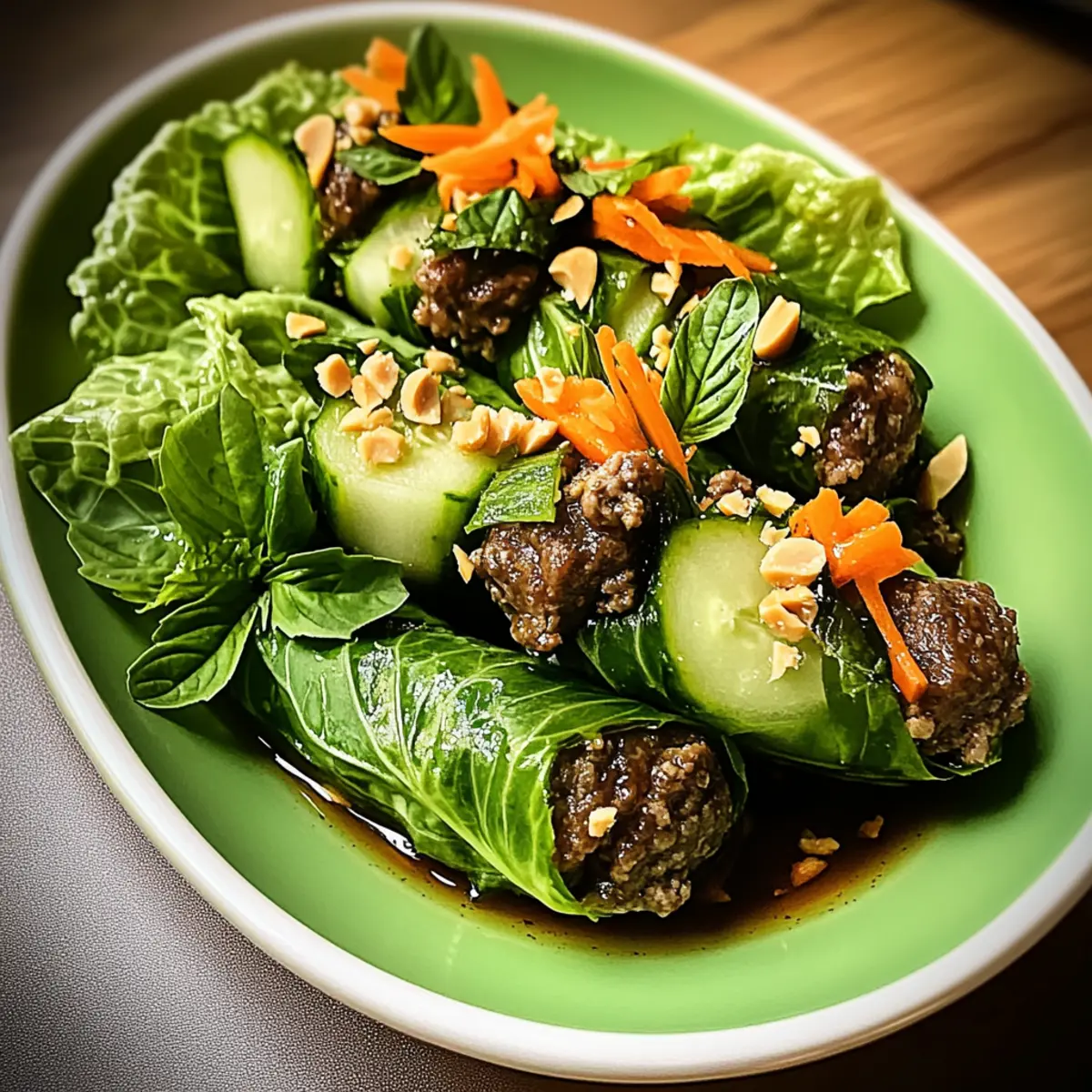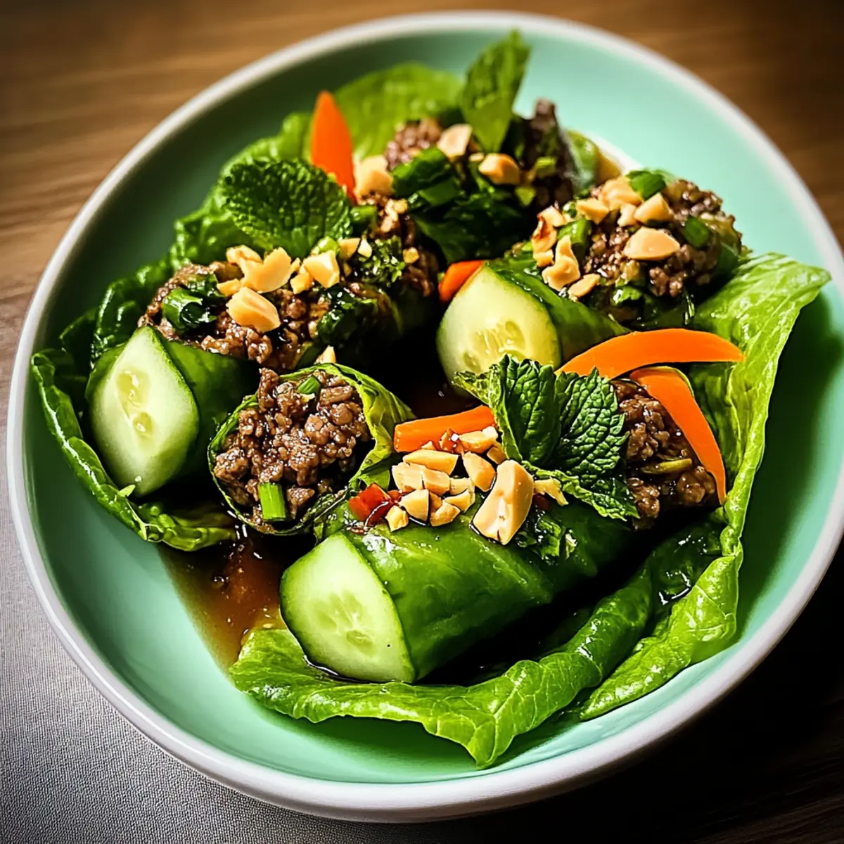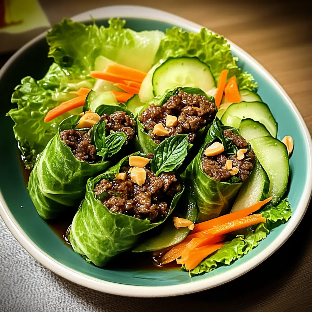 Jump to Recipe Print RecipeAs the aroma of sizzling garlic and ginger enveloped my kitchen, I couldn’t help but feel that life had delivered a little slice of Thailand right to my doorstep. These Thai Basil Beef Rolls are not just an appetizer; they’re a celebration of fresh ingredients and bold flavors that transport you straight to the bustling streets of Bangkok. In just a short time, you can craft these delightful rolls, perfect for impressing guests or simply enjoying a flavorful weeknight dinner. With options for gluten-free sauces and the flexibility to use lighter proteins like ground chicken or turkey, there’s something for everyone to savor. Curious to roll up your own delicious adventure? Why Are Thai Basil Beef Rolls Amazing? Fresh Ingredients make every bite burst with flavor, allowing the vibrant aromas of garlic, ginger, and Thai basil to shine through. Easy to Prepare: With simple steps, you can whip these up in no time, making them perfect for busy nights or last-minute guests. Versatile Options: Feel free to swap in ground chicken or turkey for a lighter take, or try them vegetarian-style without sacrificing taste. Crowd-Pleaser: Whether served at a gathering or as a family dinner, these rolls will impress everyone at the table. Plus, they pair beautifully with refreshing drinks like cold Thai iced tea! Thai Basil Beef Rolls Ingredients • Discover the freshness that makes these Thai Basil Beef Rolls a must-try! For the Filling Ground Beef – Provides a hearty and protein-rich base; substitute ground chicken or turkey for a lighter option. Vegetable Oil – Neutral cooking medium for sautéing ingredients quickly; canola or avocado oil works well too. Garlic (minced) – Adds savory depth and aroma; fresh garlic gives the best flavor, but garlic powder can suffice. Fresh Ginger (minced) – Brightens the dish with a spicy kick; fresh ginger is optimal, with powdered ginger as an alternative. Soy Sauce – Brings umami richness; opt for tamari to make it gluten-free. Fish Sauce – Adds complexity and saltiness; use gluten-free fish sauce if desired. Oyster Sauce – Contributes richness and a touch of sweetness; can be omitted for a vegetarian option. Brown Sugar – Balances savory and salty elements; honey or maple syrup can be used as alternatives. Chili Paste – Provides heat and depth; adjust according to your spice preference. Fresh Thai Basil Leaves – Signature herb with anise-like aroma; regular basil can work in a pinch. For the Wrap Large Lettuce Leaves (e.g., Boston or Bibb) – Acts as the wrap for the filling; collard greens are a sturdier alternative. Carrot (julienned) – Adds crunch and sweetness; feel free to substitute with bell peppers. Cucumber (julienned) – Provides hydration and freshness; zucchini sticks also work well. Chopped Peanuts – Contributes a salty crunch; omit for nut-free dietary needs or substitute with sunflower seeds. Lime Wedges – Serve fresh for a zesty finish, enhancing the flavors of the rolls! Step‑by‑Step Instructions for Thai Basil Beef Rolls Step 1: Sauté Aromatics Heat 2 tablespoons of vegetable oil in a large skillet over medium-high heat. Once hot, add 3 cloves of minced garlic and 1 tablespoon of minced fresh ginger. Sauté for about 1 minute until fragrant, stirring constantly to prevent burning. This aromatic base will infuse the Thai Basil Beef Rolls with delicious flavor right from the start. Step 2: Brown the Beef Add 1 pound of ground beef to the skillet, breaking it apart with a wooden spoon. Cook for 5 to 7 minutes, stirring occasionally, until the beef is fully browned and no longer pink. If there is excess fat, carefully drain it off to keep the filling for your Thai Basil Beef Rolls nice and light. Step 3: Mix in Sauces Reduce the heat to medium and stir in 2 tablespoons of soy sauce, 1 tablespoon of fish sauce, and 2 tablespoons of oyster sauce. Add 1 tablespoon of brown sugar and 1-2 teaspoons of chili paste, depending on your spice preference. Simmer the mixture for 2 to 3 minutes until the sauce thickens slightly, evenly coating the beef and enhancing the flavors of your Thai Basil Beef Rolls. Step 4: Add the Basil Toss in 1 cup of fresh Thai basil leaves, stirring gently to incorporate. Cook for just 1 to 2 minutes until the basil wilts. This final addition will add an aromatic and fresh element, making your Thai Basil Beef Rolls even more delightful and inviting. Step 5: Cool the Filling Remove the skillet from the heat and transfer the beef mixture to a bowl, allowing it to cool slightly for about 5 minutes. This step ensures the filling is not too hot to handle, making it easier to assemble the Thai Basil Beef Rolls without tearing the lettuce leaves. Step 6: Assemble the Rolls Take large lettuce leaves and place a generous spoonful of the beef mixture in the center of each leaf. Top the filling with julienned carrots and cucumbers, along with a sprinkle of chopped peanuts for added crunch. The fresh ingredients will create a vibrant and enticing flavor profile in your Thai Basil Beef Rolls. Step 7: Roll and Secure Gently fold the sides of the lettuce over the filling and roll it tightly from the bottom up. If needed, secure the rolls with toothpicks to keep them intact. This method creates beautiful, bite-sized Thai Basil Beef Rolls that are perfect for enjoying as an appetizer or a light meal. Step 8: Serve with Lime Serve the assembled Thai Basil Beef Rolls immediately with fresh lime wedges on the side. Squeezing the lime juice over each roll adds a zesty finish and elevates the flavors, ensuring a vibrant and refreshing experience with every bite. Enjoy your beautiful creation! Expert Tips for Thai Basil Beef Rolls Choose Fresh Herbs: Use organic Thai basil for the best aroma and flavor; it’ll elevate your Thai Basil Beef Rolls immensely. Cook Thoroughly: Ensure the ground beef is fully browned to avoid any raw spots, which keeps your rolls safe and delicious. Don’t Overf