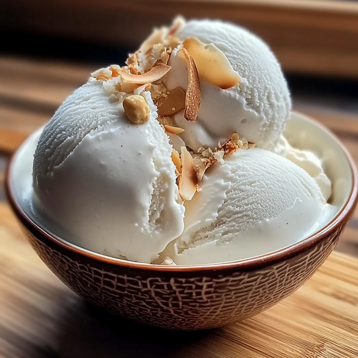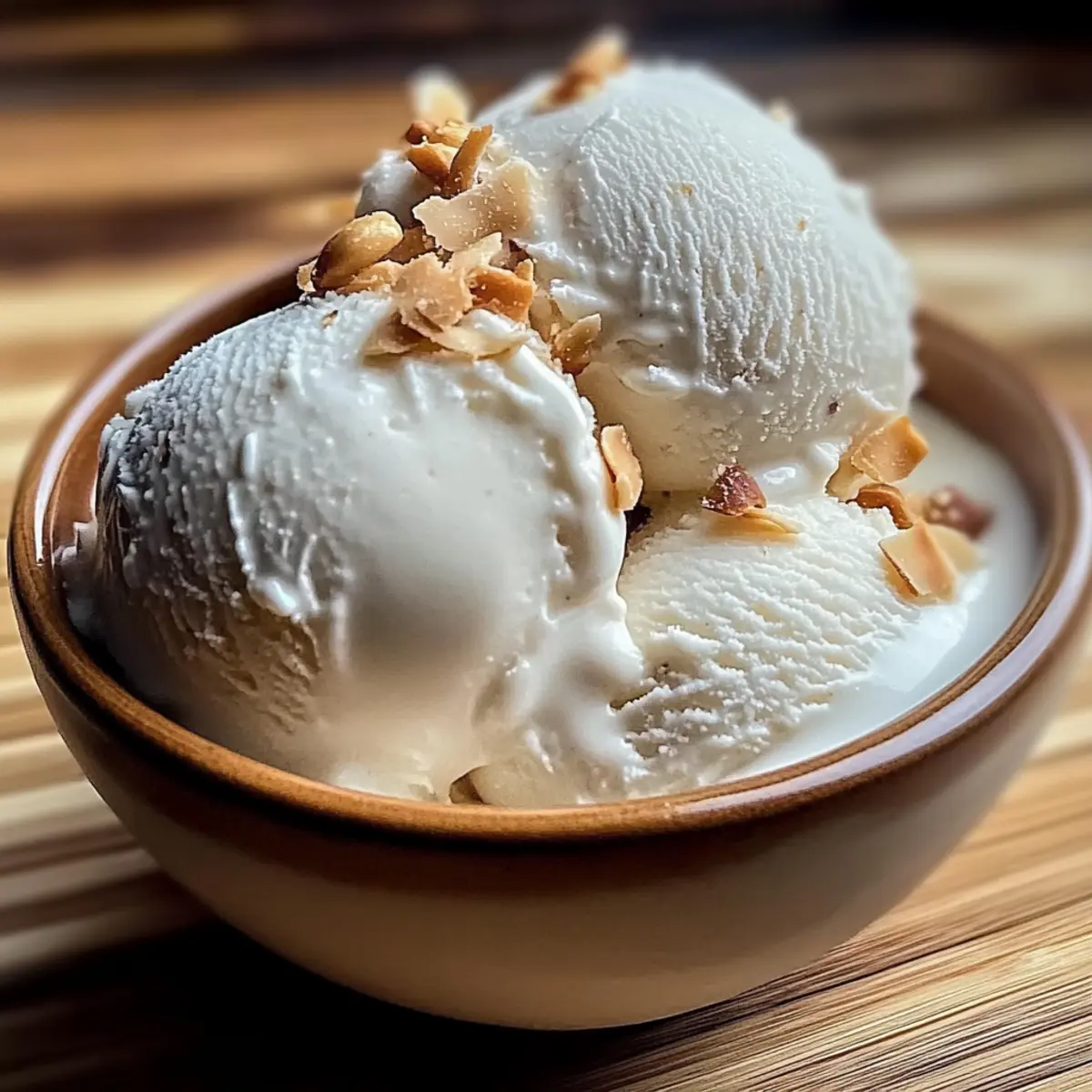 Jump to Recipe Print RecipeHave you ever craved a taste of the tropics right from your kitchen? With this easy Vegan Thai Coconut Milk Ice Cream, you can indulge in a refreshing dessert that’s both creamy and delightful. Best of all, there’s no ice cream machine required! This recipe offers endless customization options to suit your taste buds and dietary needs, making it not just a treat but a delectable solution for summer gatherings and warm evenings. Imagine indulging in your favorite flavor twist or opting for a vegan version with just a simple ingredient swap. Are you ready to discover the secrets to creating a creamy, dreamy ice cream that will impress your family and friends? Let’s dive in! What makes this ice cream special? Creamy, Dreamy Texture: The combination of coconut milk and evaporated milk results in a luscious, velvety ice cream that’s simply irresistible. Vegan-Friendly Option: By swapping sweetened condensed milk for coconut condensed milk, this dessert accommodates everyone, making it a crowd favorite. No Machine Required: Say goodbye to bulky ice cream makers! This recipe can be easily made in your kitchen with just a few simple steps. Endless Customization: Whether you want a chocolate delight or fruit fusion, the variations are limitless to match your cravings. Pair it with your favorite toppings or serve it beside a delicious Baked Mac Cheese for an unforgettable dessert experience! Quick and Easy: With a straightforward preparation process, you’ll have a refreshing treat ready in just a few hours, perfect for those impromptu summer gatherings. Tropical Taste: Transport your taste buds to sunny shores with each bite – this ice cream is like a mini-vacation in a bowl! Thai Coconut Milk Ice Cream Ingredients • Indulge your senses with these simple yet essential ingredients! For the Creamy Base Coconut Milk – Provides the rich, tropical flavor; opt for full-fat for extra creaminess. Evaporated Milk – Adds a luxurious texture; substitute with more coconut milk for a vegan-friendly version. Cornstarch – Thickens the mixture, ensuring a smooth, creamy ice cream; make sure to dissolve it fully to avoid lumps. Sweetened Condensed Milk – Balances the flavors with sweetness and richness; switch to coconut condensed milk for a vegan option. Salt – Elevates the overall flavor and perfectly balances the sweetness. Vanilla Extract – Brings in aromatic notes; use high-quality extract for the best taste. For the Toppings Roasted Peanuts – Adds a delightful crunch that complements the creamy texture. Coconut Flakes – Enhances coconut flavor and texture; choose toasted or plain for added interest. Step‑by‑Step Instructions for Thai Coconut Milk Ice Cream Step 1: Heat Dairy Mix In a medium saucepan over low heat, combine the coconut milk and evaporated milk. Gently whisk the mixture for about 5 minutes until it warms up and starts to steam, ensuring not to boil. You’ll notice a lovely coconut aroma filling your kitchen as the milks blend seamlessly. Step 2: Activate Cornstarch Gradually whisk in the cornstarch, ensuring it’s fully dissolved. Continue stirring for 2-3 minutes, watching for the mixture to thicken and become smooth. You’ll want a slightly viscous consistency, indicating that the Thai Coconut Milk Ice Cream base is ready for the next step. Step 3: Sweeten and Flavor Remove the saucepan from heat and add the sweetened condensed milk, vanilla extract, and a pinch of salt. Stir until everything is well combined, and the mixture tastes sweet yet balanced. The creaminess and aroma will transport you to a tropical paradise as you prepare for the freeze. Step 4: Cool and Freeze Let the mixture cool to room temperature before transferring it to an airtight container. Place it in the freezer for about 6 hours, stirring every 30-45 minutes for the first 3 hours to prevent ice crystals from forming. You’ll see it transform into a creamy, luscious Thai Coconut Milk Ice Cream. Step 5: Serve with Flair Once frozen, allow the ice cream to soften slightly at room temperature for 5-10 minutes before scooping. Serve it in bowls or cones, garnished with your choice of roasted peanuts or coconut flakes. The delightful textures and flavors make this treat truly special! Make Ahead Options These Easy Vegan Thai Coconut Milk Ice Creams are ideal for busy home cooks looking to streamline their meal prep! You can prepare the ice cream base up to 24 hours in advance, allowing you to simply mix, chill, and freeze at your convenience. To do this, complete the first three steps of the recipe: heat the dairy mix, activate the cornstarch, and sweeten the mixture; then, let it cool before refrigerating in an airtight container. This method helps maintain the creamy texture and prevents ice crystals. When you’re ready to enjoy, transfer the chilled mixture to the freezer and follow the final steps for a refreshing dessert that’s just as delicious as if made fresh that day! Expert Tips for Thai Coconut Milk Ice Cream Stirring is Key: Stir the mixture every 30-45 minutes during the freezing process to achieve a creamy texture and avoid ice crystals. Taste Test: Always taste the mixture before freezing to adjust the sweetness. This ensures your Thai Coconut Milk Ice Cream is just how you like it! Storage Wisdom: Use an airtight container for storage to maintain the ice cream’s creaminess; it lasts up to 2 weeks in the freezer. Cooling Time: Let the mixture cool to room temperature before freezing to prevent condensation, ensuring a smoother final product. Quality Ingredients: Opt for high-quality coconut milk and extracts for the best flavor, making your ice cream truly delightful. What to Serve with Easy Vegan Thai Coconut Milk Ice Cream? Indulging in a scoop of tropical delight calls for the perfect accompaniments to elevate your dessert experience. Fresh Mango Salsa: The sweet and zesty flavors of mango salsa offer a refreshing contrast, complementing t