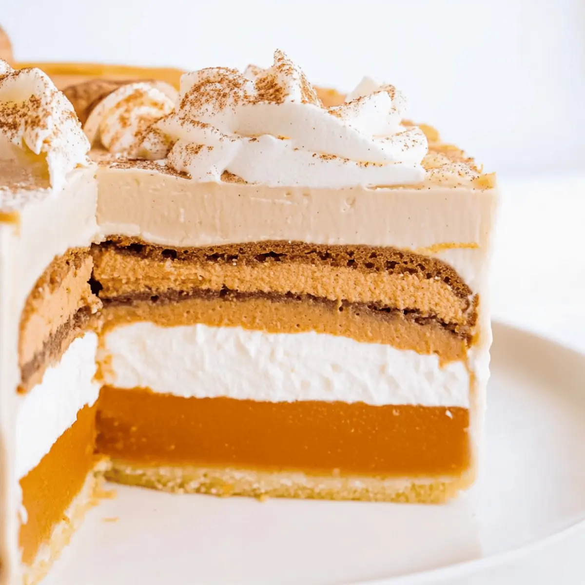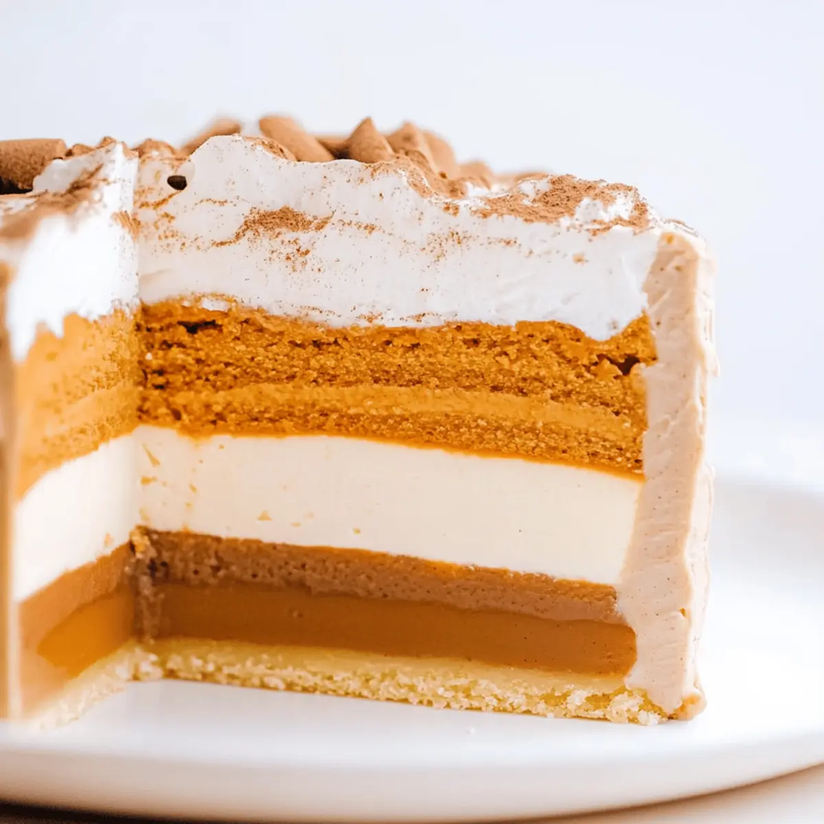 Jump to Recipe Print RecipeAs I stood in my kitchen, the warm scents of cinnamon and nutmeg filled the air, transporting me straight to cozy Thanksgiving gatherings. This year, I decided to take holiday indulgence to the next level with a Thanksgiving Piecaken—a stunning masterpiece that merges the soul-soothing flavors of pumpkin pie, creamy cinnamon cheesecake, and spiced cake, all rolled into one delightful dessert. Not only is this multi-layered cake a feast for the eyes, but it also promises a delicious twist on traditional holiday flavors that your family will rave about. Plus, with a little planning, preparing this showstopper is surprisingly easy and perfect for impressing guests without spending all day in the kitchen. Ready to create a dessert that will redefine your Thanksgiving table? Let’s dive in! Why is Piecaken the Ultimate Thanksgiving Dessert? Indulgence at Its Finest: This Thanksgiving Piecaken takes festive flavors to new heights, layering creamy cheesecake and spiced cake for an unforgettable bite. Visual Showstopper: Its stunning layers create an impressive centerpiece that will have guests asking for seconds. Flexibility: You can easily swap ingredients to suit your tastes, such as using chocolate cake or different pie flavors, as I mention in the variation ideas. Surprisingly Simple: With a little planning, this recipe simplifies traditional desserts without sacrificing flavor, making it efficient for any home cook. Family-Friendly: Perfect for gatherings, this multi-layered beauty is bound to impress and satisfy everyone at your holiday table! Thanksgiving Piecaken Ingredients • Dive into the delightful layers of this Thanksgiving Piecaken recipe with quality ingredients that bring festive cheer to your table. For the Cheesecake Layer Cream Cheese – Provides a creamy texture; ensure it’s softened for optimal mixing. Granulated Sugar – Sweetens the cheesecake; no substitutes recommended for perfect sweetness. All-Purpose Flour – Helps set the cheesecake; gluten-free flour can be used if needed. Vanilla Extract – Adds depth of flavor; opt for pure vanilla for the best results. Ground Cinnamon – Enhances flavor; try Saigon cinnamon for a richer taste. Heavy Whipping Cream – Adds richness; use whipped topping for a lighter version. Large Eggs – Binds the cheesecake; room-temperature eggs mix more smoothly. For the Spice Cake Layer All-Purpose Flour – Key structure for the cake; consider store-bought spice cake mix for convenience. Baking Powder – Acts as a leavening agent; ensure freshness for proper rise. Ground Ginger, Nutmeg, Cloves, Allspice – Freshly ground spices boost flavor; choose these for a richer cake experience. Butter (softened) – Adds moisture and richness; can be substituted with unsalted margarine. Brown Sugar – Provides deep sweetness and moisture; no direct substitutes for the best flavor. Vegetable Oil – Adds moisture; can be replaced with applesauce for a lighter cake. Milk – Hydrates the batter; almond milk can serve as a non-dairy alternative. For the Pumpkin Pie Layer Store-bought Pumpkin Pie – Quick and easy; homemade pumpkin pie is equally tasty if you prefer. For the Frosting Unsalted Butter – Base for the frosting; adds richness and creaminess. Powdered Sugar – Sweetens and thickens the frosting; no substitutes recommended for texture. Vanilla Extract (frosting) – Enhances flavor; use a good quality extract. Heavy Whipping Cream (frosting) – Makes frosting fluffy; whipped topping can be a substitute here. Step‑by‑Step Instructions for Thanksgiving Piecaken Step 1: Prepare Cheesecake Layer Preheat your oven to 350°F (175°C). In a mixing bowl, beat the softened cream cheese until smooth and creamy. Gradually mix in granulated sugar, flour, vanilla extract, ground cinnamon, and heavy whipping cream until well combined. Add the eggs one at a time, mixing gently after each addition. Pour this rich mixture into a greased springform pan and bake for 10 minutes, then reduce the temperature to 200°F (93°C) and continue baking for 30-35 minutes, or until the center is slightly jiggly. Cool the cheesecake completely, then refrigerate overnight. Step 2: Make Spice Cake Layer While the cheesecake cools, preheat the oven again to 350°F (175°C). In a large mixing bowl, whisk together the dry ingredients: all-purpose flour, baking powder, and spices. In a separate bowl, cream the softened butter with brown sugar until fluffy, then add vegetable oil, eggs, and milk, mixing until smooth. Gradually incorporate the dry mixture into the wet ingredients until just combined. Pour the batter into a greased cake pan and bake for 15-17 minutes, or until a toothpick comes out clean. Allow to cool, then refrigerate overnight. Step 3: Prepare Frosting In a mixing bowl, beat softened unsalted butter until fluffy and pale. Gradually add powdered sugar and a sprinkle of ground cinnamon, mixing until fully integrated. Drizzle in the vanilla extract and heavy whipping cream while continuing to beat until the frosting is light and fluffy. This creamy frosting will perfectly complement the layers of your Thanksgiving Piecaken, and it’s best to set it aside while you prepare the assembly. Step 4: Assemble the Thanksgiving Piecaken Once all layers are chilled and firm, carefully trim any domed tops of the cheesecake and spice cake for even stacking. Start by placing the cheesecake layer on a serving stand and spread a layer of frosting on top. Gently place the spice cake layer over the cheesecake and frost the top generously. Finally, add your store-bought pumpkin pie on top, frosting the outer sides of the piecaken to create a beautiful finish. Make sure everything is well-frosted and refrigerate until set, ideally for an hour. Step 5: Serve and Enjoy After chilling, your Thanksgiving Piecaken is ready to be served! Carefully slice through the layers so everyone can enjoy the delightful contrasts of the creamy cheeseca