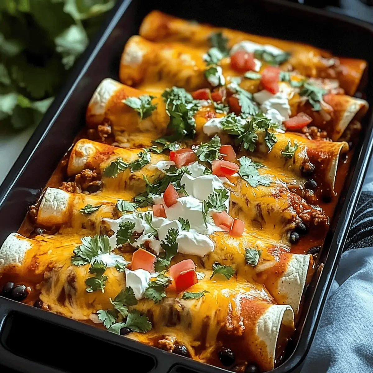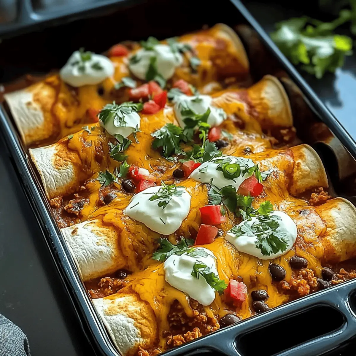 After baking, let the enchiladas rest for 5 minutes before serving. This time allows everything to set a bit. Serve warm, topped with your favorite garnishes like sour cream, fresh cilantro, and slices of avocado for that perfect finishing touch to your tasty Turkey Black Bean Enchiladas.