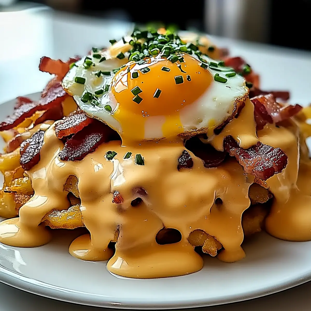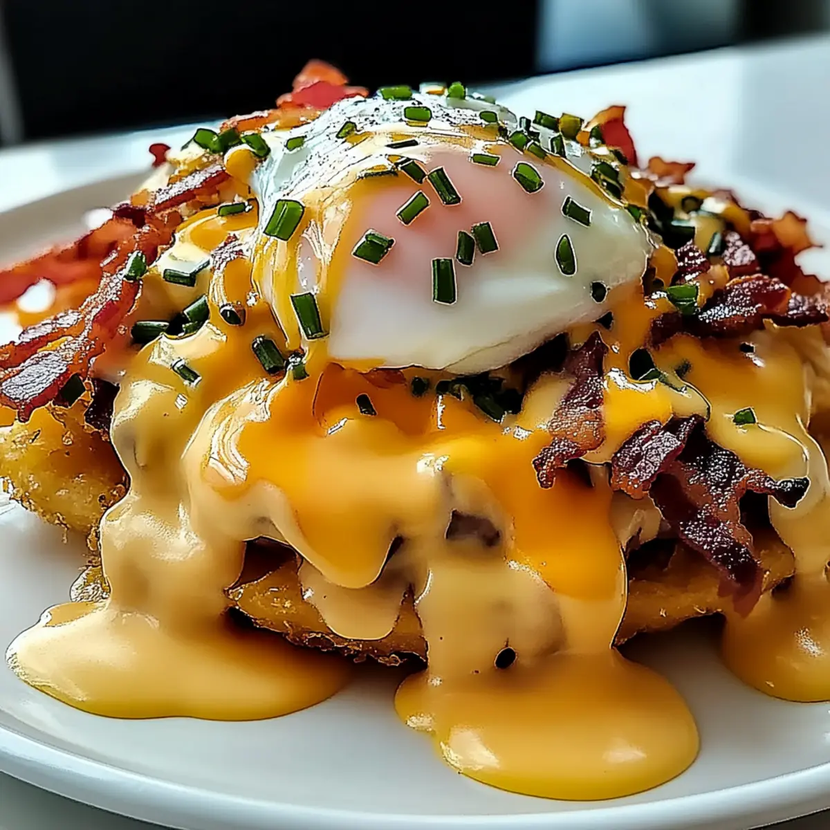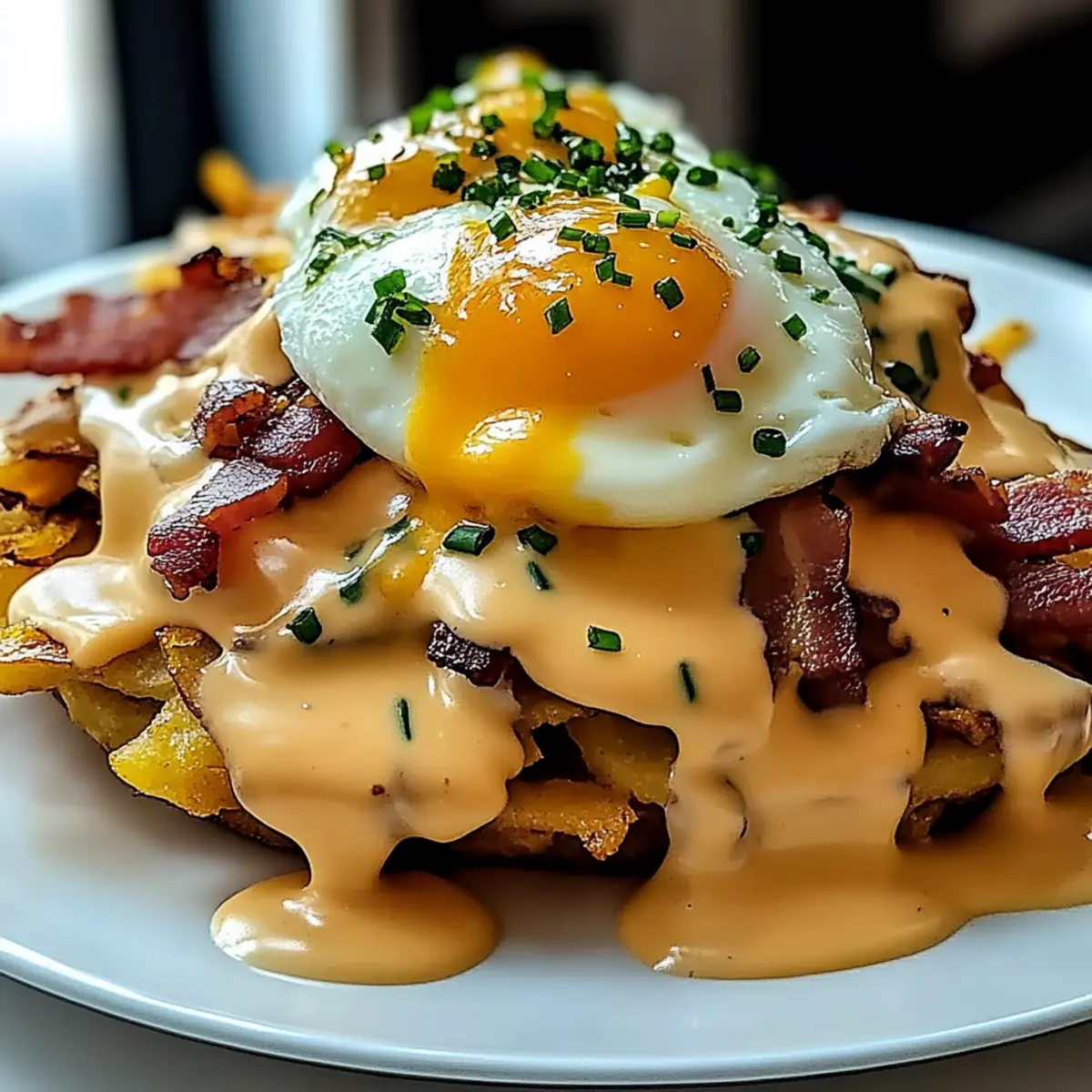 Jump to Recipe Print RecipeThere’s a cozy little café I adore that serves a breakfast dish so hearty it could make any morning feel like a special occasion. That’s where I first fell in love with poutine, and today, I want to share my version: the Ultimate Breakfast Poutine with Velvety Hollandaise! This dish masterfully combines crispy hash browns, savory beef bacon, and a rich hollandaise sauce that transforms your standard breakfast into an indulgent delight. Besides being a crowd-pleaser, this recipe is also meal prep-friendly and endlessly customizable—perfect for accommodating whatever you have on hand. Whether you’re hosting friends for brunch or just treating yourself, this comforting dish promises to satisfy your cravings and keep you coming back for more. Ready to elevate your breakfast routine? Let’s dive in! Why is Breakfast Poutine Irresistible? Hearty Comfort: The Ultimate Breakfast Poutine is the perfect way to indulge in a comforting and filling meal, combining crispy hash browns, savory beef bacon, and a luscious hollandaise sauce. Customizable Creations: Tailor this dish to suit your taste—experiment with various toppings like smoked gouda, turkey bacon, or veggies for a delightful twist! Quick & Easy: With its straightforward preparation, you’ll have gourmet brunch on the table in no time, making it ideal for busy mornings or weekend gatherings. Crowd-Pleasing Flavor: This recipe is guaranteed to impress your guests and family alike, ensuring everyone leaves the table satisfied. If you’re looking for more brunch ideas, consider my Grilled Shrimp Bowl for a vibrant twist or Salmon Pesto Butter for a unique flavor experience! Ultimate Breakfast Poutine Ingredients For the Base • Frozen Hash Browns – A crispy base that brings texture; homemade hash browns can be used for a personal touch. • Olive Oil – Essential for crispiness and flavor; any high-smoke-point oil will work in a pinch. • Salt – Enhances all flavors; adjust according to your taste. • Black Pepper – Adds an optional touch of heat and seasoning. For the Toppings • Beef Bacon – Adds savory richness and crunch; swap for turkey bacon or sausage for variety. • Shredded Cheddar Cheese – Melts beautifully for creaminess; any melty cheese can replace it. • Shredded Mozzarella Cheese – Offers a delightful, stringy texture; consider provolone or fontina as substitutes. • Gravy – Ties the dish together with richness; choose between homemade or store-bought for convenience. • Large Eggs – Poached for that perfect runny yolk; use egg whites only or skip poaching for scrambled eggs. For the Hollandaise Sauce • Unsalted Butter – Key to achieving the creaminess; make sure it’s unsalted for better flavor control. • Egg Yolks – Crucial for the thickness of your hollandaise; cannot substitute directly. • Dijon Mustard – Adds a tangy kick; optional but highly recommended. • Apple Cider Vinegar – Provides that necessary acidity; white wine vinegar can be a good alternative. • Lemon Juice – Brightens up the hollandaise flavor; lime juice can also be used. • Cayenne Pepper – Just a hint of heat; adjust according to your preference. For Garnish • Fresh Chives or Parsley – Adds a pop of freshness and color to your dish. This Ultimate Breakfast Poutine with Velvety Hollandaise is not just a meal; it’s an experience you’ll cherish for every delightful bite! Step‑by‑Step Instructions for Ultimate Breakfast Poutine with Velvety Hollandaise Step 1: Prepare Hash Browns Preheat your oven to 425°F (220°C). While it heats, toss frozen hash browns with olive oil, salt, and black pepper in a large bowl, ensuring they’re well coated. Spread them evenly on a baking sheet in a single layer. Bake for 20-30 minutes, flipping halfway through, until they are golden and crispy, providing a delightful base for your Ultimate Breakfast Poutine. Step 2: Cook Beef Bacon While the hash browns are baking, arrange the beef bacon strips on another baking sheet in a single layer. Place the bacon in the preheated oven at 400-425°F (200-220°C) and bake for 15-20 minutes. Keep an eye on them, ensuring they become crispy and golden brown, adding that delicious savory richness to your brunch. Step 3: Make Hollandaise Sauce Set up a double boiler over simmering water, ensuring the bowl doesn’t touch the water. In a mixing bowl, whisk egg yolks, Dijon mustard, apple cider vinegar, and lemon juice until the mixture thickens and lightens in color, about 3-5 minutes. Gradually incorporate melted unsalted butter while whisking continuously until the sauce achieves a velvety texture. Stir in a pinch of cayenne pepper to add a subtle hint of heat. Step 4: Poach Eggs Bring a pot of water to a gentle simmer, adding a splash of vinegar to help the eggs hold their shape. Crack each egg into a small bowl, then gently slide them into the simmering water. Poach the eggs for about 3-4 minutes until the whites are set but the yolks remain runny. Carefully remove the eggs with a slotted spoon and set aside, ready to crown your Ultimate Breakfast Poutine. Step 5: Assemble Poutine To create your Ultimate Breakfast Poutine, start by layering crispy hash browns on plates. Top them off with a generous sprinkle of shredded cheddar and mozzarella cheese, followed by hot gravy, allowing it to melt the cheese. Add the crispy beef bacon on top, followed by the perfectly poached eggs. Drizzle the warm hollandaise sauce generously over the entire dish, finishing with a sprinkle of fresh chives or parsley for a burst of color. Ultimate Breakfast Poutine Variations Feel free to get creative and customize your Ultimate Breakfast Poutine to make it your own! Turkey Bacon: Swap beef bacon for turkey bacon for a leaner, lower-fat option without sacrificing flavor. Cheesy Upgrade: Experiment with cheese by using gouda or a mix of pepper jack and cheddar for a spicy kick. Melting different cheeses can elev