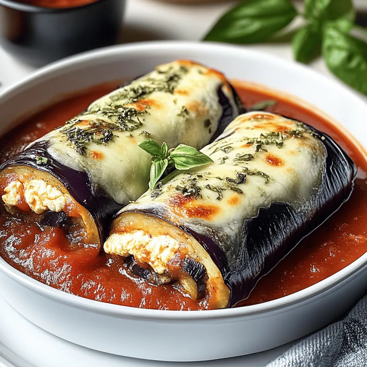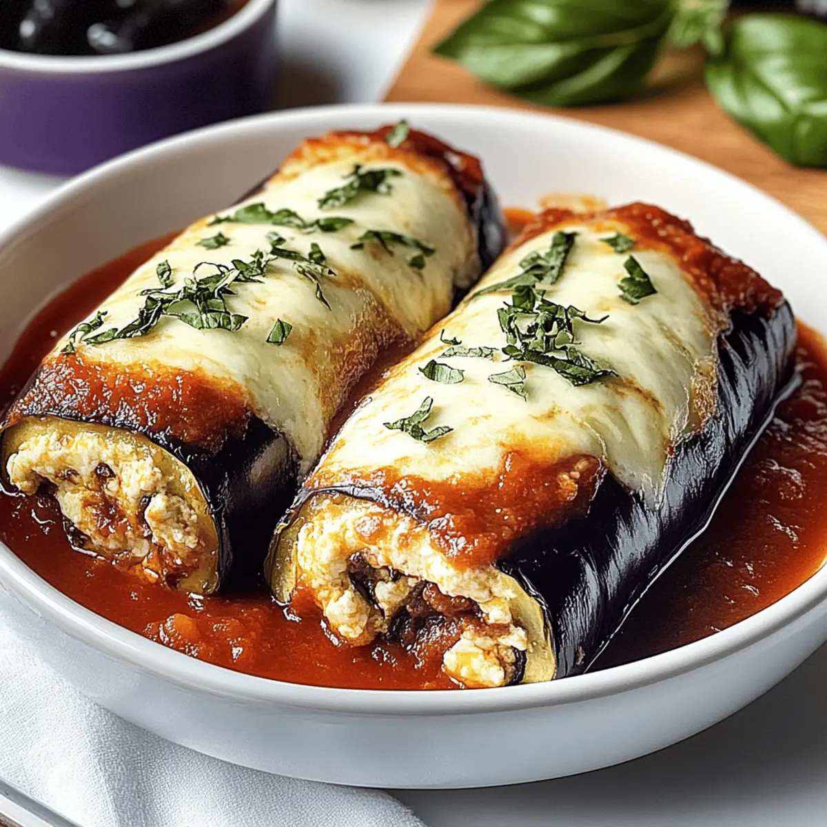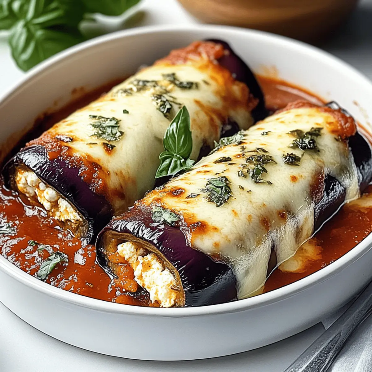 Jump to Recipe Print RecipeAs I stood in my kitchen, the aroma of roasting aubergines filled the air, instantly transporting me to a bustling Italian trattoria. There’s something magical about Vegetarian Aubergine Rollatini; it’s a dish that wraps tender, roasted aubergine around a creamy ricotta filling, soaked in savory marinara sauce, and topped with melty mozzarella cheese. Not only is this recipe a delightful twist on traditional Italian cuisine, but it’s also incredibly satisfying, making it perfect for cozy dinners or impressing friends at gatherings. Plus, it’s simple to whip up, letting you enjoy the process without the stress. Who wouldn’t want a comforting meal that’s as nourishing as it is delicious? Dive in with me, and let’s explore how to create this beautiful, vibrant dish that promises to become a new favorite at your table! Why is Vegetarian Aubergine Rollatini a Must-Try? Hearty, Comforting: This dish is the ultimate comfort food, combining tender aubergine with a rich, creamy filling that satisfies cravings in every bite. Flexibility: With various filling and herb options, you can easily customize this rollatini to suit your taste preferences. Whether you want a spicy kick or a nutritious boost with spinach, the possibilities are endless! Quick Preparation: This recipe saves you time without sacrificing quality. Most of the prep can be done in under an hour—perfect for those busy weeknights. Perfect for Entertaining: Impress your guests with a dish that looks as beautiful as it tastes. With gooey melted cheese and vibrant marinara, it’s sure to be a showstopper at your next gathering. Dish to Share: Sharing this Vegetarian Aubergine Rollatini makes every meal special. Serve it alongside a fresh salad or some garlic bread, and you’re set for a delightful dining experience! Experience even more Italian flavors by checking out our guide on Italian cooking essentials. Vegetarian Aubergine Rollatini Ingredients For the Rollatini • Aubergines (Eggplants) – Choose firm ones without blemishes for the best texture. • Ricotta Cheese – This adds the creaminess that binds the filling together. • Shredded Mozzarella – Melts beautifully to create a gooey topping. • Fresh Basil – Offers a burst of aromatic freshness in each bite. • Marinara Sauce – Essential for flavor and moisture; use store-bought or homemade copies. For the Filling • Parmesan Cheese – Enhances the depth and savory richness of the filling. • Garlic – Provides an essential aromatic flavor; fresh is best, but garlic powder works too. • Olive Oil – For brushing the aubergines to enhance roasting flavor and prevent sticking. Optional Variations • Chopped Spinach – Fold into the filling for a nutritious boost. • Crushed Red Pepper Flakes – Add for a spicy kick to elevate the flavors. • Nutritional Yeast – Substitute for Parmesan for a dairy-free option. Step‑by‑Step Instructions for Vegetarian Aubergine Rollatini Step 1: Preheat the Oven Preheat your oven to 375°F (190°C) while you prepare your baking dish. Lightly coat a 9×13-inch baking dish with cooking spray or a drizzle of olive oil to prevent sticking. This step ensures your Vegetarian Aubergine Rollatini bakes evenly, creating that delicious golden-brown top we all crave. Step 2: Prepare the Aubergines Slice the aubergines into thin, even strips, aiming for about 1/4 inch thick. Brush each slice generously with olive oil and sprinkle with salt to enhance their flavor. Arrange the slices in a single layer on a baking sheet to ensure even roasting. This preparation helps achieve tender, flavorful slices that will roll beautifully. Step 3: Roast the Aubergines Place the baking sheet in the preheated oven and roast the aubergine slices for about 15 minutes. They should be softened but still hold their shape, making them easier to roll. Keep an eye on them until they achieve that perfect tender texture; this step is essential for creating delightful Vegetarian Aubergine Rollatini. Step 4: Make the Filling In a medium bowl, combine ricotta cheese, half of the mozzarella, minced garlic, grated Parmesan, salt, and pepper. Stir in chopped fresh basil for that aromatic touch. Mix thoroughly until well combined. This creamy filling will provide a rich contrast to the roasted aubergines, making every bite of your rollatini satisfying and delicious. Step 5: Assemble the Rollatini Once the aubergine slices are cool enough to handle, spoon a generous amount of the ricotta filling onto one end of each slice. Carefully roll the slice away from you, tucking in the filling, and place it seam-side down in your prepared baking dish. Repeat this process until all slices are filled, creating a beautiful array of rollatini. Step 6: Finish Baking Pour marinara sauce evenly over the assembled rollatini, ensuring each roll is well-coated for maximum flavor and moisture. Top with the remaining mozzarella cheese, allowing it to melt beautifully during baking. Bake in the oven for 20-25 minutes, until the rollatini are bubbly and golden brown. Enjoy the wonderful aroma wafting through your kitchen as they bake! What to Serve with Vegetarian Aubergine Rollatini As you indulge in the comforting layers of flavors within your rollatini, consider these delightful accompaniments that elevate your meal experience. Garlic Bread: This classic pairing brings a crispy, buttery texture that complements the soft rollatini perfectly, soaking up every delicious sauce drop. Fresh Green Salad: A crisp, vibrant salad with mixed greens, cherry tomatoes, and a zesty vinaigrette adds a refreshing contrast to the hearty rollatini. Steamed Broccoli: Tender, bright green broccoli not only offers a nutritious boost but also enhances your plate’s color, harmonizing beautifully with the rich flavors of the rollatini. Bruschetta: The crunchy, toasted bread topped with fresh tomatoes and basil provides sweetness and acidity, balancing the creamy fi