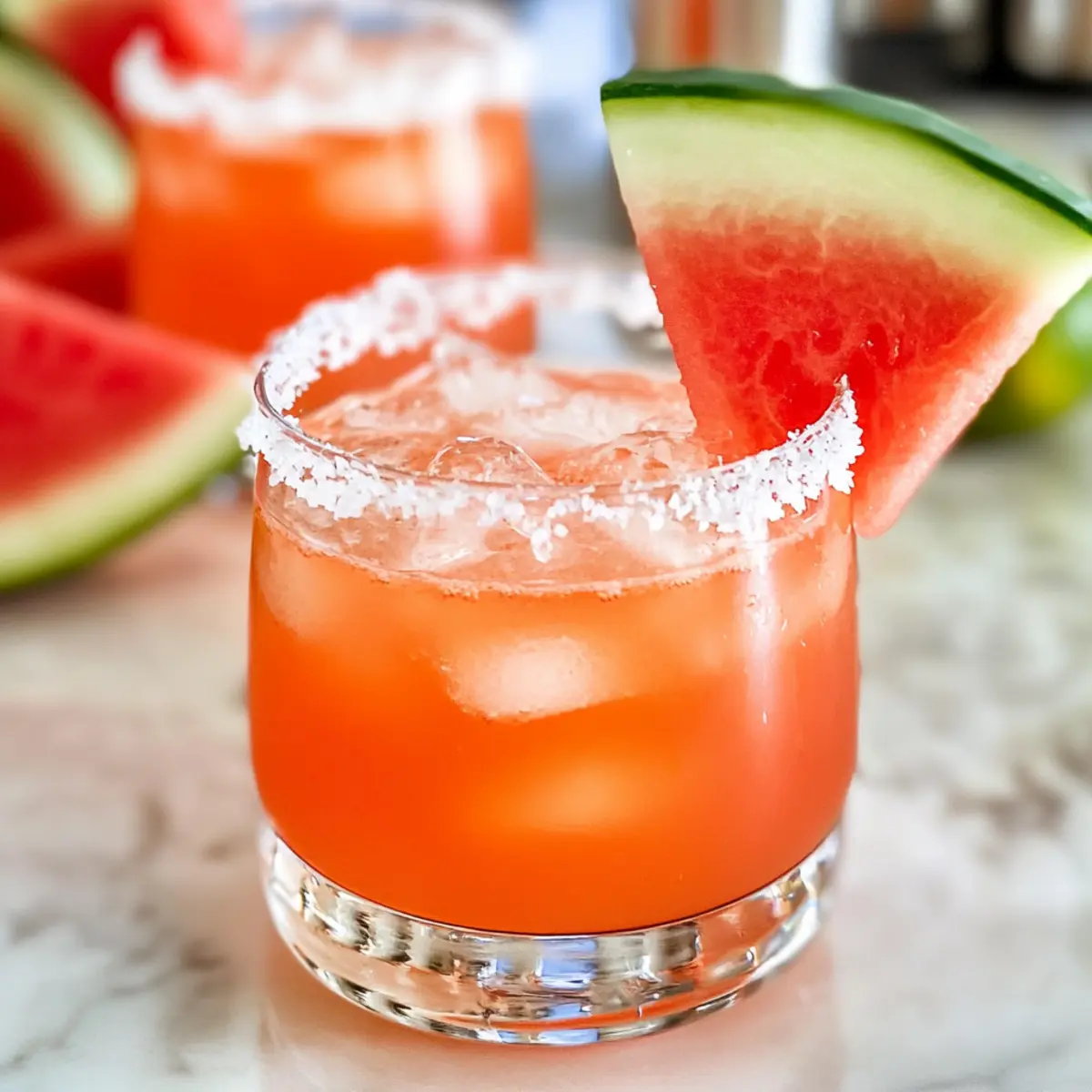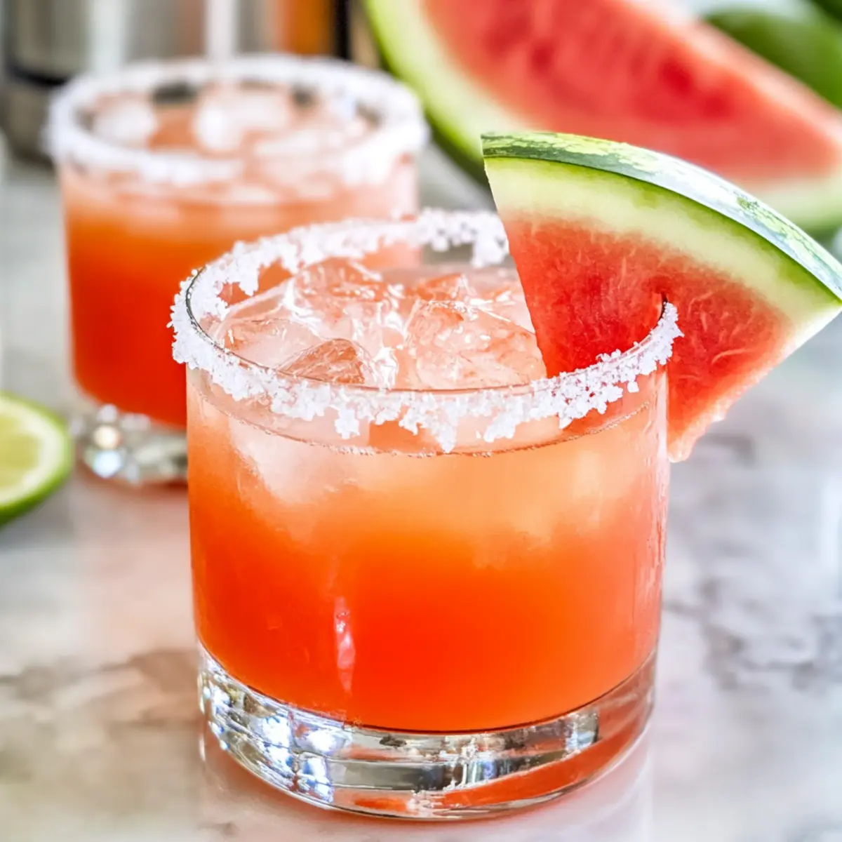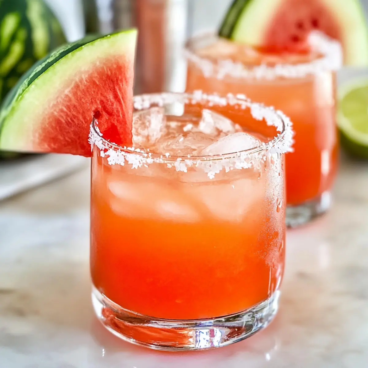 Jump to Recipe Print RecipeAs I poured the last of the summer sun into my blender, it struck me how effortlessly nature gifts us with flavors that instantly lift our spirits. That’s exactly what this Watermelon Margarita Mocktail is all about—a vibrant, hydrating drink that captures the essence of summer in every sip. With the sweet juiciness of fresh watermelon paired with a zesty lime twist, this refreshing mocktail is perfect for sunny afternoons or festive gatherings. Plus, it’s sprinkled with HydroFLEX™ drink powder to support your hydration goals, making it a smart choice for wellness enthusiasts. Whether you’re hosting a backyard BBQ or simply needing a rejuvenating pick-me-up, this delightful concoction promises to tick all the boxes. Curious about how to whip up this thirst quencher? Let’s dive into the recipe! Why is this Watermelon Mocktail a must-try? Quenching Refreshment: This mocktail is a burst of hydration, making it perfect for hot summer days. Flavorful Fusion: The combination of sweet watermelon and zesty lime ensures a delightful balance that delights the taste buds. Wellness Boost: Infused with HydroFLEX™, it not only tastes great but also supports optimal hydration. Easy to Make: With simple ingredients and quick prep, it’s perfect for anyone, whether a home cook or a pro. Versatile Pleasure: Enjoy it at parties, picnics, or as a revitalizing afternoon drink; it suits any occasion! Watermelon Margarita Mocktail Ingredients For the Mocktail Fresh Watermelon – This sweet fruit is the star of the show, providing natural hydration and flavor. Fresh Lime Juice – Adds a zesty kick that beautifully balances the sweetness; use fresh for the best taste. HydroFLEX™ Drink Powder – Helps maintain hydration levels; a similar electrolyte powder can be substituted if needed. Water – Use to dilute; sparkling water can create a fizzy twist, while coconut water adds extra flavor. Salt (for rimming) – Enhances the overall flavor profile; or try tahini for a unique twist! Optional Garnish Lime Wedge – A fresh lime wedge adds a pop of color and extra citrus aroma. Watermelon Slice – For a vibrant, eye-catching presentation. This delightful Watermelon Margarita Mocktail is not only refreshing but also a health-conscious choice that will keep your hydration on point! Step‑by‑Step Instructions for Watermelon Margarita Mocktail Step 1: Prepare the Watermelon Begin by cutting your fresh watermelon into chunks, about 1-inch pieces. Place these vibrant watermelon cubes into a blender bottle or pitcher. To achieve optimal flavor and hydration, ensure the watermelon is ripe and juicy, as this will significantly enhance the sweetness of your Watermelon Margarita Mocktail. Step 2: Muddle the Watermelon Using a muddler or the back of a wooden spoon, gently press down on the watermelon cubes to release their delicious juices, about 1-2 minutes. Avoid over-muddling to prevent a slushy texture; you want to maintain some chunky bits for added texture. The luscious pink juice should start flowing, filling the bottle with its natural sweetness. Step 3: Add Lime Juice Squeeze fresh lime juice directly into the muddled watermelon mix. About 2 tablespoons will provide a delightful zesty contrast to the sweetness of the watermelon. Stir gently to combine the lime with the watermelon juice. This step is essential, as the fresh lime will enhance the overall flavor profile of your Watermelon Margarita Mocktail. Step 4: Mix in HydroFLEX™ and Water Next, add your HydroFLEX™ drink powder into the mix, followed by about 1 cup of water for dilution. Choose sparkling water for a fizzy variation or coconut water for added flavor. Secure the lid on your blender bottle and shake vigorously for 30 seconds, allowing all ingredients to blend well and create a refreshing hydration powerhouse. Step 5: Rim the Glass While your mocktail mixture is coming together, take a glass and moisten the rim with a lime wedge. Dip the rim into a plate of salt (or tahini if you prefer), ensuring a nice even coating. This step enhances the drink’s flavor and adds a gourmet touch to your Watermelon Margarita Mocktail presentation. Step 6: Assemble Your Mocktail Fill your prepared glass with ice to keep the mocktail chilled. Carefully pour the watermelon-lime mixture over the ice, allowing the vibrant pink hue to shine through. The combination of ice and mixed ingredients will create a refreshing drink, perfect for sunny days or festive occasions. Step 7: Garnish and Serve Finish off your Watermelon Margarita Mocktail with a stylish garnish. Add a fresh lime wedge and a slice of watermelon on the rim for a pop of color. Serve immediately to enjoy the refreshing flavors at their best, quenching your thirst with this delightful beverage that embodies the essence of summer. What to Serve with Watermelon Margarita Mocktail? Enjoying a vibrant and refreshing mocktail is just the start of a perfect summer gathering; let’s explore what complements this delightful drink! Spicy Guacamole: The creamy avocado paired with zesty lime offers a delicious contrast to the watermelon’s sweetness. Tropical Fruit Salad: A medley of fresh fruits like mango and pineapple adds a burst of freshness that echoes the mocktail’s lightness. Each bite mingles perfectly with the drink, creating a symphonic flavor that’s hard to resist. Chilled Cucumber Soup: This cooling soup is refreshing and light, ensuring the flavors of the watermelon mocktail shine while providing a satisfying, hydrating starter. Grilled Shrimp Skewers: The smoky, charred flavor of shrimp enhances the natural sweetness of the mocktail. Imagine sweet watermelon mingling with savory shrimp for a delightful contrast. Zucchini Fritters: These crispy bites lend a savory touch, balancing the refreshing sweetness of the drink. Serve with a light yogurt dip for dipping—every bite is a crunchy delight that pairs wonderfully. Sparkling Water with Mint: Infuse