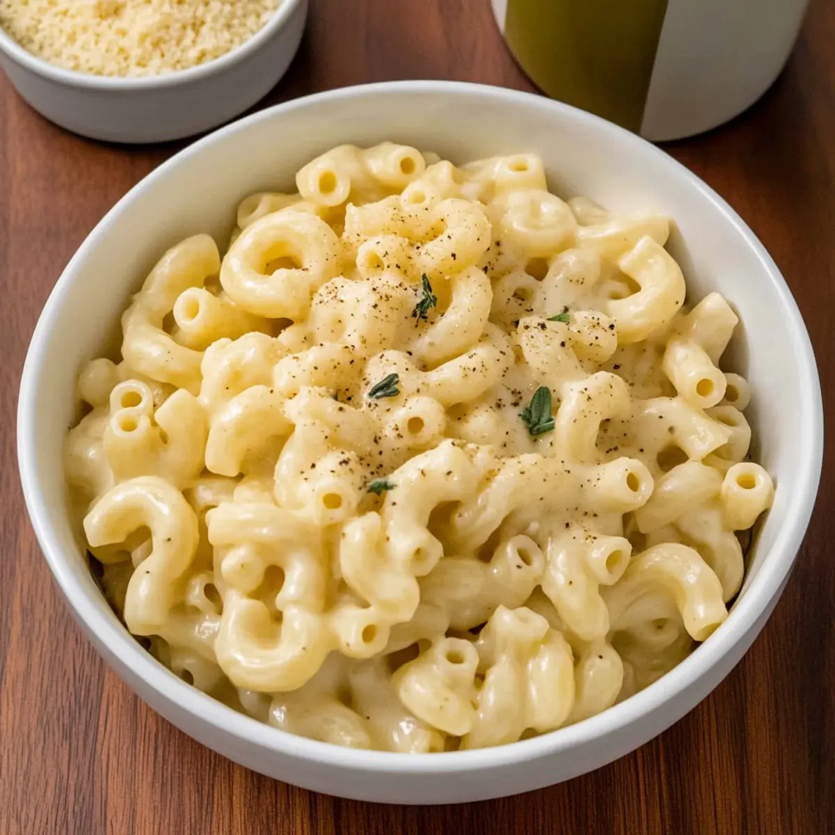 Jump to Recipe Print RecipeAs I stood in my kitchen, the sun streaming in, I couldn’t help but feel a twinge of nostalgia for the creamy comfort of my childhood. Today, I’m bringing that warm feeling back with my 15-Minute One-Pot White Cheddar Mac and Cheese. Not only is this dish a delightful quick meal that can be prepared in no time, but it also promises an easy clean-up, made all in a single pot! With just four simple ingredients, I’ve discovered an effortless way to satisfy those cheesy cravings without succumbing to takeout. The secret? Cooking the pasta in vegetable broth adds an extraordinary depth of flavor that’ll have your family asking for seconds. So, are you ready to whisk away the worries of fast food and create a comforting bowl of homemade goodness that’s irresistibly creamy? Let’s dive in! Why is This Mac and Cheese Special? Quick and Convenient: In just 15 minutes, you have a delicious meal ready to go! Perfect for those busy weeknights when time is tight. One-Pot Wonder: Say goodbye to extensive cleanup! Everything cooks together in a single pot, making this a hassle-free option for both cooks and clean-up crews. Irresistible Creaminess: Using vegetable broth adds a depth of flavor that will elevate your mac and cheese. It’s creamy, cheesy, and oh-so-satisfying! Customizable Delight: Feel free to mix in some veggies or proteins for an extra boost. Think about adding cooked chicken or even broccoli for a heartier meal inspired by my favorite Chicken Mac Cheese. Crowd-Pleasing Flavor: This White Cheddar Mac and Cheese will make everyone’s taste buds dance! Trust me, your family will keep asking for more and more! White Cheddar Mac and Cheese Ingredients • Discover the simple ingredients that make this dish a creamy delight! For the Pasta Vegetable Broth – Acts as a flavorful cooking liquid to enrich the pasta with taste; low sodium chicken broth can also be used for a non-vegetarian option. Elbow Macaroni – The perfect pasta shape that provides great texture and bite; short pasta shapes like shells or rotini can be used if needed. For the Creamy Sauce Milk – Adds a luscious creaminess to the sauce; any milk type works, including dairy-free options like almond or oat milk. White Cheddar Cheese – Delivers sharp, rich flavor and a creamy texture; freshly grated cheese melts beautifully, and alternatives like yellow cheddar or a cheese blend can be fun to try. For Seasoning Salt and Pepper – Essential for enhancing flavor; adjust to taste depending on your preference. Step‑by‑Step Instructions for White Cheddar Mac and Cheese Step 1: Boil the Broth In a large pot, pour in 4 cups of vegetable broth and bring it to a rolling boil over medium-high heat. This flavorful cooking liquid will enhance the overall taste of your White Cheddar Mac and Cheese. Keep an eye on the broth as it heats up; you’ll notice small bubbles forming on the surface as it nears boiling. Step 2: Cook the Pasta Once the broth is boiling, add 2 cups of elbow macaroni to the pot. Stir occasionally to ensure the pasta doesn’t stick together, and reduce the heat to medium-high. Cook for about 8-10 minutes until the pasta is tender and most of the liquid has thickened and been absorbed, leaving a creamy texture. Step 3: Adjust the Pasta If the macaroni is slightly undercooked and most of the broth has been absorbed, don’t fret! Simply add ¼ cup of water to the pot and cook for an additional 2 minutes. This will help finish cooking the pasta while preserving its chewy bite, making for a perfect base for your White Cheddar Mac and Cheese. Step 4: Create the Sauce Lower the heat to medium and pour in 1 cup of milk, stirring gently. Gradually add 2 cups of freshly grated white cheddar cheese, mixing continuously until it melts and creates a smooth, creamy sauce. This step should take about 2 minutes, and your kitchen will start to smell heavenly as the sauce thickens. Step 5: Season to Perfection Now it’s time to elevate the flavor of your White Cheddar Mac and Cheese! Season with salt and pepper to taste. Stir well to incorporate the seasoning, tasting along the way until you achieve the perfect balance of flavors that will leave your taste buds dancing with joy. White Cheddar Mac and Cheese Variations Feel free to add your personal touch to this creamy delight by exploring these fun variations! Dairy-Free: Use almond or oat milk and a dairy-free cheese blend for a delicious vegan option. You’ll still get that creamy delight without any dairy! Protein Boost: Incorporate cooked chicken or tofu for a satisfying protein punch, transforming this dish into a filling meal. Whether it’s grilled chicken or crispy tofu, the added texture will excite your palate. Veggie Explosion: Mix in steamed broccoli or spinach to sneak in some greens. The vibrant color and flavor boost will enhance not only the taste but also the nutrition of your mac and cheese. Cheesy Blend: Try mixing different cheeses like Gruyère or Monterey Jack for a delightful depth of flavor. Each cheese adds its unique essence, creating a symphony of cheesy goodness. Spice it Up: Add a pinch of cayenne pepper or red chili flakes to elevate the heat levels. This will give your mac and cheese a spicy kick that contrasts beautifully with the creamy sauce. Herb Infusion: Stir in fresh herbs like basil or thyme for an aromatic twist. The fresh herbs will provide a delightful pop of flavor that takes your dish to the next level. Top with Crunch: Finish with crispy breadcrumbs or crushed crackers on top before serving. This adds a delightful crunch that contrasts perfectly with the creamy mac and cheese. Comforting Add-ins: For a heartier dish, consider adding sautéed mushrooms or caramelized onions. These ingredients bring a rich, comforting element that will keep everyone coming back for seconds. If you’re looking for a full meal, think about pairing it with a comforting Chili Cheese Dog or a classic Baked Mac Ch