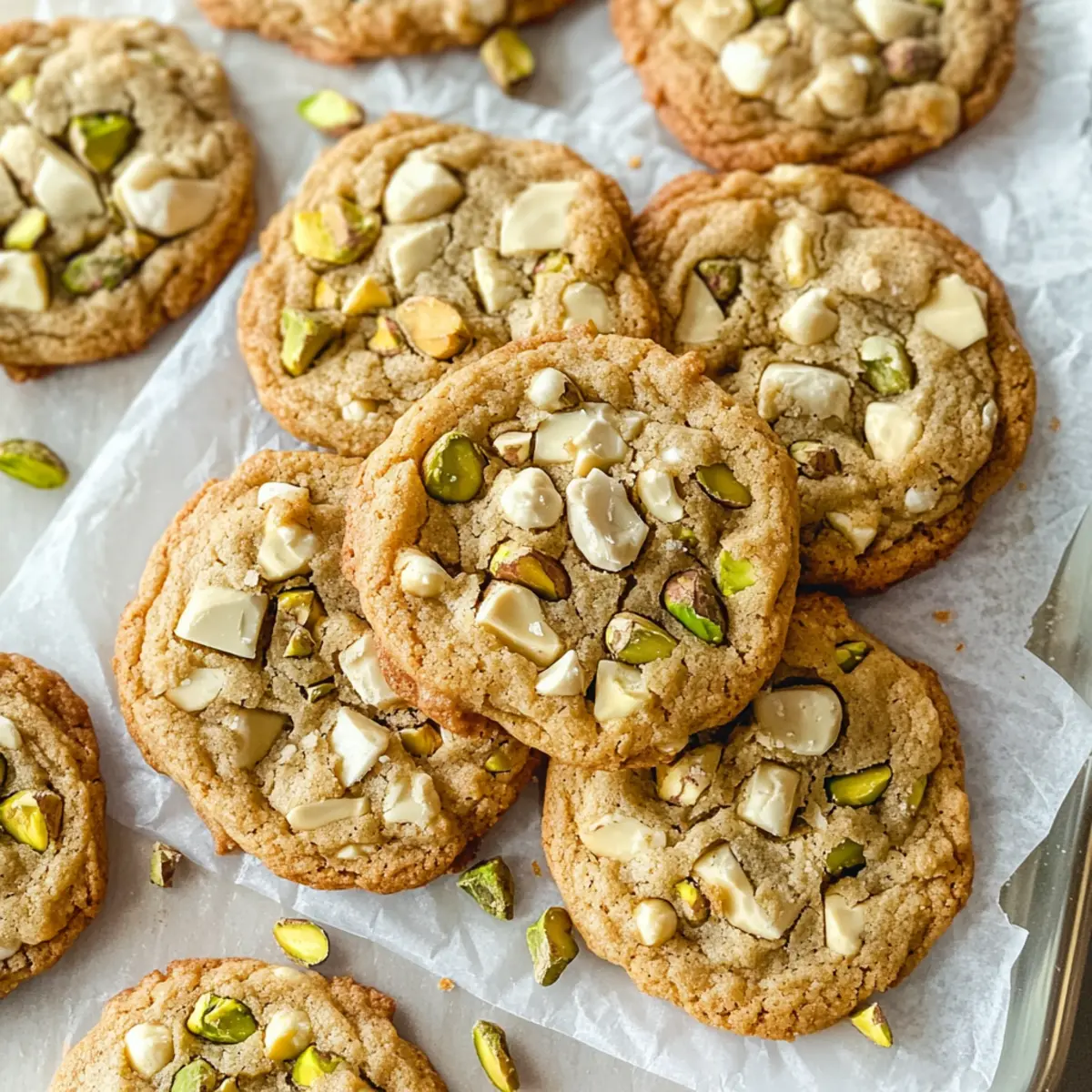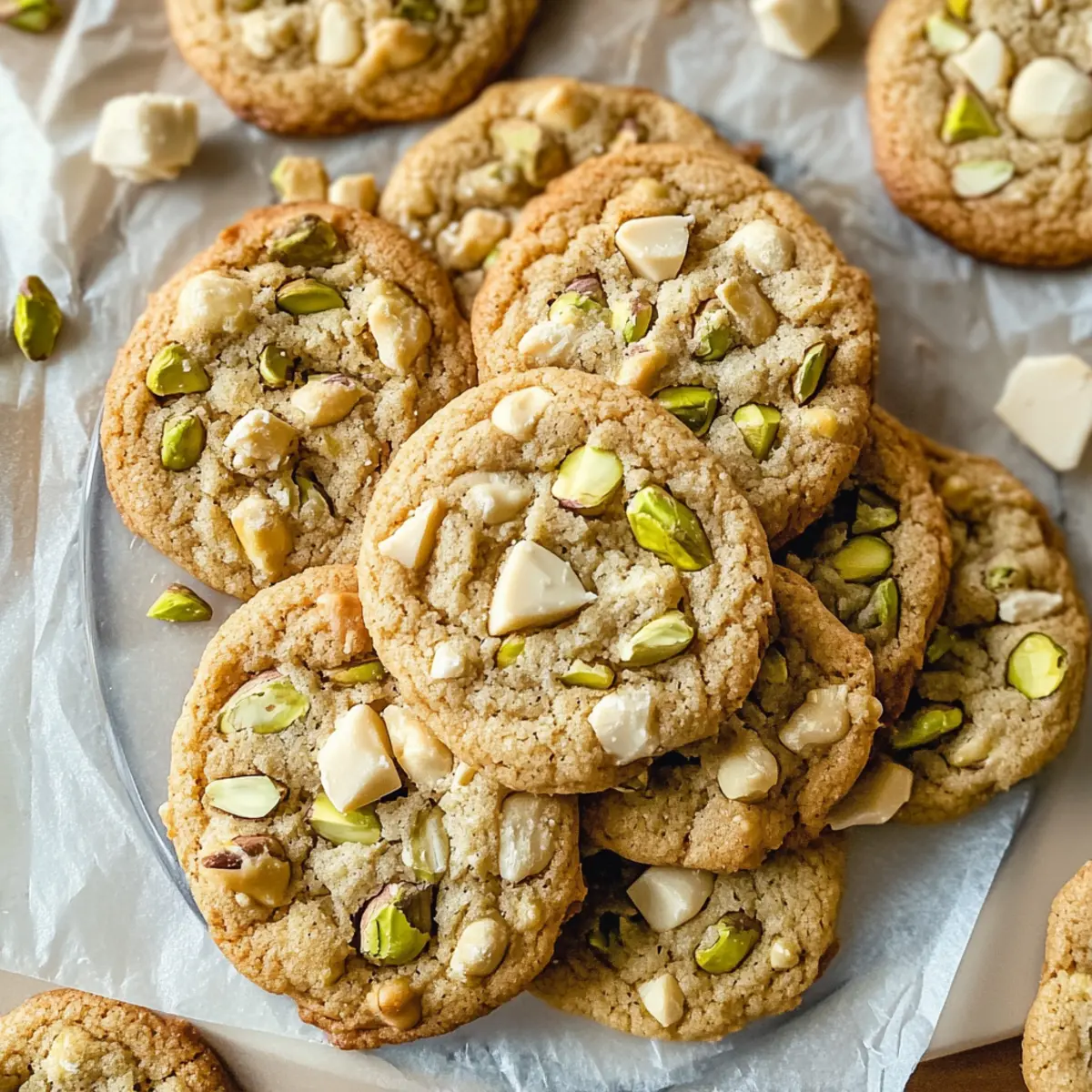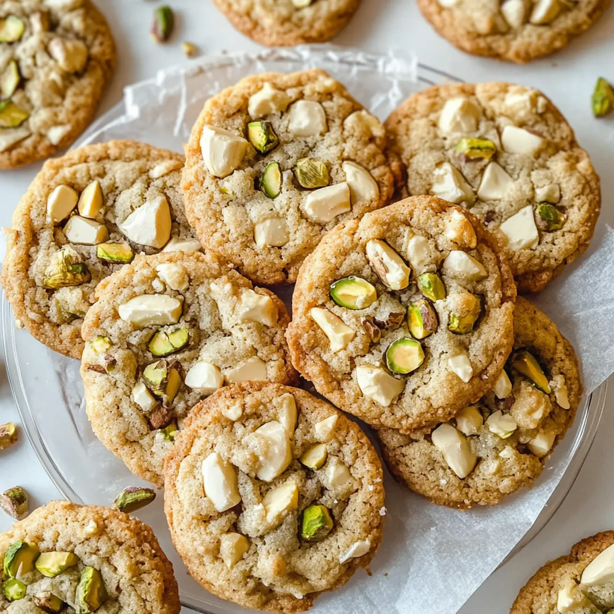 Jump to Recipe Print RecipeAs the aroma of baking cookies fills the air, it’s hard not to feel a wave of comfort wash over me. That’s the magic of these White Chocolate Pistachio Cookies! With their perfect balance of creamy white chocolate and crunchy pistachios, they’re not just delightful to taste but also a feast for the eyes, making them an irresistible treat for any holiday gathering. The best part? They come together quickly, making them a fantastic option for those last-minute gift ideas or cozy nights in. Whether you’re sharing them with friends or indulging solo, you’ll savor the soft, chewy texture paired with a hint of cinnamon that warms your heart. Ready to create a batch that will leave everyone wanting more? Why are these cookies so irresistible? Irresistible Flavor: The creamy white chocolate and crunchy pistachios create a decadent combination that’s simply unforgettable. Quick to Make: With straightforward steps, these cookies come together in no time—perfect for busy bakers and unexpected guests. Party-Worthy Treat: Their festive appearance makes them an ideal treat for holiday gatherings, charming everyone at the table. Customizable Options: Feel free to experiment—switching white chocolate for dark chocolate, or using walnuts instead of pistachios offers endless personalization. Perfect for Gifting: Pack them in a beautiful box to share with loved ones or to brighten someone’s day, just like my Gingerbread Oatmeal Cookies do! White Chocolate Pistachio Cookies Ingredients For the Cookie Dough Unsalted Butter – Adds richness and contributes to a soft texture; best at room temperature for easy creaming. Brown Sugar – Provides moisture and a hint of caramel flavor; essential for that sweet, chewy texture. Granulated Sugar – Sweetens the cookies and promotes spreading; balances well with the richness of white chocolate. Large Egg – Acts as a binder for texture; using it at room temperature improves emulsification. Vanilla Extract – Enhances flavor depth, making each bite even more delightful. All-Purpose Flour – Main structure of the cookies; ensure careful measurement for the best results. Cornstarch – Softens texture and promotes a chewier cookie; a little goes a long way! Baking Soda – The leavening agent for lift; ensure it’s fresh for optimal results. Baking Powder – Provides additional structure; another key player in achieving the perfect cookie. Salt – Balances the flavors and enhances the sweetness; don’t skip this important ingredient! Cinnamon – Adds warmth and a hint of spice; perfectly complements the other flavors. For the Mix-Ins Unsalted Pistachios – Provides crunch and nuttiness; best when toasted and roughly chopped for added flavor. White Chocolate Bar – Adds creamy sweetness; can be replaced with milk or dark chocolate for a different taste experience. These White Chocolate Pistachio Cookies are incredibly simple yet luxurious, making them unforgettable treats for any occasion! Enjoy baking and sharing these delicious delights. Step‑by‑Step Instructions for White Chocolate Pistachio Cookies Step 1: Preheat Your Oven Begin by preheating your oven to 350°F (175°C). While it’s heating, prepare two baking sheets by lining them with parchment paper. This step ensures an easy release of your cookies and saves you from sticky cleanup later. Step 2: Mix Wet Ingredients In a stand mixer fitted with a paddle attachment, cream together ¾ cup of unsalted butter with ¾ cup of brown sugar and ½ cup of granulated sugar for 1-2 minutes until light and fluffy. Then, add in 1 large room temperature egg and 2 teaspoons of vanilla extract, mixing until just combined for a beautifully rich and aromatic base. Step 3: Combine Dry Ingredients In a separate bowl, whisk together 1¾ cups of all-purpose flour, 1 tablespoon of cornstarch, 1 teaspoon of baking soda, ½ teaspoon of baking powder, ½ teaspoon of salt, and ½ teaspoon of cinnamon. Gradually add this dry mixture to your wet ingredients, mixing on low speed until the dough is just blended, ensuring you don’t overmix for a tender cookie. Step 4: Incorporate Add-Ins Gently fold in 5 ounces of roughly chopped toasted pistachios and 4 ounces of chopped white chocolate using a spatula. Be sure to reserve some pistachios and chocolate for topping. This incorporation adds delightful textures and flavors to your White Chocolate Pistachio Cookies. Step 5: Shape Cookies Using a cookie scoop, portion out dough balls and place them onto the prepared baking sheets, ensuring they are about 2 inches apart for space to spread. Press the reserved pistachios and white chocolate chunks on top of each dough ball for that irresistible visual appeal. Step 6: Bake the Cookies Carefully place your baking sheets in the preheated oven and bake for 10-12 minutes. Watch for the edges to turn golden while the centers remain soft—this is the sweet spot for soft and chewy White Chocolate Pistachio Cookies. Step 7: Cool and Serve Once baked, remove the cookies from the oven and allow them to rest on the baking sheets for at least 10 minutes. This resting period helps them firm up before transferring them to a wire rack to cool completely, making them all the more delicious when you indulge! How to Store and Freeze White Chocolate Pistachio Cookies Room Temperature: Store cookies in an airtight container at room temperature for up to 3 days to maintain their soft, chewy texture. Fridge: If you want them to last a bit longer, you may refrigerate the cookies for up to 1 week. Just be sure to use an airtight container to keep them fresh. Freezer: For long-term storage, freeze the cookies in a single layer on a baking sheet before transferring them to an airtight container or zip-top bag. They can be frozen for up to 3 months. Reheating: To enjoy your frozen White Chocolate Pistachio Cookies, simply thaw them at room temperature for about 30 minutes, then warm them in the oven at 350°F (175