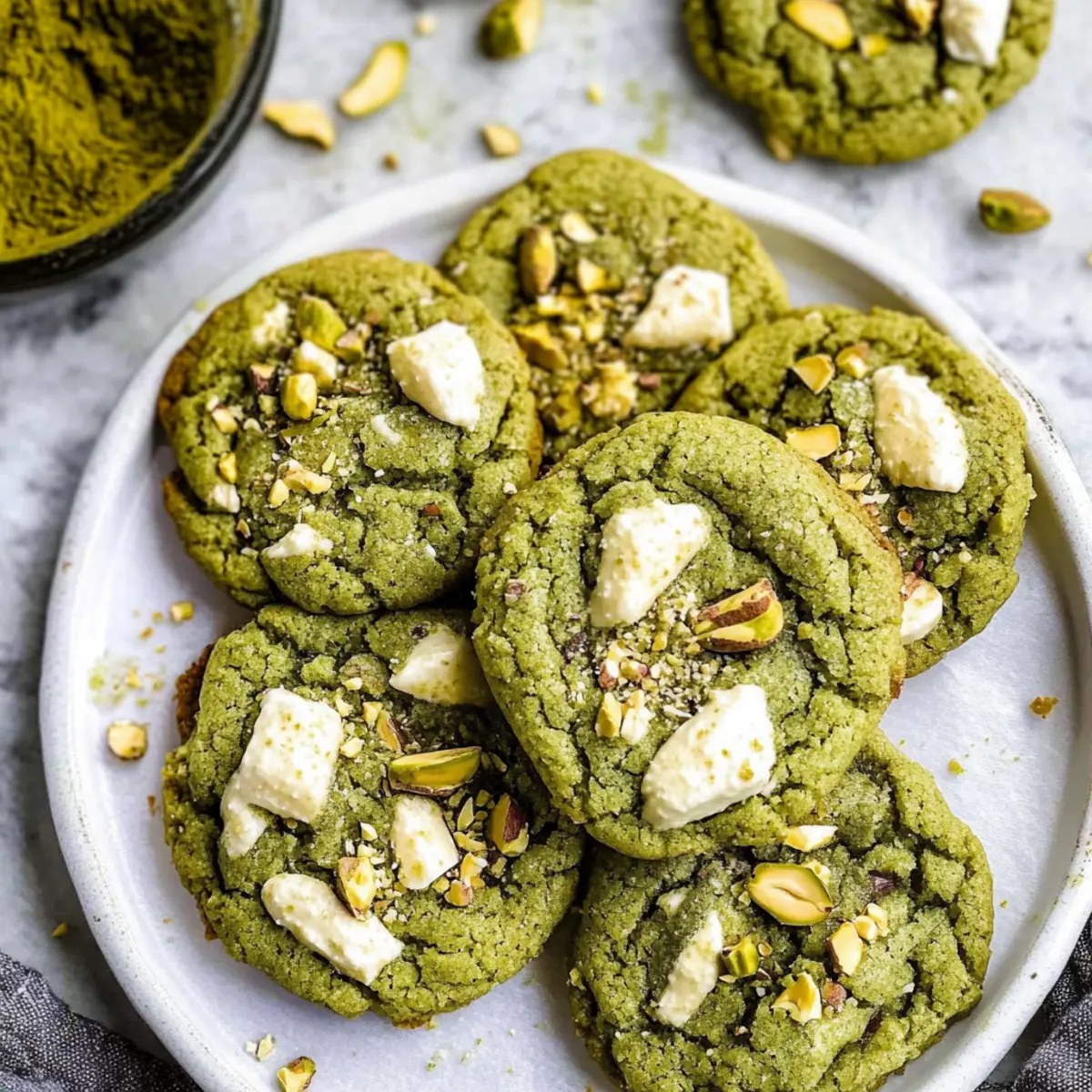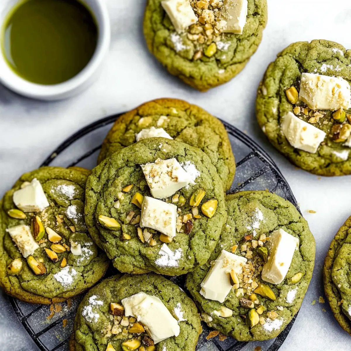 Jump to Recipe Print RecipeCan you hear that? It’s the sound of an oven timer gently ticking down as the aroma of freshly baked cookies fills the air, urging you to take that first bite. Today, I’m thrilled to share my recipe for Soft and Chewy White Chocolate Pistachio Matcha Cookies. These delightful cookies marry the vibrant earthy notes of matcha with the creamy sweetness of white chocolate and a satisfying crunch from roasted pistachios. Not only do they come together in just 30 minutes, but they also make for the perfect sweet treat to impress friends or enjoy during a cozy evening at home. Trust me; you won’t want to miss out on this easy, delicious recipe that pairs beautifully with your favorite cup of tea. Curious about how to whip these up and fill your kitchen with bliss? Let’s dive in! Why Are These Cookies a Must-Try? Deliciously Unique: The earthy undertones of matcha paired with sweet white chocolate create a flavor explosion unlike any other. Quick and Easy: You’ll have the dough ready in just 30 minutes—perfect for spontaneous cravings! Textural Harmony: Each bite offers a chewy center with crispy edges and a delightful crunch from roasted pistachios. Adaptable Options: Feel free to swap white chocolate for semi-sweet chocolate or go nut-free! If you’re looking for more sweet temptations, check out these irresistible Gingerbread Oatmeal Cookies or Fudgy Chocolate Brownies. Crowd-Pleasing Delight: Whether for a gathering or a cozy night in, these cookies are sure to impress! White Chocolate Pistachio Matcha Cookies • Ready to bake your own batch of delicious cookies? Here’s what you’ll need! For the Cookie Dough Salted Butter – This will provide richness and moisture; unsalted works too if you prefer to control salt levels. Granulated Sugar – Adds sweetness and contributes to that chewy texture we all love. Egg – Acts as a binder, ensuring your cookies stay fluffy and delightful. Vanilla Extract – Enhances the overall flavor, making your cookies taste just perfect. All-Purpose Flour – The essential base for structure, holding your cookies together beautifully. Baking Soda – Helps cookies rise and spread for the ideal texture. Baking Powder – Works alongside baking soda to keep your cookies light and fluffy. Salt – Just a pinch to balance the sweetness! Matcha Powder – Gives those signature earthy flavors; culinary grade is best for baking. White Chocolate – Adds creamy sweetness; substitute with semi-sweet chocolate for a fun twist. Roasted & Salted Pistachios – Provide a desirable crunch; easy to omit if you prefer nut-free cookies! Happy baking, and don’t forget to savor the moment while whipping up these delightful White Chocolate Pistachio Matcha Cookies! Step‑by‑Step Instructions for White Chocolate Pistachio Matcha Cookies Step 1: Preheat and Prepare Preheat your oven to 350°F (180°C) and set the stage for baking by lining your baking sheets with parchment paper. This will prevent sticking and help your cookies bake evenly. Keep everything within arm’s reach since you’ll be mixing the cookie dough soon—a cozy setup makes for a delightful baking experience! Step 2: Cream the Butter and Sugar In a stand mixer fitted with a paddle attachment, combine room temperature salted butter and granulated sugar. Beat on medium speed for about 2 minutes, or until the mixture becomes fluffy and light in color. This step is crucial as it adds air into the dough, ensuring your White Chocolate Pistachio Matcha Cookies have that perfect chewy texture. Step 3: Add the Wet Ingredients Next, introduce the egg and vanilla extract to your creamy butter-sugar mix. Beat the mixture until just combined, which should take about 30 seconds. It’s important not to overmix; the goal is to blend these ingredients seamlessly into the dough. You’re now building a flavor foundation for these delightful cookies! Step 4: Mix Dry Ingredients Gradually add the all-purpose flour, baking soda, baking powder, salt, and matcha powder into the wet mixture. Use the mixer on low speed until everything is well incorporated—your dough may look a bit crumbly, but that’s perfectly fine. This step brings together all the dry ingredients and infuses that lovely matcha flavor throughout your cookie dough. Step 5: Fold in the Add-Ins Now it’s time to make your cookie dough truly special! Gently fold in the white chocolate and chopped pistachios using a rubber spatula. Ensure they are evenly distributed throughout the dough, creating delightful bursts of sweetness and crunch in each bite. This is one of the best parts of the process, so savor the moment! Step 6: Shape the Cookies Using a cookie scoop, scoop out approximately 2-tablespoon-sized portions of dough onto the prepared baking sheets. Space them about 2 inches apart to allow for spreading during baking. The sight of the freshly portioned dough will surely get you excited for your upcoming batch of White Chocolate Pistachio Matcha Cookies! Step 7: Bake the Cookies Place the baking sheets in your preheated oven and bake for 9-10 minutes. Watch closely—the edges should be set but the centers must remain soft and puffy. That contrast between crispy edges and a gooey center is what makes these cookies irresistible. The delightful aroma will fill your kitchen as they bake! Step 8: Cool and Enjoy Once baked, allow your cookies to rest on the baking sheet for 2 minutes. This crucial step lets them firm up slightly before transferring to a cooling rack. For an extra touch, feel free to sprinkle more white chocolate or pistachios on top immediately after baking for a decorative finish. Now they’re ready to be enjoyed! Expert Tips for White Chocolate Pistachio Matcha Cookies Baking Time: Keep an eye on your cookies as they bake! Remove them once the edges are set but the centers are still soft for the best texture. Butter Temperature: Make sure your butter is at room temperature to ensure proper creamin