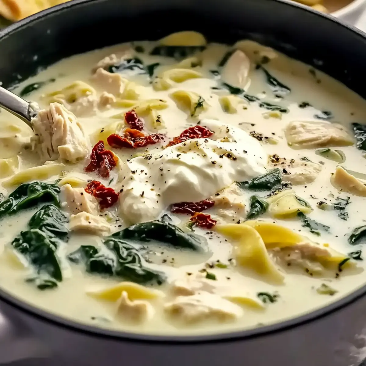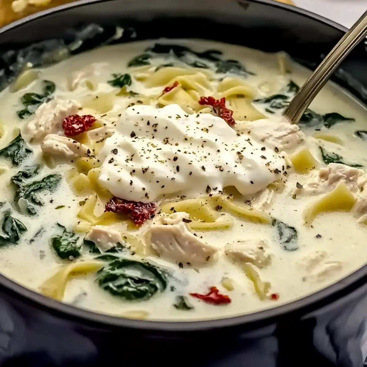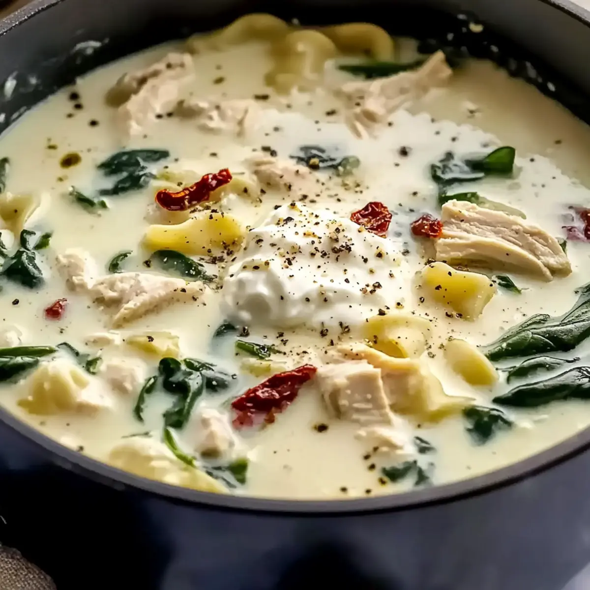 Jump to Recipe Print RecipeAs I was stirring a simmering pot of comfort on a chilly evening, a delightful aroma wafted through my kitchen, wrapping me in warmth. That’s the magic of Quick White Lasagna Soup. This dish beautifully captures the essence of traditional lasagna but in a cozy, creamy soup form that’s sure to become a new family favorite. With tender chicken and wholesome pasta mingling in a rich, velvety broth, this recipe brings comfort food to the forefront of your weeknight meals. The best part? It comes together in just 35 minutes, offering a stress-free cooking experience for anyone tired of fast food. Ready to indulge in a spoonful of nostalgia? Let’s dive into this heartwarming bowl of White Lasagna Soup! Why is White Lasagna Soup a Must-Try? Quick Preparation: Whip up this comforting soup in just 35 minutes, perfect for busy weeknights when you crave something hearty without hours in the kitchen. Rich, Creamy Flavor: The luscious broth infused with garlic, Italian herbs, and cheesy goodness will transport you to Italian bistros with every delightful spoonful. Crowd-Pleasing Comfort: Kids and adults alike will fall in love with this flavorful dish, making it an ideal choice for family dinners or gatherings. Versatile Options: Customize with seasonal veggies or gluten-free pasta to suit your dietary needs, ensuring everyone around the table feels included. Serve with Ease: Pair it seamlessly with crusty garlic bread or a fresh arugula salad, elevating your meal experience effortlessly! Feeling like something else? Try this comforting Miso Soup or our delightful Pot Pie Soup for more cozy options! White Lasagna Soup Ingredients For the Soup Base • Butter – Adds richness and flavor; use unsalted for better control over saltiness. • Onion – Provides sweetness and depth; diced finely for even cooking. • Garlic – Enhances aroma and flavor; fresh garlic is preferred for the best results. • Italian Seasoning – Gives the soup its Italian flair; can substitute with dried basil, oregano, or thyme. • Salt – Enhances overall flavor; adjust as needed based on broth saltiness. • Black Pepper – Adds mild heat; freshly cracked is best for better flavor. • Chili Flakes – Provides a hint of spice; omit if a milder soup is preferred. • Chicken Broth – The base of the soup, providing moisture and flavor; low-sodium recommended. For the Main Ingredients • Chicken Breast – Main protein; substitutes with thighs for flavor and tenderness. • Sun-Dried Tomatoes – Offers tanginess and color; can use fresh tomatoes if necessary. • Spinach – Adds freshness and color; wilt just before serving. • Pasta (Campanelle or Fusilli) – Adds heartiness; cook separately to maintain texture. For Creaminess and Toppings • Half-and-Half – Adds creaminess; can substitute with heavy cream or whole milk. • Cornstarch – Thickens the broth; whisk well with half-and-half to prevent lumps. • Ricotta – Provides creaminess; dollop on top when serving. • Parmesan Cheese – Adds depth of flavor; grate fresh for best consistency. • Mozzarella Cheese – Melts beautifully; use shredded for easy serving. • Nutritional Yeast – Optional flavor enhancer; omit if not available. Dive into this delightful bowl of White Lasagna Soup and discover just how effortless comfort food can be! Step‑by‑Step Instructions for White Lasagna Soup Step 1: Prepare Ingredients Begin by dicing one onion and mincing three cloves of garlic. Chop about half a cup of sun-dried tomatoes and cut two chicken breasts into bite-sized pieces. Gather all your ingredients and have them ready, as this will make cooking your White Lasagna Soup smooth and enjoyable. Step 2: Sauté Aromatics In a large pot, melt 2 tablespoons of unsalted butter over medium heat. Once bubbly, add the diced onion and cook for 3-4 minutes until translucent. Stir in the minced garlic, Italian seasoning, salt, black pepper, and chili flakes, cooking for an additional minute until fragrant, filling your kitchen with delightful aromas. Step 3: Simmer Chicken Pour in 6 cups of low-sodium chicken broth, then add the chicken pieces and chopped sun-dried tomatoes. Bring the mixture to a gentle simmer and cook for 12-15 minutes. Ensure the chicken reaches an internal temperature of 165°F, which will keep your soup hearty and safe to enjoy. Step 4: Cook Pasta In a separate pot, boil water and cook your preferred pasta, like campanelle or fusilli, according to package instructions, usually around 8-10 minutes. Drain the pasta once al dente and set it aside, ensuring it maintains its structure when added to the comforting White Lasagna Soup later. Step 5: Thicken Soup In a small bowl, whisk together ½ cup of cornstarch and 1 cup of half-and-half to create a smooth mixture. Gradually add this mixture to the soup while stirring, allowing it to thicken over a duration of 1-2 minutes. You’ll notice the broth becoming luxuriously creamy, perfect for this comforting dish. Step 6: Combine Ingredients Shred the cooked chicken into bite-sized pieces and return it to the pot. Add the drained pasta and a handful of fresh spinach, stirring gently until the spinach wilts, about 1-2 minutes. This final step brings everything together, creating a beautiful medley in your White Lasagna Soup. Step 7: Serve Ladle the hot White Lasagna Soup into bowls, then top each serving with a dollop of ricotta, a sprinkle of grated Parmesan, and a handful of shredded mozzarella. The melting cheese will add to the comforting texture, making each bowl a delightful experience for you and your loved ones. What to Serve with Quick White Lasagna Soup As you savor each bowl of this comforting soup, consider these delightful accompaniments that will elevate your meal experience. Crusty Garlic Bread: The perfect vehicle for soaking up the rich, cheesy broth; its crunchy texture contrasts beautifully with the creamy soup. Simple Arugula Salad: A fresh mix d
