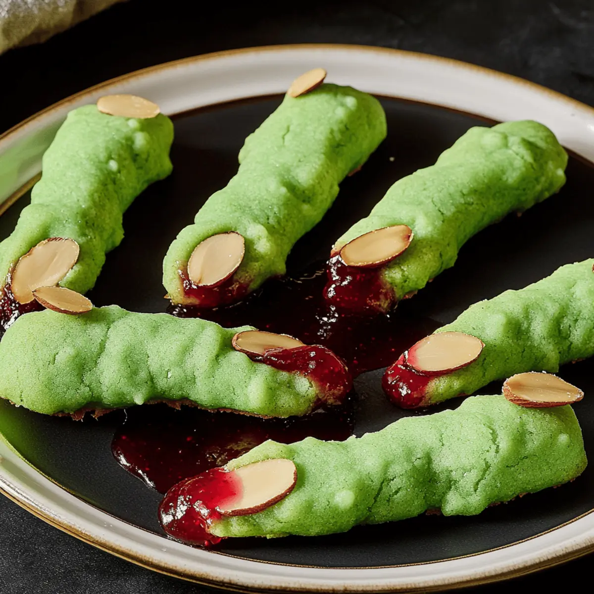 Jump to Recipe Print RecipeAs the leaves take on their autumn hues and the air fills with a crisp chill, I can’t help but crave a festive touch in my baking. Enter the Witch Finger Cookies, the perfect Halloween-themed treat that combines delightful flavors with a visually striking appearance. These cookies boast a nutty, tender texture that’s both fun to make and even more enjoyable to eat. Whether you’re hosting a Halloween party or simply want to surprise your loved ones with something unique, this recipe promises to be a crowd-pleaser. Plus, they’re surprisingly quick to whip up, so you can spend less time in the kitchen and more time enjoying the spooky festivities. So, are you ready to conjure up some deliciously eerie cookies? Let’s dive into the recipe! Why Are Witch Finger Cookies So Fun? Eerie Appearance: These cookies are not only delicious but also eerily lifelike, making them a fantastic centerpiece for your Halloween festivities. Easy to Make: With minimal ingredients and simple steps, you’ll be amazed at how quickly you can conjure up these festive treats. Kid-Friendly Fun: Involve the little ones in shaping and decorating, creating memorable moments while fostering their creativity. Versatile Decoration: Customize the “blood” with your choice of jam and experiment with different nuts for unique looks – just like in my Mango Cookies Delightful recipe! Perfectly Crunchy: Experience the satisfying crunch from the almond “nails” combined with the tender, nutty cookie base that keeps everyone coming back for more! This Halloween, treat your friends and family with these chillingly delightful Witch Finger Cookies! Witch Finger Cookies Ingredients Get ready to create spook-tacular treats! For the Dough Confectioners’ Sugar – Adds sweetness and structure; essential for the texture of your Witch Finger Cookies. Unsalted Butter – Provides richness and a tender crumb; always use softened for easier mixing. Large Egg – Binds the ingredients together; substitute with a flax egg for a vegan option. Almond Extract – Contributes a distinctive sweet nuttiness; vanilla extract can be used if you prefer. Green Food Coloring – Gives your cookies a spooky hue; adjust the quantity to get your desired shade. All-Purpose Flour – Forms the cookie structure; avoid whole wheat for the best texture. Kosher Salt – Enhances flavor; you can use regular salt but adjust the quantity to taste. For the Decorations Finely Chopped Pistachios – Adds crunch and spooky “warts” to each cookie; feel free to substitute with chopped nuts of your choice. Sliced Almonds – Creates realistic fingernails; slivered almonds work well if sliced are unavailable. Cherry, Strawberry, or Raspberry Jam – Mimics blood for a gory decoration; pick your favorite flavor for a unique touch. Prepare to amaze your guests with these frighteningly delicious Witch Finger Cookies! Step‑by‑Step Instructions for Witch Finger Cookies Step 1: Prep Dough Begin by creaming together 1 cup of confectioners’ sugar and 1 cup of softened unsalted butter in a large mixing bowl until the mixture is pale and fluffy. Next, add in 1 large egg, 1 teaspoon of almond extract, a few drops of green food coloring, and blend everything until smooth and well combined. Step 2: Mix Dry Ingredients In a separate bowl, whisk together 2 ½ cups of all-purpose flour and ½ teaspoon of kosher salt, ensuring there are no lumps. Gradually add the flour mixture to the butter blend, mixing until just combined and a soft dough forms, which will be the base for your Witch Finger Cookies. Step 3: Add Texture Gently fold in ½ cup of finely chopped pistachios into the dough for added crunch and those spooky “warts.” Once integrated, cover the dough tightly with plastic wrap and refrigerate for at least 30 minutes, which helps the cookies maintain their shape while baking. Step 4: Shape Cookies Once chilled, scoop out portions of the dough and roll them into finger shapes, each about 3 inches long. Press a sliced almond onto one end of each cookie to create a fingernail, pinch the dough to form knuckles, and use a sharp knife to carve shallow grooves along the fingers for a realistic touch. Step 5: Freeze and Bake Before baking, place the shaped cookies on a baking sheet lined with parchment paper and freeze them for 30 minutes. Preheat your oven to 375°F. Bake the Witch Finger Cookies for about 7-9 minutes or until the edges feel firm and the tops appear dry, ensuring they remain tender inside. Step 6: Decorate After cooling on the baking sheet for a few minutes, transfer the cookies to a wire rack to cool completely. Once cooled, carefully replace the almond “fingernail” with a dab of cherry, strawberry, or raspberry jam to mimic “blood.” Let your witchy creations rest before serving at your Halloween gathering! Expert Tips for Witch Finger Cookies Chill the Dough: Always refrigerate the dough for at least 30 minutes. This keeps the shapes defined during baking, preventing any spreading. Knife Precision: Use a sharp knife to carve details for realistic knuckles and warts. A firm hand will lead to more impressive Witch Finger Cookies! Ring Finger Shapes: When rolling out the dough, make sure each “finger” is uniform in thickness. Thicker fingers may bake unevenly, so aim for roughly ½ inch thick. Customize Jam: Choose your favorite jam flavor for a personal touch. Experiment with raspberry for a tart zing or cherry for a classic taste! Serve with Flair: Display your cookies on a fun Halloween-themed platter. A spooky presentation adds the final touch that invites everyone to taste these eerie delights! What to Serve with Witch Finger Cookies Embrace the Halloween spirit and create a spook-tacular spread that complements your eerie treats perfectly! Creepy Crawly Cupcakes: These fun, decorated cupcakes add a sweet contrast with colorful icing and gummy worms, drawing everyone’s attention. Pumpkin Spice Hot