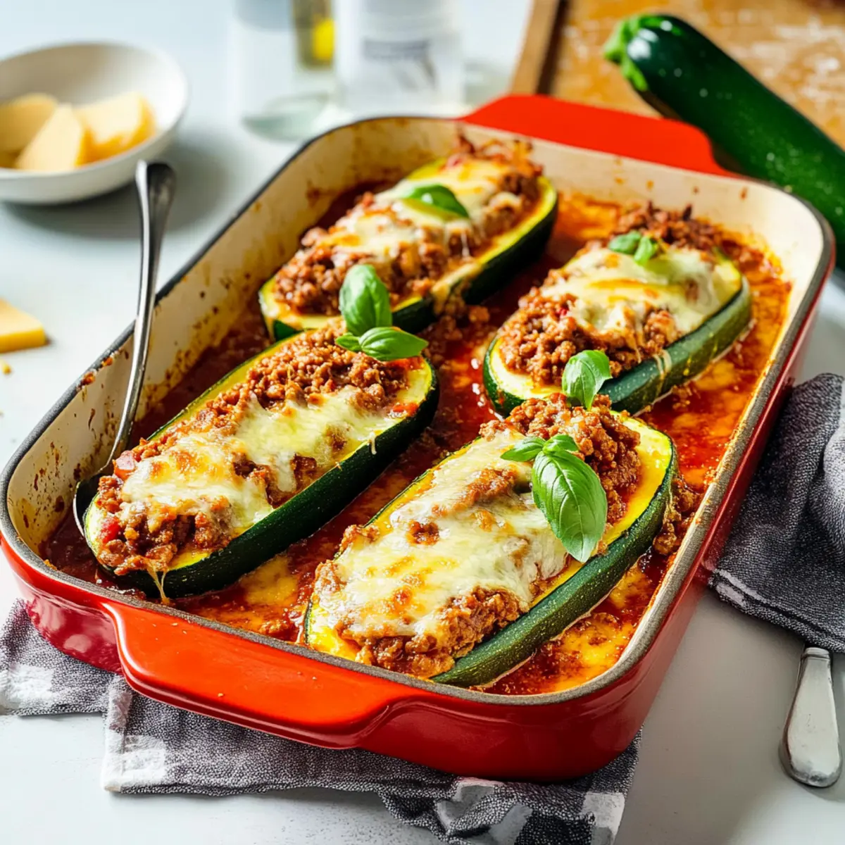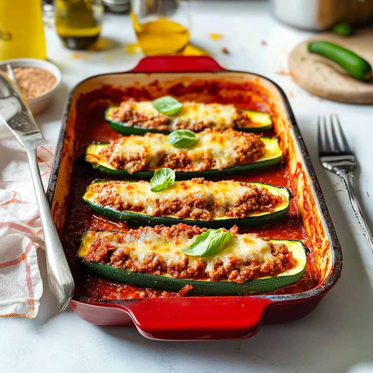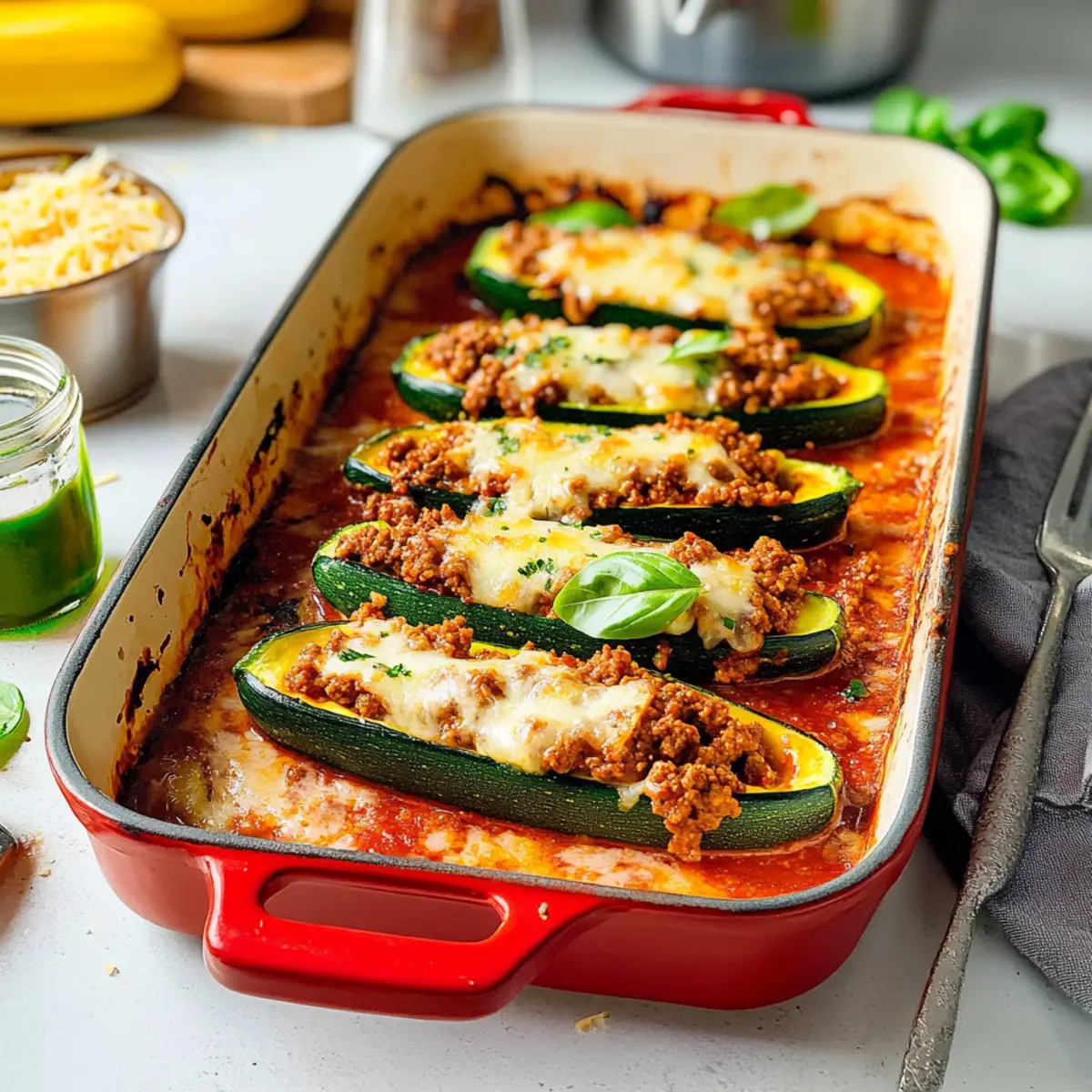 Jump to Recipe Print RecipeAs a busy weeknight approaches, I often find myself in a mini cooking crisis, trying to whip up something that the whole family will love without losing my sanity in the process. That’s where my Zucchini Boats with Ground Beef come to the rescue! These delightful little vessels are filled to the brim with a savory ground beef sauce and topped with gooey melted cheese, making them not only a crowd-pleaser but also an easy, gluten-free dinner option. Plus, they’re incredibly versatile—feel free to swap in your favorite cheese or add extra veggies for a nutritious twist. Ready to elevate your dinner game with this simple yet satisfying recipe? Let’s dive in and bring some joy back to your kitchen! Why Are Zucchini Boats a Must-Try? Deliciously Unique: These Zucchini Boats bring a fun twist to your dinner table, offering a delightful blend of taste and nutrition. Quick and Easy: Whip them up in no time, making weeknight meals a breeze! Customizable Options: Feeling adventurous? Switch up the fillings with ground turkey or even mushrooms for exciting variations. Family-Friendly: Perfectly designed for picky eaters, these boats are a hit with kids and adults alike. Pair them with a side salad or some crispy garlic bread to complete the meal, just like you would with Nachos Ground Beef or Ground Beef Lettuce. Gluten-Free Goodness: Even those on special diets can enjoy this dish without missing out on flavor! Health-Packed Filling: With fresh veggies in the mix, these boats are as wholesome as they are tasty. Zucchini Boats with Ground Beef Ingredients For the Zucchini Boats • Zucchini – Serves as the perfect vessel for the filling, pick medium-sized for even cooking. • Salt – Enhances the flavor and helps draw out moisture from the zucchini. For the Filling • Olive Oil – Adds a rich flavor; feel free to substitute it with vegetable oil if needed. • Garlic (3 cloves) – Infuses the sauce with aromatic goodness; garlic powder can be used as a quick alternative. • Onion (½) – Provides a savory base; shallots or leeks are great substitutes. • Fresh Basil (6 leaves) – Brightens the dish with freshness; if unavailable, dried basil works just as well. • Diced Tomatoes (400 g) – The foundation of your homemade sauce; choose canned or fresh based on availability. • Tomato Passata (500 g) – Adds body to the sauce; crushed tomatoes can stand in if needed. • Oregano (1 tsp) – Brings in herby flavors; Italian seasoning can be swapped in for a different taste. • Sugar (1 tsp, optional) – Balances acidity in the sauce; honey is a sweet alternative if desired. • Ground Beef (500 g) – The star protein filling; turkey or plant-based ground meat make great substitutes. For the Topping • Gouda Cheese (200 g) – Melty cheese that enhances the filling; mozzarella or Edam can be used if you prefer. • Parmesan Cheese (2 tbsp) – Adds a delightful salty kick; nutritional yeast is a great vegan substitute for the cheese lovers. With these ingredients, you’re on your way to creating a batch of Zucchini Boats with Ground Beef that will surely warm the hearts and fill the bellies of your loved ones! Step‑by‑Step Instructions for Zucchini Boats with Ground Beef Step 1: Preheat the Oven Begin by preheating your oven to 200°C (390°F). This step ensures that your Zucchini Boats with Ground Beef bake evenly and thoroughly. While the oven warms up, gather your baking dish and set it aside, ready for the delicious stuffed zucchini that will soon be prepared. Step 2: Prepare the Zucchini Slice each zucchini in half lengthwise and gently scoop out the flesh using a spoon, creating little “boats.” Be careful not to puncture the skin! Sprinkle the hollowed-out zucchini halves with salt and let them sit for about 10 minutes to draw out excess moisture. This will improve the texture once baked. Step 3: Sauté the Aromatics In a medium saucepan, heat a tablespoon of olive oil over medium heat. Once the oil is shimmering, add minced garlic and chopped onion, sautéing for about 5-7 minutes until translucent and fragrant. Next, stir in diced tomatoes and passata, seasoning with oregano, basil, and sugar. Let this simmer for 6-8 minutes until vibrant and flavorful. Step 4: Cook the Ground Beef In a skillet, heat another tablespoon of olive oil over medium heat. Add diced onion and sauté for about 5 minutes until softened. Next, incorporate the ground beef, seasoning it well with salt and pepper. Cook until the meat is thoroughly browned, approximately 10-12 minutes, then mix in half of the prepared tomato sauce. Simmer this filling for an additional 15 minutes. Step 5: Assemble the Zucchini Boats Pat the zucchini halves dry with a paper towel to remove excess moisture. Place them cut-side up in your baking dish and pour the remaining tomato sauce over the bottom. Carefully fill each zucchini boat with the savory ground beef mixture, ensuring they’re packed tightly. Top generously with Gouda and grated Parmesan cheese for that melty finish. Step 6: Bake the Zucchini Boats Cover the baking dish tightly with parchment paper and then with aluminum foil. Bake in your preheated oven for 25 minutes, allowing the zucchini to soften while the flavors meld. After this initial cooking time, remove the foil and parchment, baking for an additional 5-10 minutes or until the cheese is beautifully melted and golden. Step 7: Cool and Serve Once out of the oven, let the Zucchini Boats with Ground Beef cool for a few minutes before serving. This brief cooling time allows the delicious filling to set slightly, making them easier to enjoy. Serve warm, perhaps alongside a light salad or your favorite garlic bread for an utterly delightful meal! Expert Tips for Zucchini Boats with Ground Beef Choose Even Zucchini: Ensure all your zucchini are similar in size for consistent cooking; this prevents some boats from being overcooked while others remain crunchy. Pre-sal
