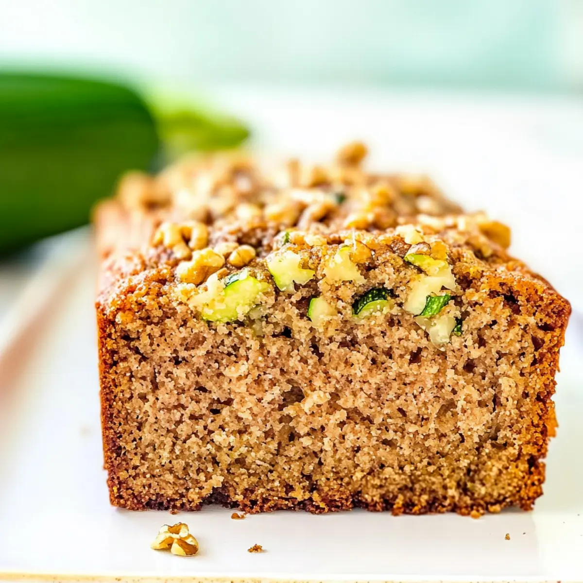 Jump to Recipe Print RecipeThe kitchen air is alive with the sweet, comforting aroma of baking bread, making me feel wrapped in a warm memory of summer afternoons. This Classic Walnut Zucchini Bread is my go-to recipe when I have an abundance of garden-fresh zucchini, perfectly combining moist tenderness with the satisfying crunch of walnuts. What I adore about this quick bread is its simplicity; it comes together in no time, making it a delightful treat for unexpected guests or a cozy weekend brunch. Plus, it’s easily adaptable with healthier substitutions or fun additions like chocolate chips or a splash of lemon zest. So, are you ready to elevate your baking game and indulge in some homemade goodness? Let’s dive in! Why is Zucchini Bread a Must-Try? Deliciously Moist: This zucchini bread is incredibly moist thanks to the fresh grated zucchini, making every slice a joy to savor. Nutty Crunch: With a generous helping of walnuts, you’ll enjoy a delightful crunch that balances the soft texture perfectly. Easy to Make: Whip it up quickly, even on busy days, as it requires no special skills or equipment. Versatile Variations: Customize by adding chocolate chips or lemon zest for a unique twist! For more fun flavors, check out my Apple Fritter Bread or consider some delightful Cornbread Muffins Moist. Seasonal Delight: Ideal for utilizing garden zucchini, it’s a wonderful way to share summer’s bounty with friends and family. Storage-Friendly: This delicious loaf keeps well, making it perfect for meal prep or snacks throughout the week! Zucchini Bread Ingredients For the Bread All-Purpose Flour – Provides structure; can substitute with whole wheat flour for a healthier option. Kosher Salt – Enhances flavor; essential for balancing the sweetness of the sugar. Baking Powder & Baking Soda – Leavening agents that help the zucchini bread rise and create a light texture. Ground Cinnamon – Adds aromatic warmth and sweetness; consider nutmeg as a substitute for a different flavor. Large Eggs – Binds ingredients and contributes moisture, ensuring a tender crumb. Vegetable Oil – Adds moisture and richness; can be replaced by applesauce for a lower fat option. Granulated Sugar – Sweetens the bread; for a healthier option, use less sugar or stevia. Vanilla Extract – Enhances sweetness and adds depth of flavor. Grated Zucchini – The star ingredient that provides moisture and texture; do not peel, both green and golden zucchini work well. Chopped Walnuts – Adds a crunchy texture; can be omitted or swapped with pecans for variation. For the Topping Light Brown Sugar – Used for sprinkling on top; adds sweetness and a slight caramel finish. Step‑by‑Step Instructions for Zucchini Bread Step 1: Preheat and Prepare Preheat your oven to 325°F (163°C) and grab two 9×5-inch or 8×4-inch bread pans. Generously grease the pans with butter or non-stick spray to prevent the zucchini bread from sticking. This step is essential for achieving a perfectly moist and tender loaf that slides out easily. Step 2: Mix Wet Ingredients In a large mixing bowl or a stand mixer, combine the large eggs, vegetable oil, granulated sugar, and vanilla extract. Beat these ingredients together until well blended, about 2-3 minutes. The mixture should be smooth and slightly frothy, setting a lovely base for the rest of your moist zucchini bread. Step 3: Whisk Dry Ingredients In a separate bowl, whisk together the all-purpose flour, kosher salt, ground cinnamon, baking powder, and baking soda. This step is crucial for evenly distributing the leavening agents that will help your zucchini bread rise and create its light texture. Ensure there are no lumps for a smooth batter. Step 4: Combine Wet and Dry Mixtures Gradually add the dry mixture to the wet ingredients, stirring gently until just combined. This batter will be thick and slightly dry — that’s perfectly fine. Be careful not to overmix as this can lead to a denser zucchini bread. Step 5: Fold in Zucchini and Walnuts Gently fold in the grated zucchini and 1 cup of chopped walnuts until evenly distributed throughout the batter. The fresh zucchini adds moisture that is key to the bread’s tender texture, while the walnuts provide delightful crunch. Do not drain any excess moisture from the zucchini for best results. Step 6: Fill the Pans Evenly pour the batter into the prepared bread pans. Use a spatula to spread it out and create an even surface. To finish, sprinkle the remaining walnuts and a light dusting of brown sugar on top, adding a sweet, caramelized finish to your classic zucchini bread. Step 7: Bake the Bread Place the filled pans in the preheated oven and bake for 50-60 minutes. Keep a close eye on them, and check for doneness by inserting a toothpick into the center; it should come out clean or with a few moist crumbs attached when ready. This golden-brown loaf is the perfect visual cue for readiness! Step 8: Cool Down After baking, allow the zucchini bread to cool in the pans for about 20 minutes. Once cooled slightly, carefully remove the loaves from the pans and transfer them to a wire rack. Let them cool completely before slicing, which helps enhance the moist texture throughout each comforting slice. How to Store and Freeze Zucchini Bread Room Temperature: Store zucchini bread in an airtight container at room temperature for up to 4 days. This keeps the bread fresh and preserves its moist texture. Freezer: For longer storage, wrap the cooled zucchini bread tightly in plastic wrap or aluminum foil, then place it in a freezer-safe bag. It can be frozen for up to 3 months. Thawing: To enjoy, simply move the frozen bread to the fridge overnight or leave it at room temperature for a few hours. You can also warm slices in the microwave for 15-20 seconds. Reheating: Slice and reheat in a toaster oven or microwave for a cozy, comforting snack. Top with butter or cream cheese for extra indulgence! Zucchini Bread Variations & Substitutions 